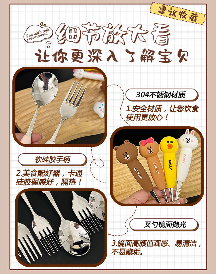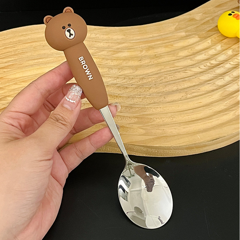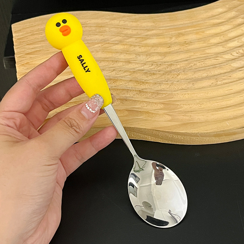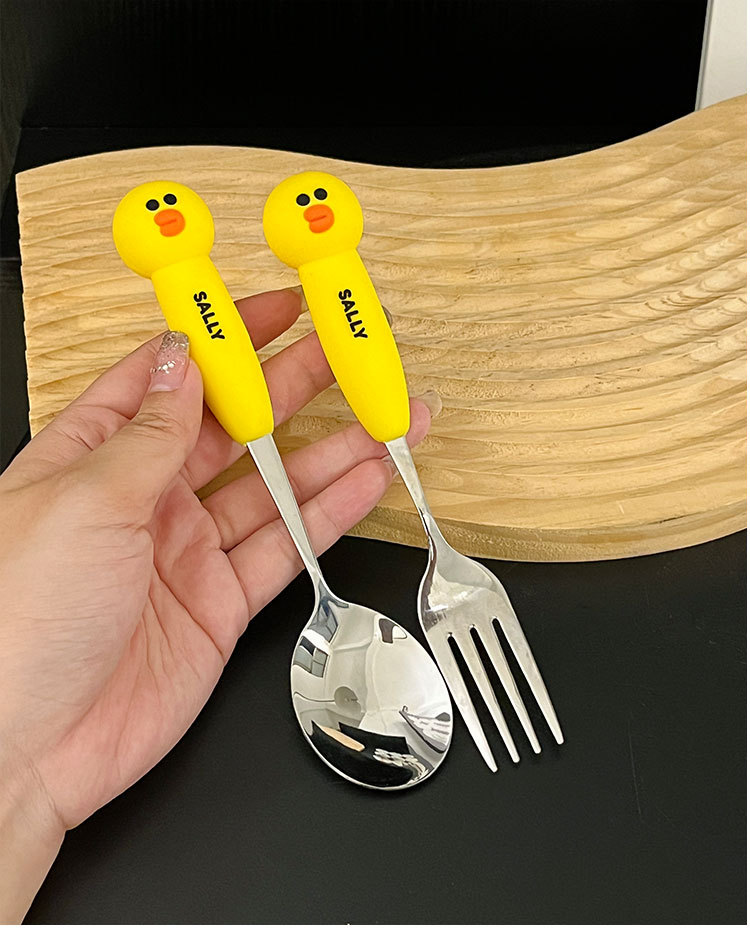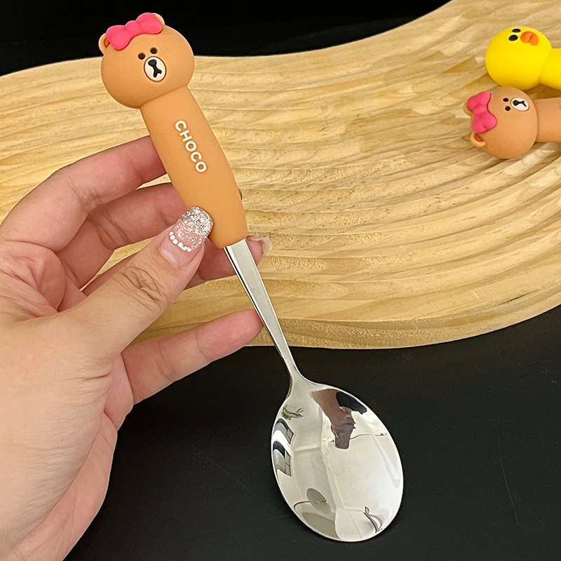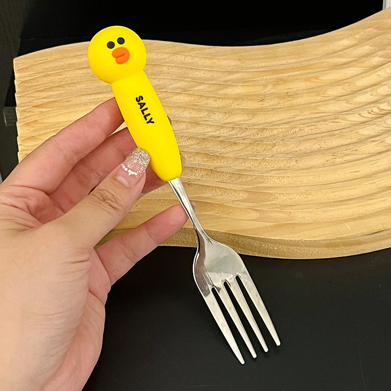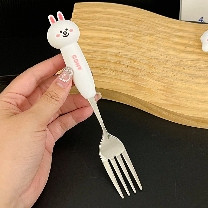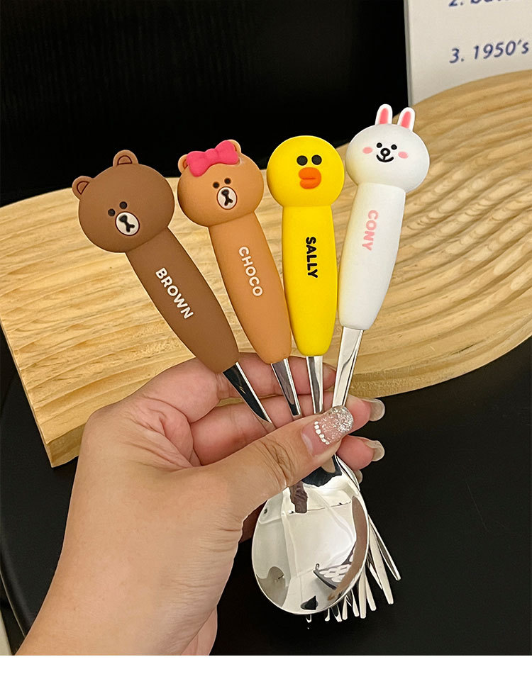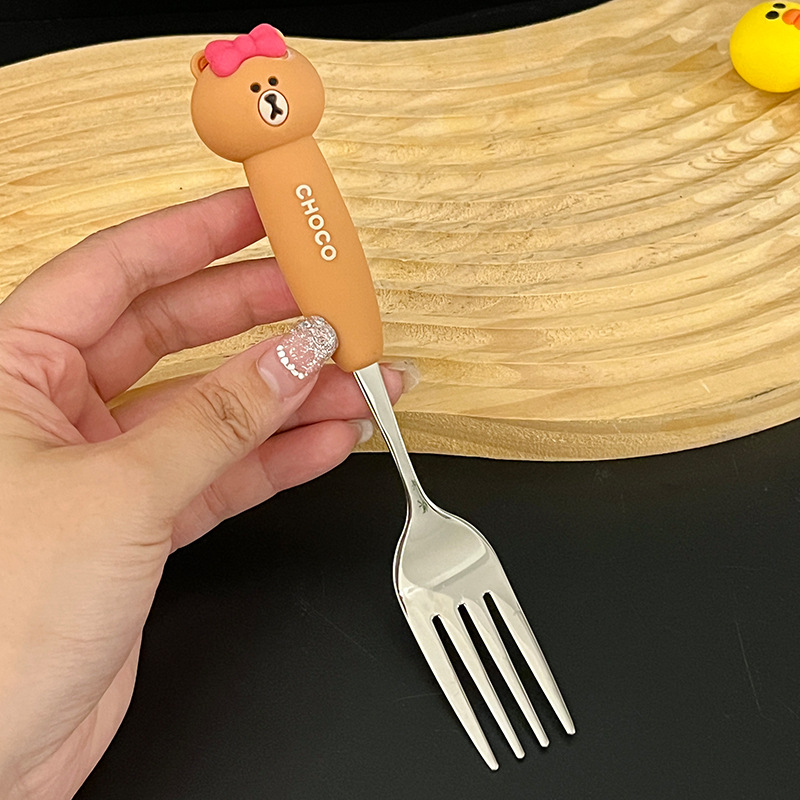 산리오 만화 실리콘 스푼 304 스테인리스 포크와 스푼 세트 귀여운 학생 기숙사 식기 수프 스푼 과일 포크스토어 가기