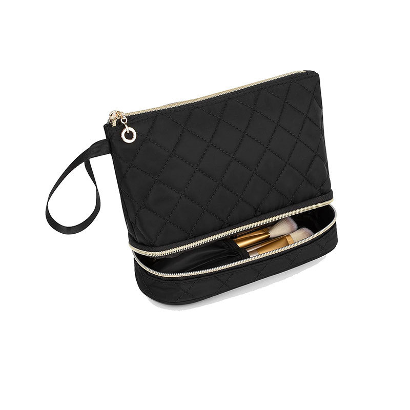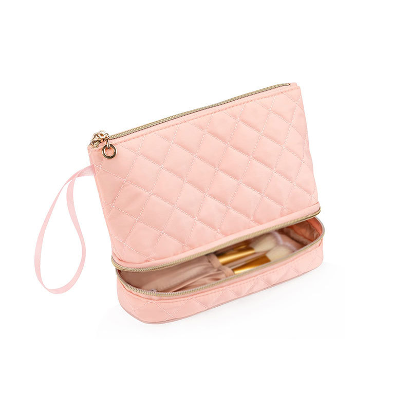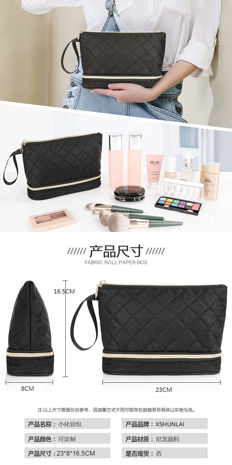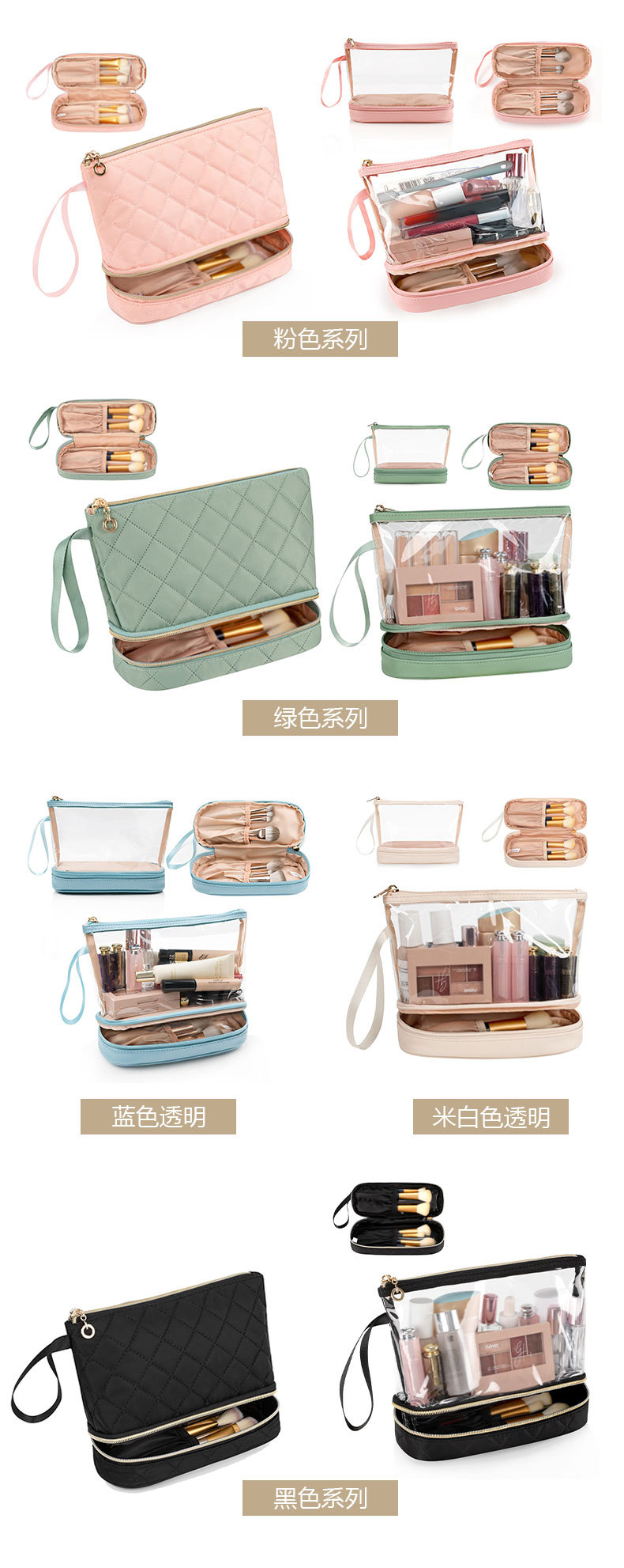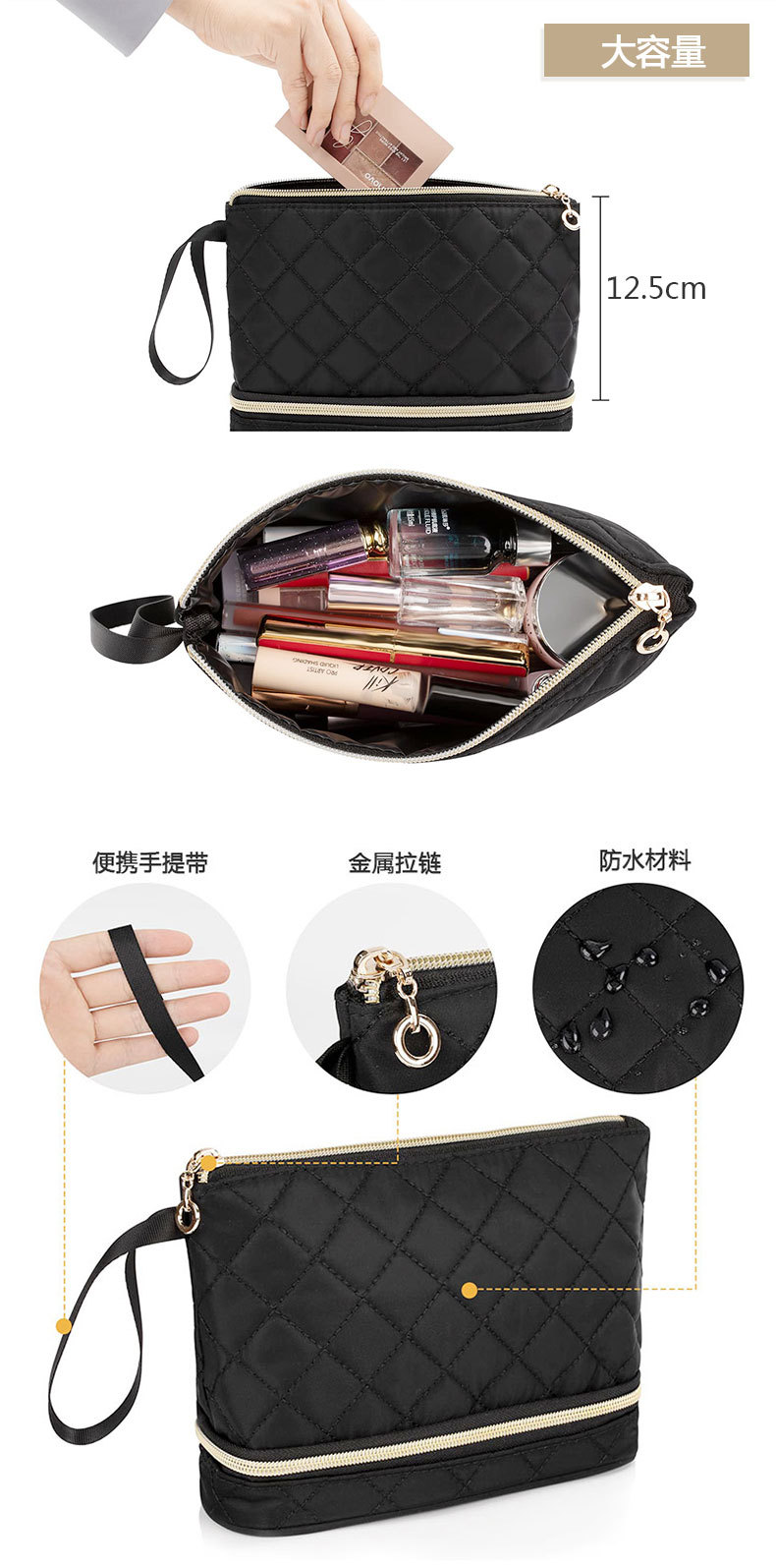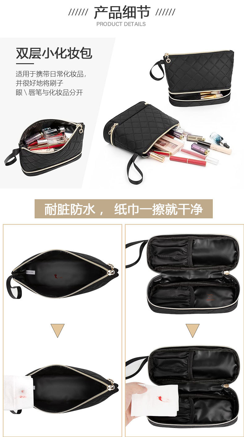 맞춤형 다이아몬드 모양의 세로형 메이크업 브러쉬 수납 가방, 휴대용 여행용 수납 가방, 이중 레이어 메이크업 가방, 대용량, 고급스러운 디자인