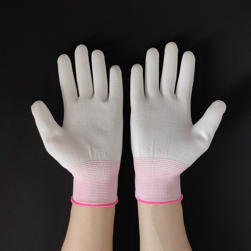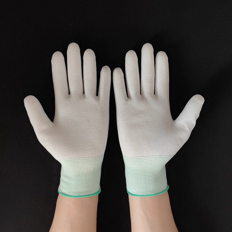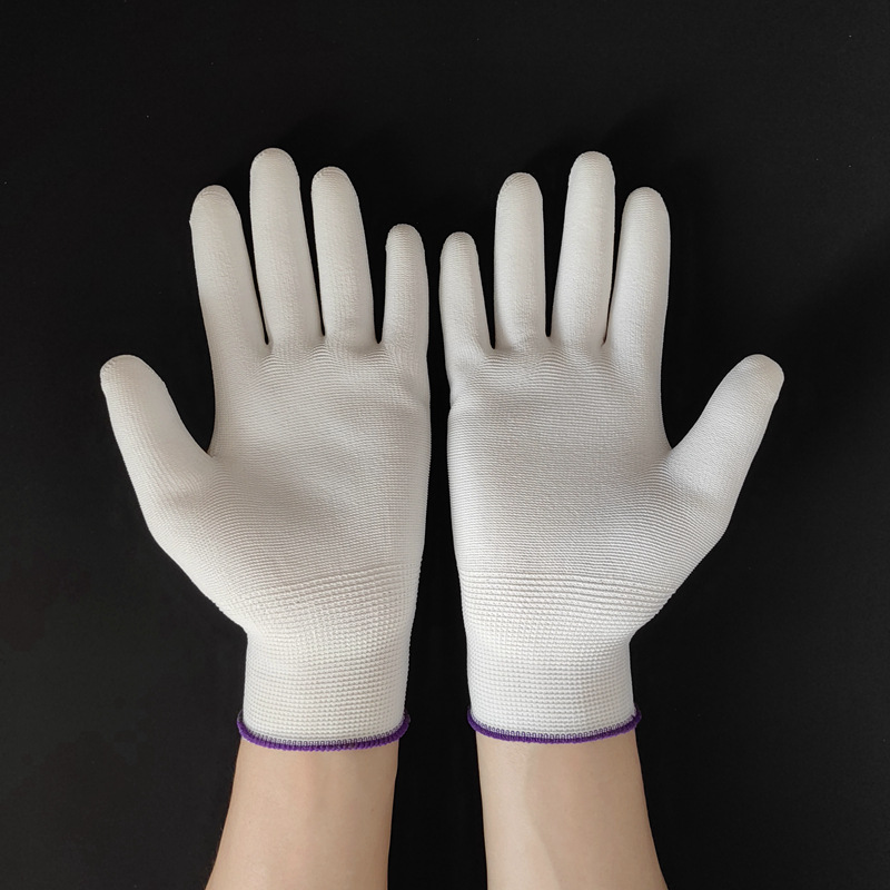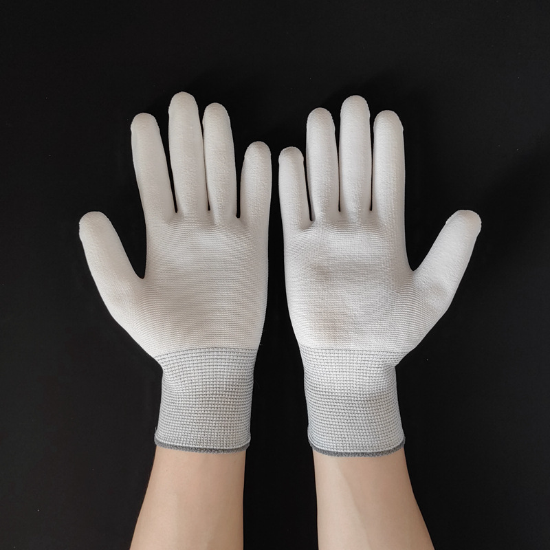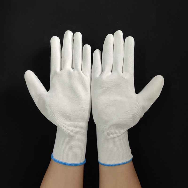 PU 코팅 손바닥 장갑 흰색 나일론 통기성 남성 및 여성 작업 따기 및 포장 미끄럼 방지 분류 얇은 전자 공장 작업