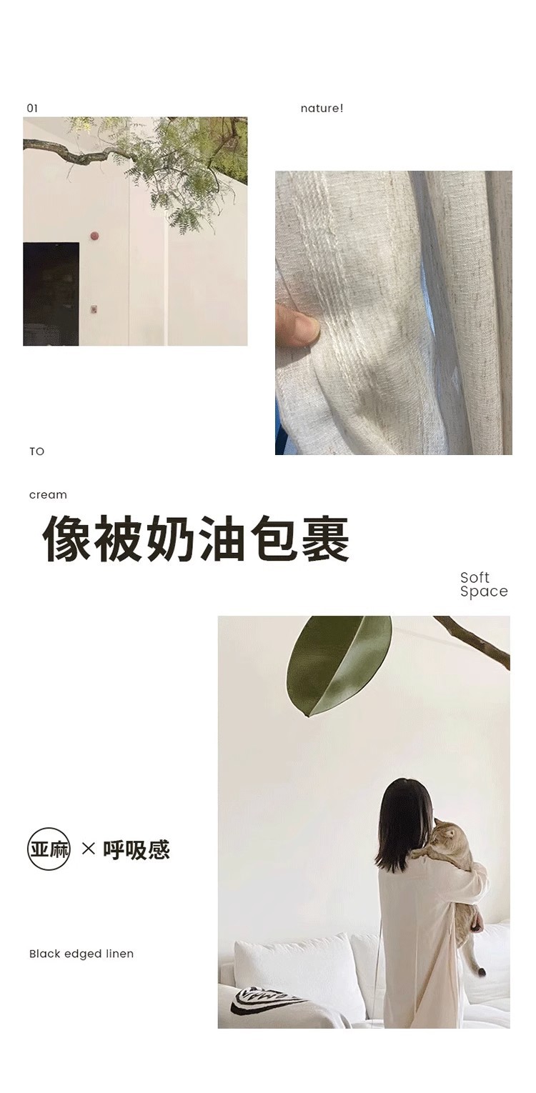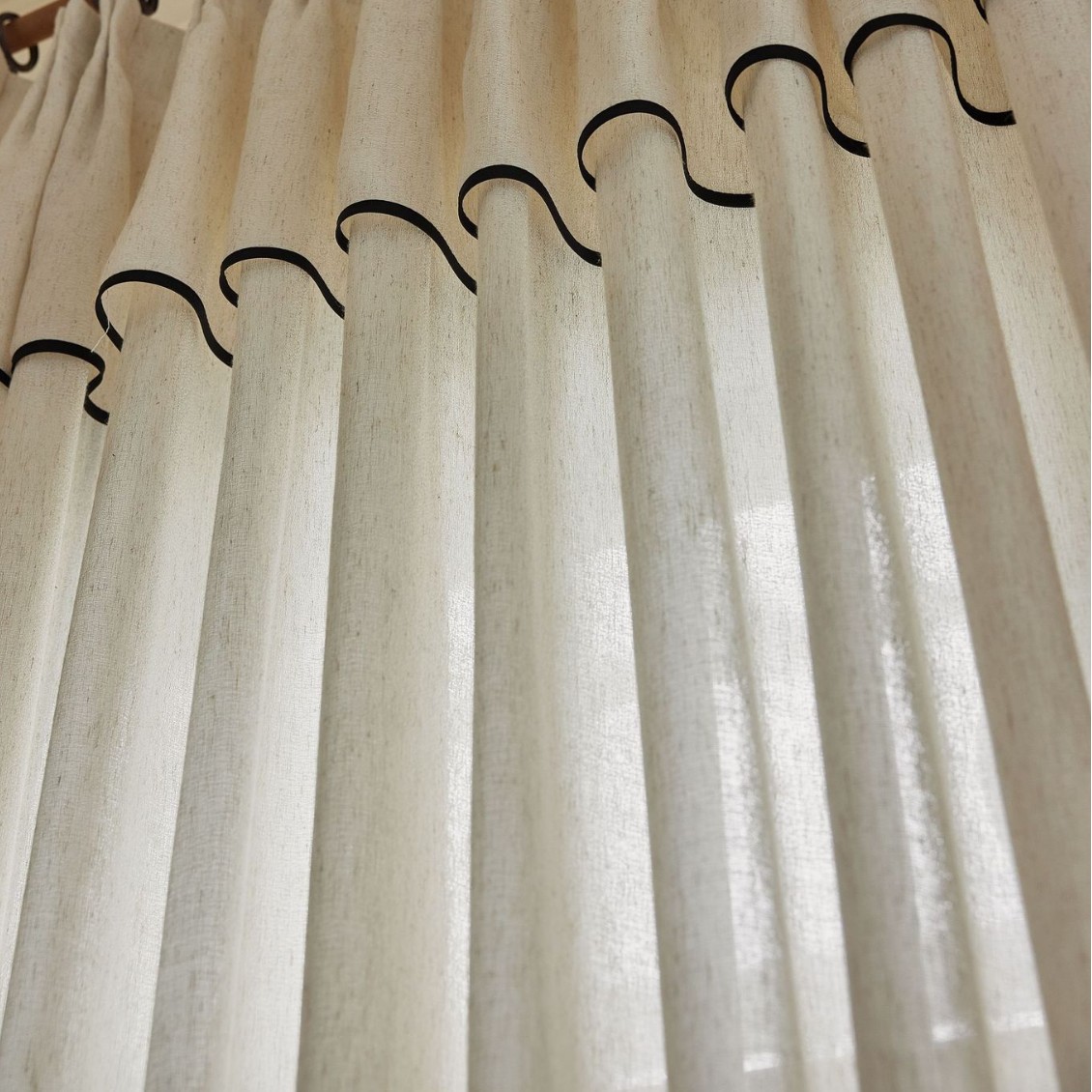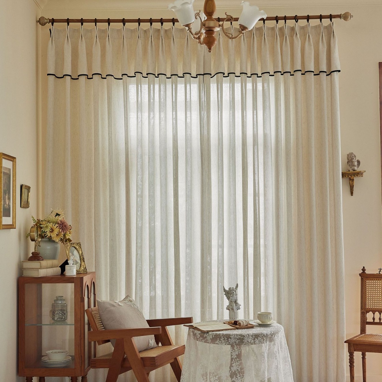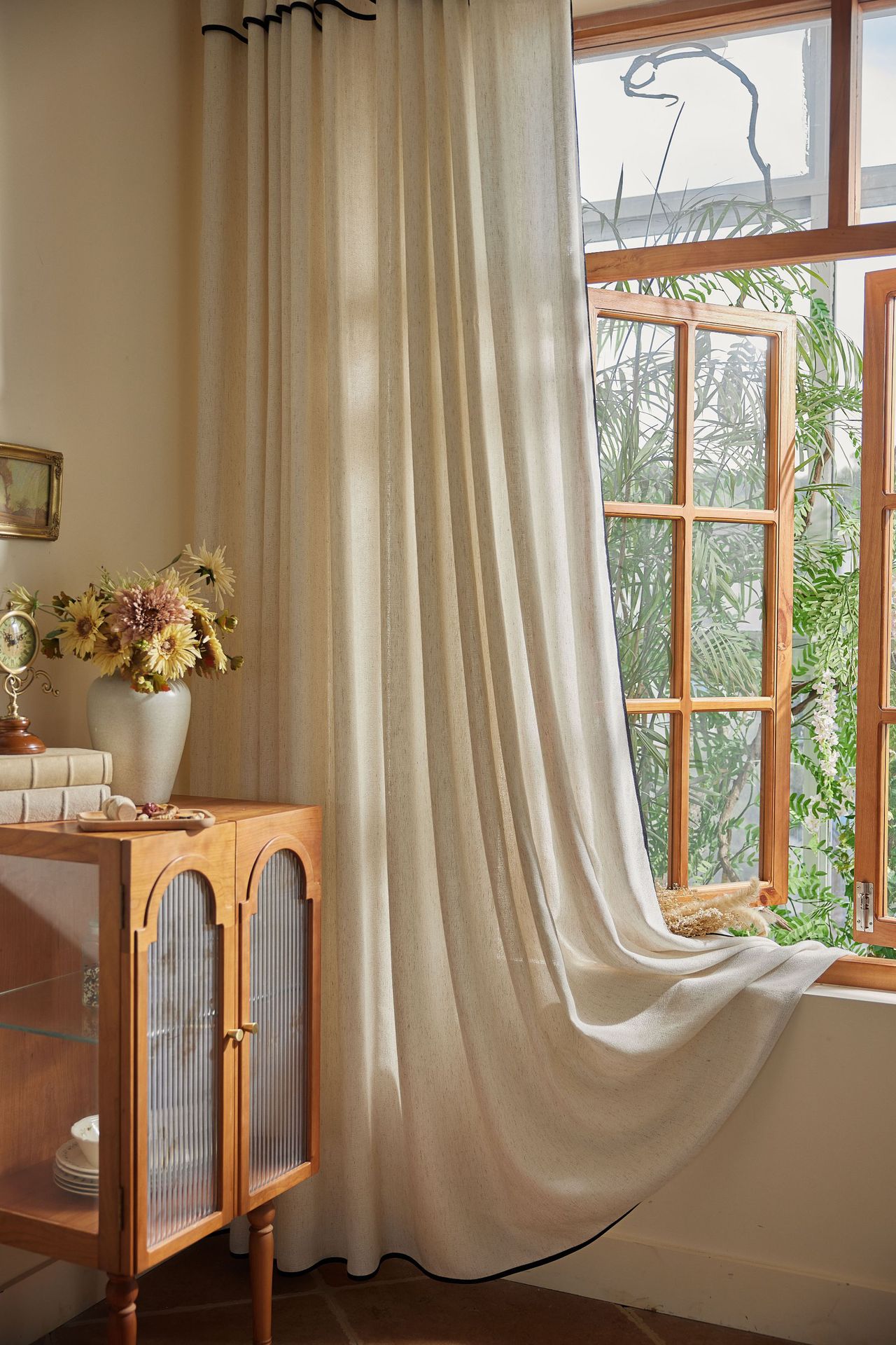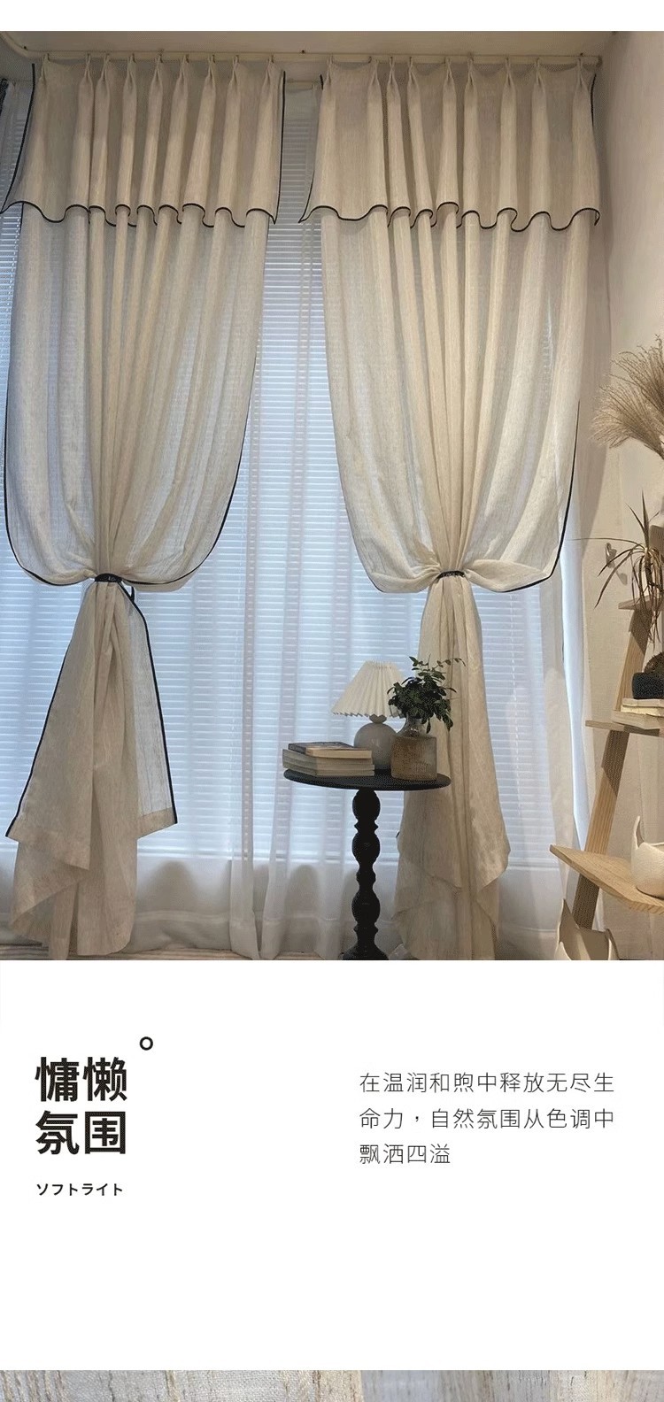 프랑스 아마 코튼 린넨 원사 크림 블랙 에지 원사 커튼 스크린 창 스크린 투명 침투성 거실 침실 베이 창