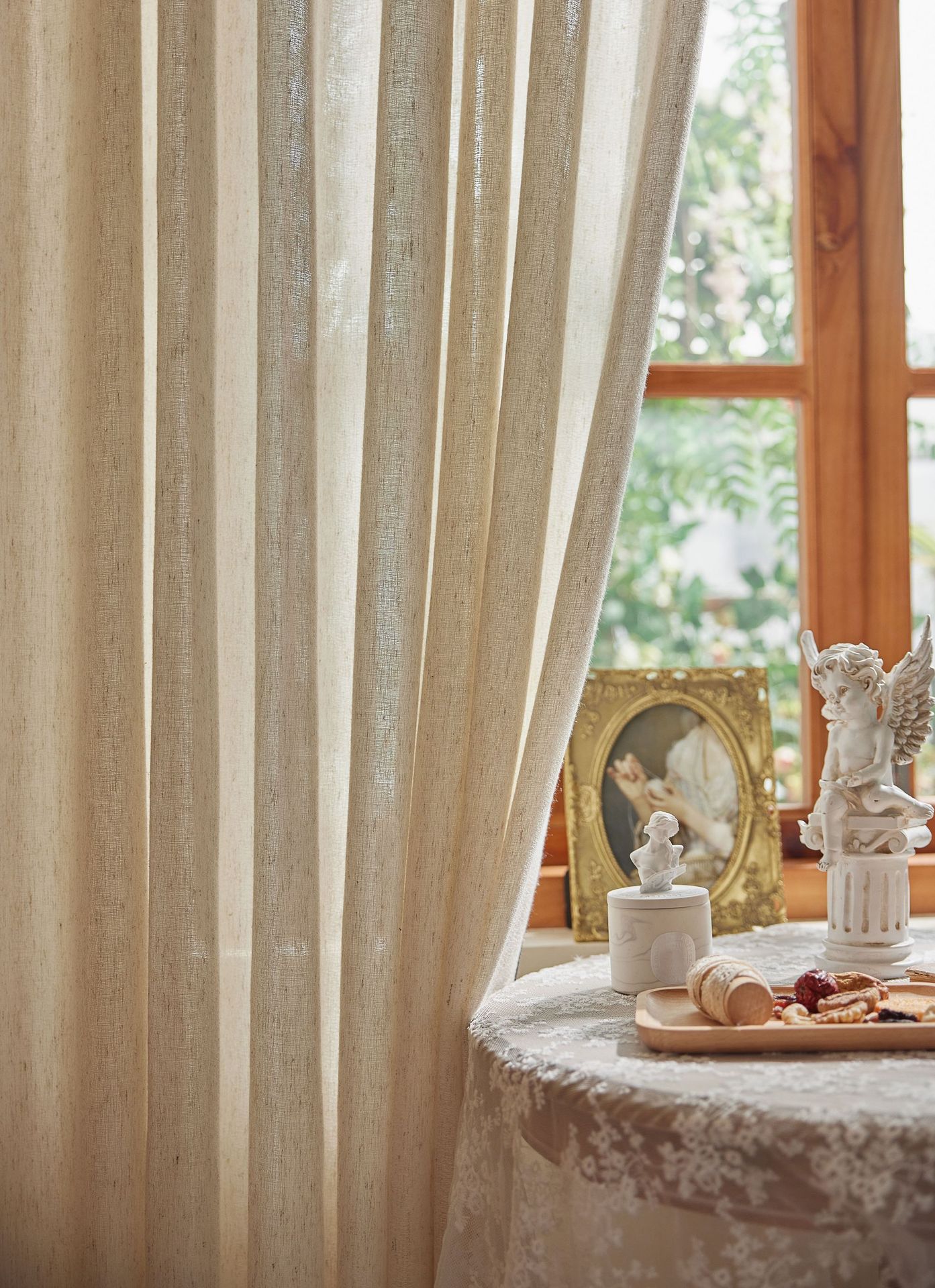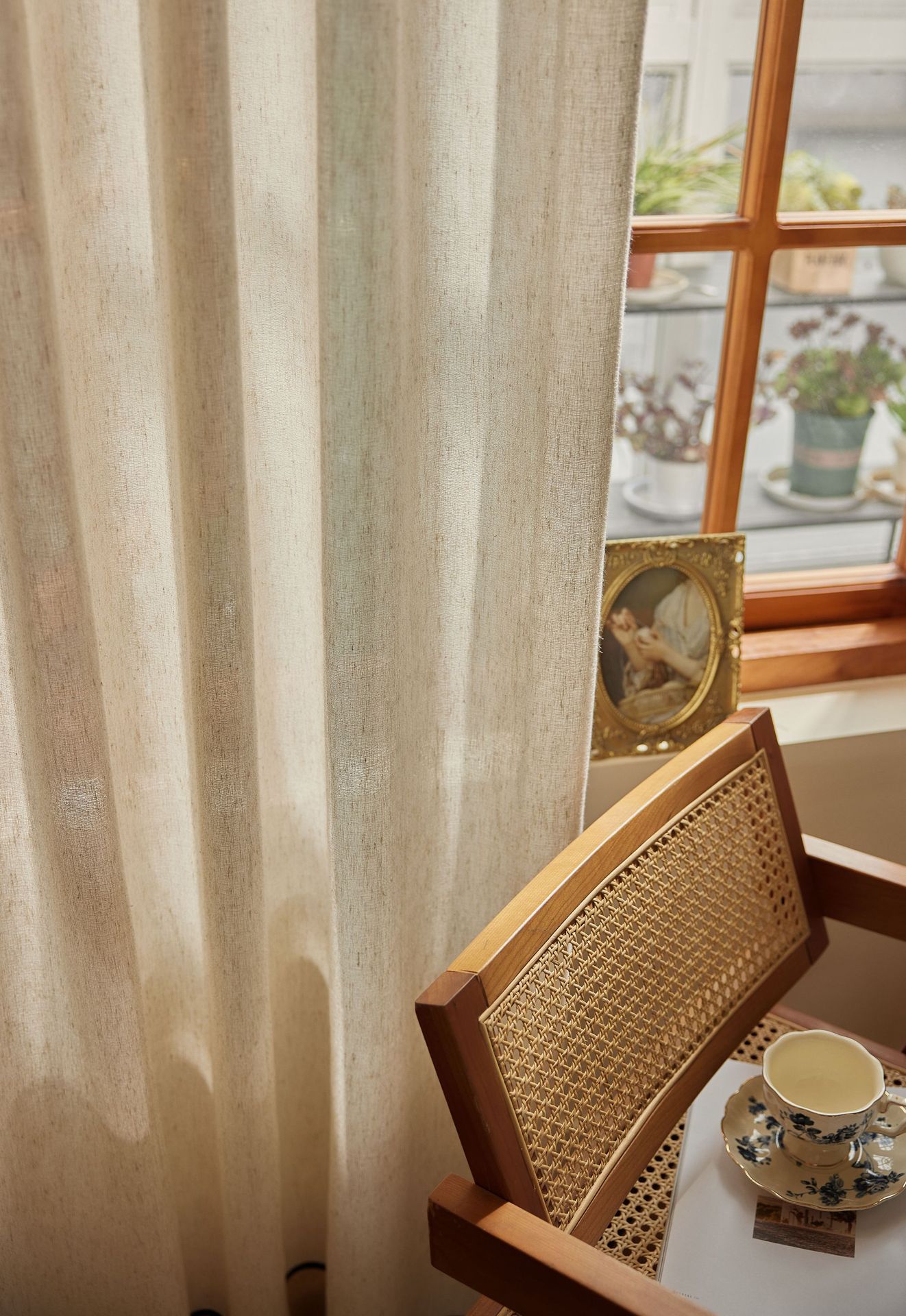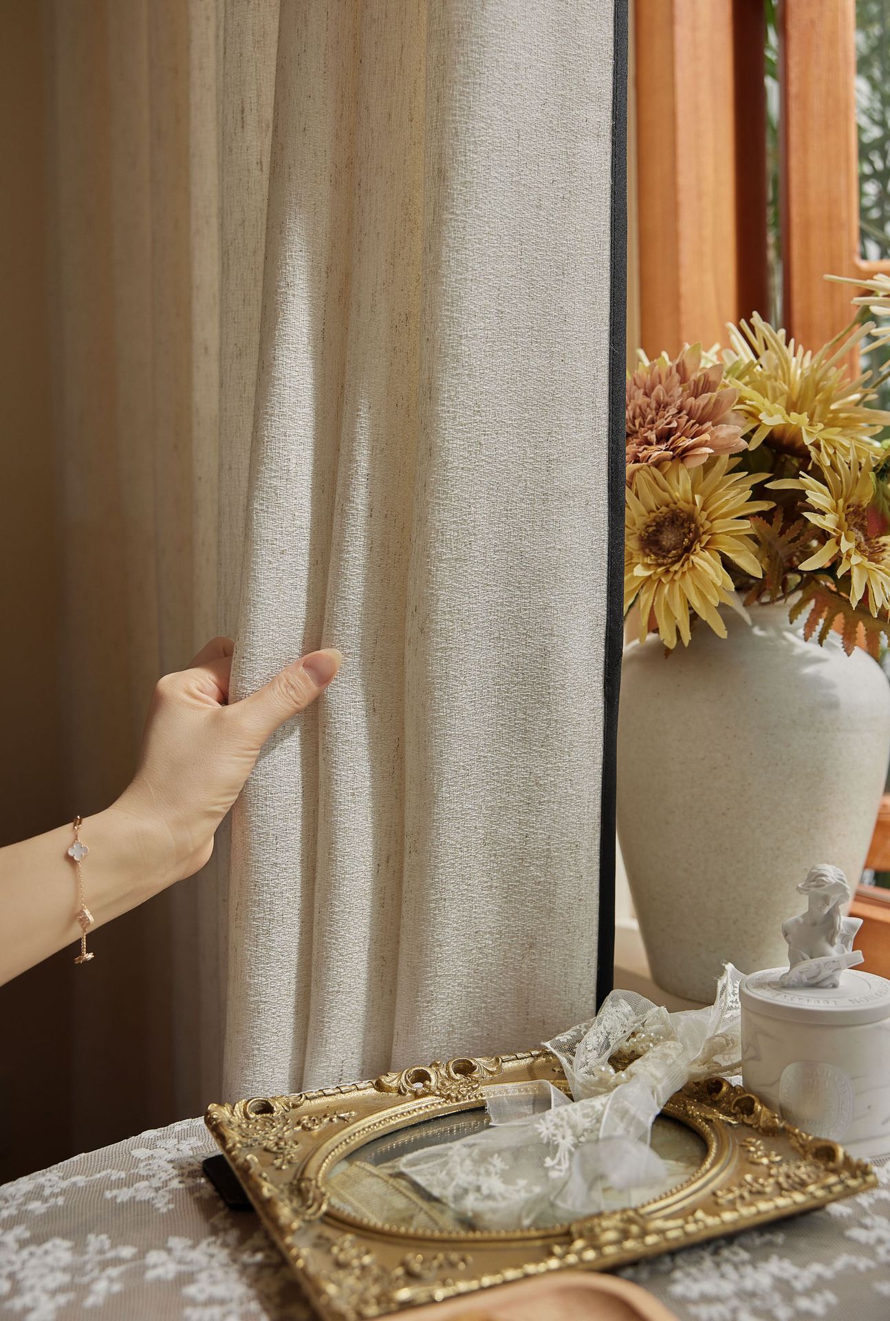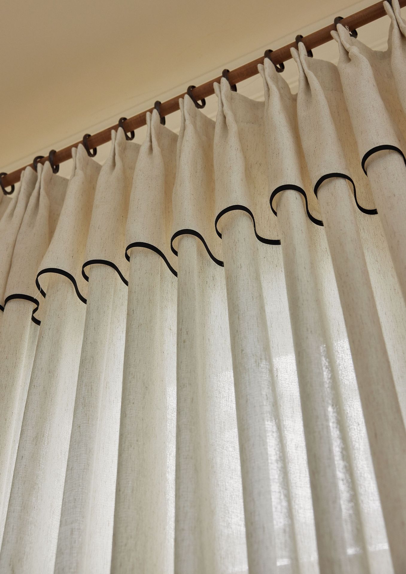프랑스 아마 코튼 린넨 원사 크림 블랙 에지 원사 커튼 스크린 창 스크린 투명 침투성 거실 침실 베이 창