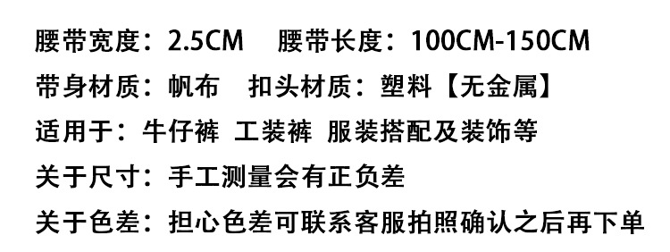 2.5cm 무금속 버클 캔버스 벨트, 학생용 트렌디한 작업복 바지용 버클, 길이가 긴 슬림형 벨트, 젊은이들을 위한 제품스토어 가기