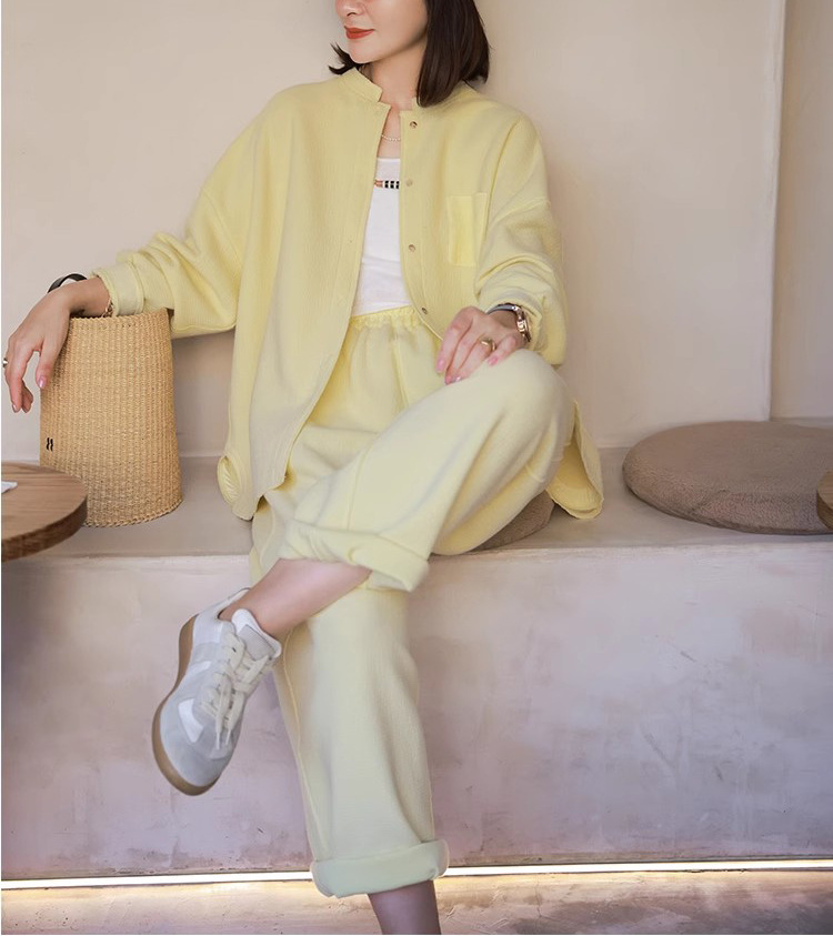 2025 가을 신상품, 푹신하고 부드러운 에어레이어, Q-탄성, 편안하고 피부친화적인 스탠드 칼라 긴팔 숏 코트와 래디쉬 팬츠스토어 가기