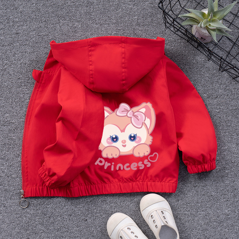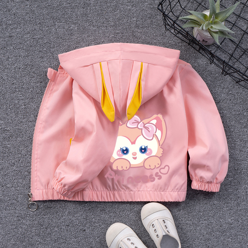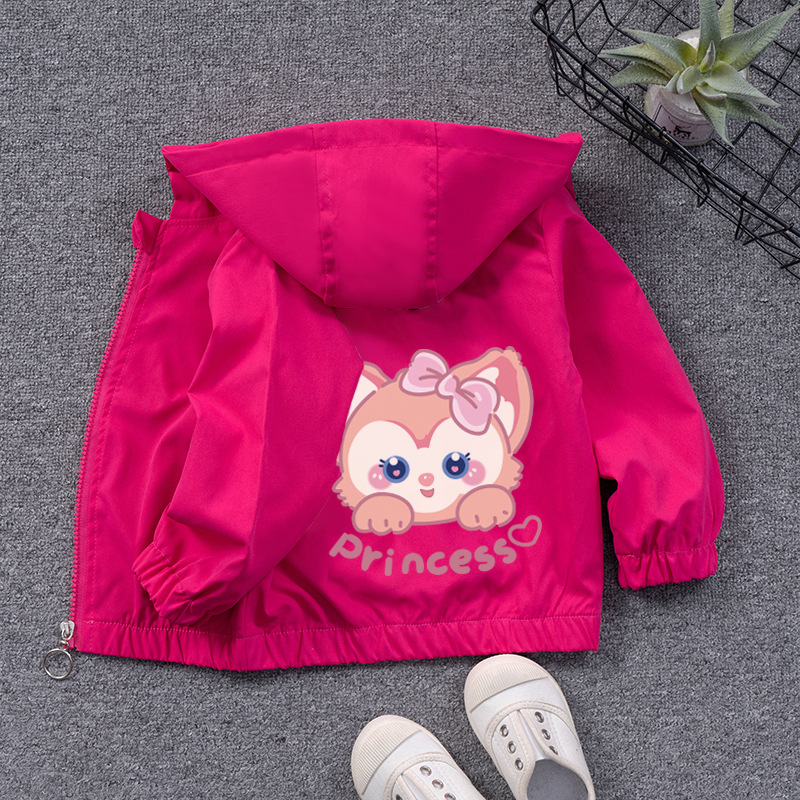 儿童外套女宝宝卡通糖果色开衫女童连帽拉链衫男童冲锋衣休闲外穿