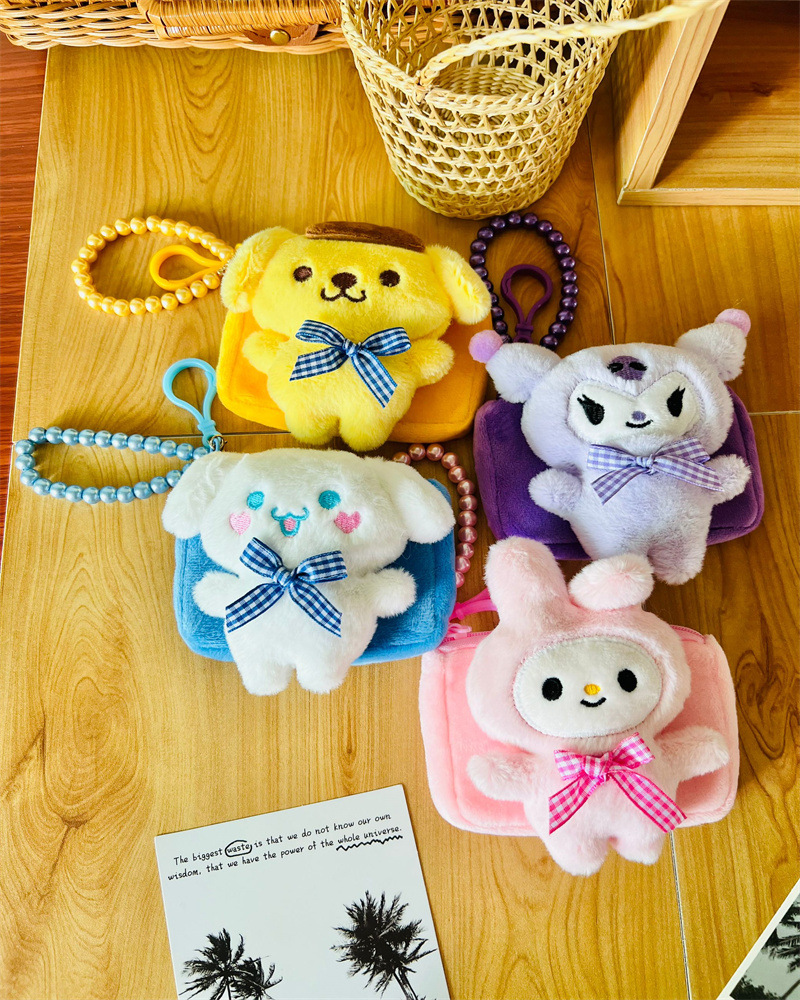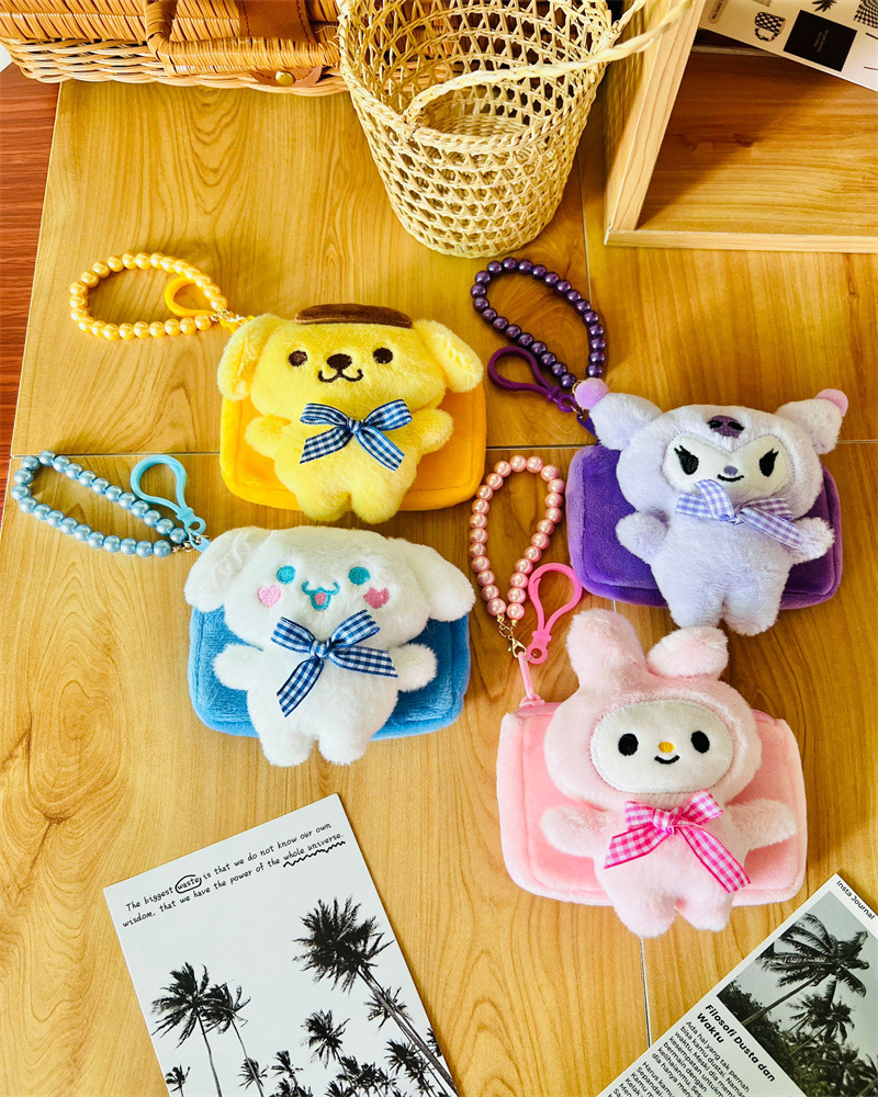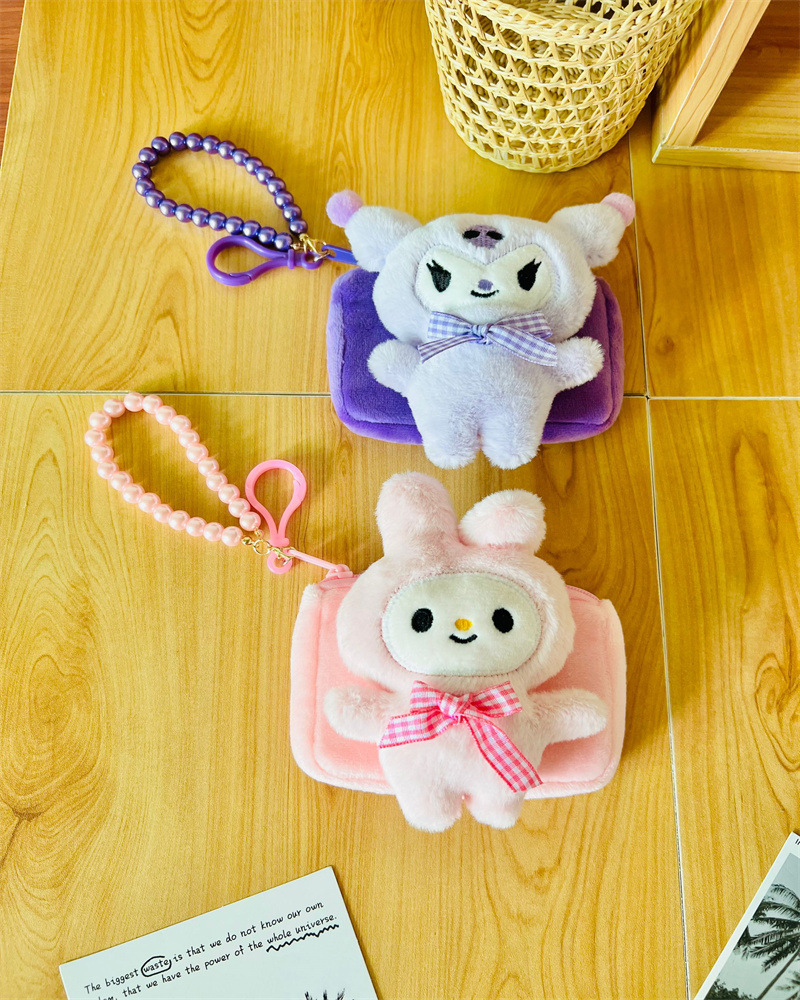 귀여운 산리오 쿠로미 플러시 동전 지갑, 만화 멜로디 휴대용 카드 지갑, 미니 가방스토어 가기