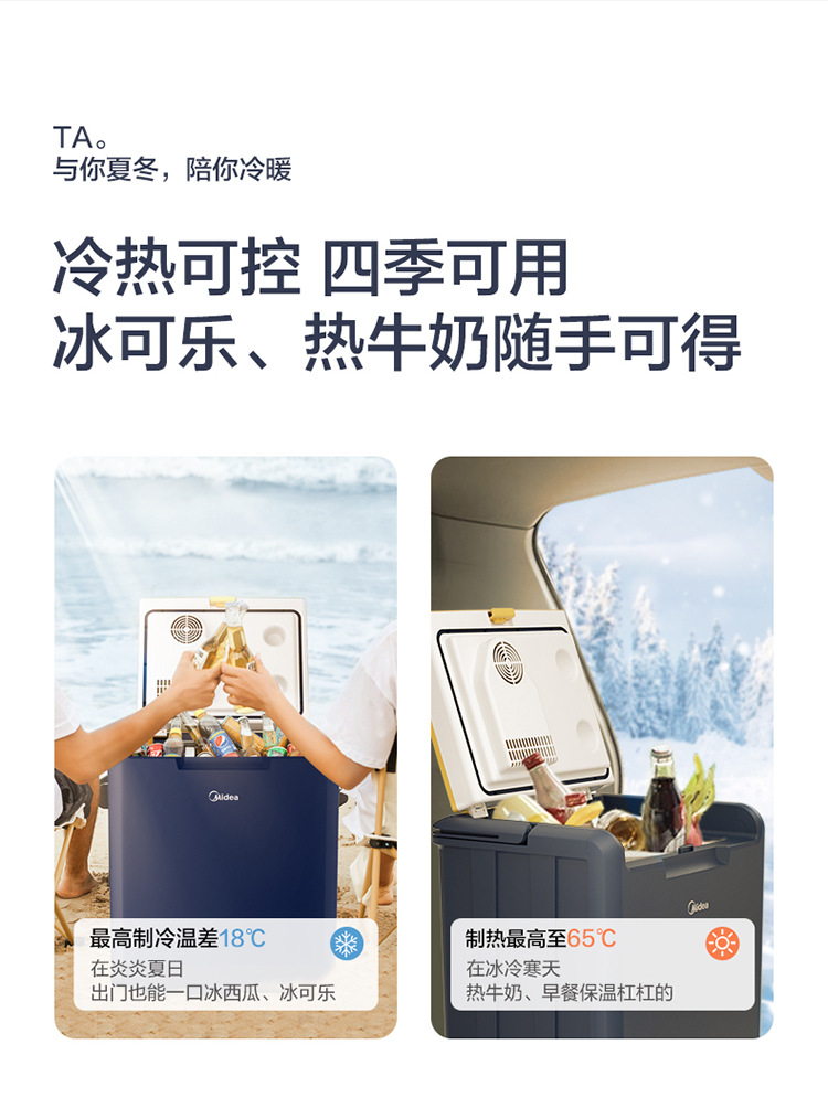 Midea 25 리터 DC-25M 반도체 냉동 난방 아이스 콜라 따뜻한 우유 차갑고 따뜻한 자동차 냉장고/난방 상자스토어 가기