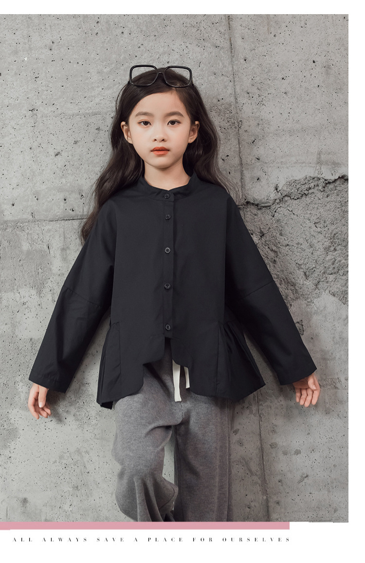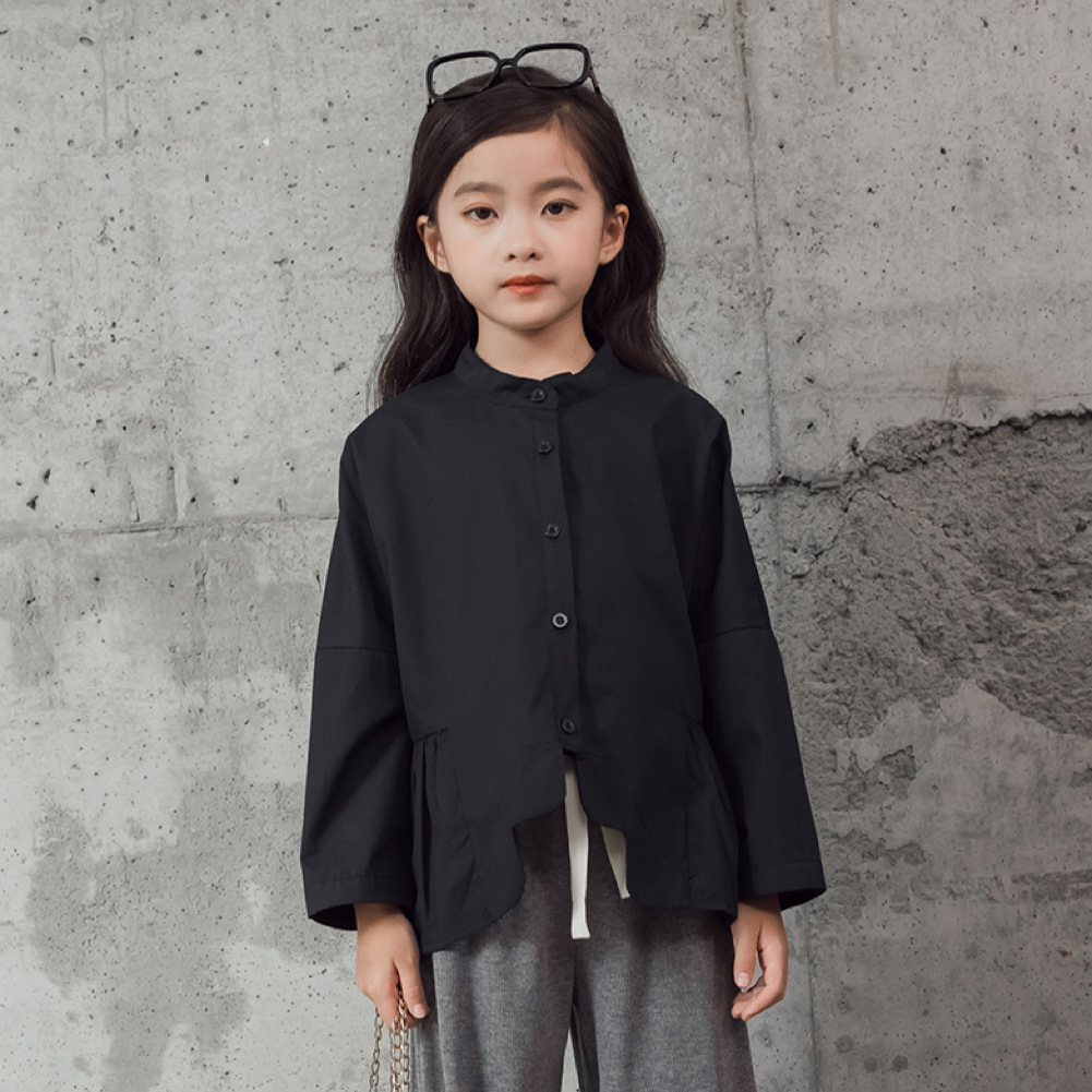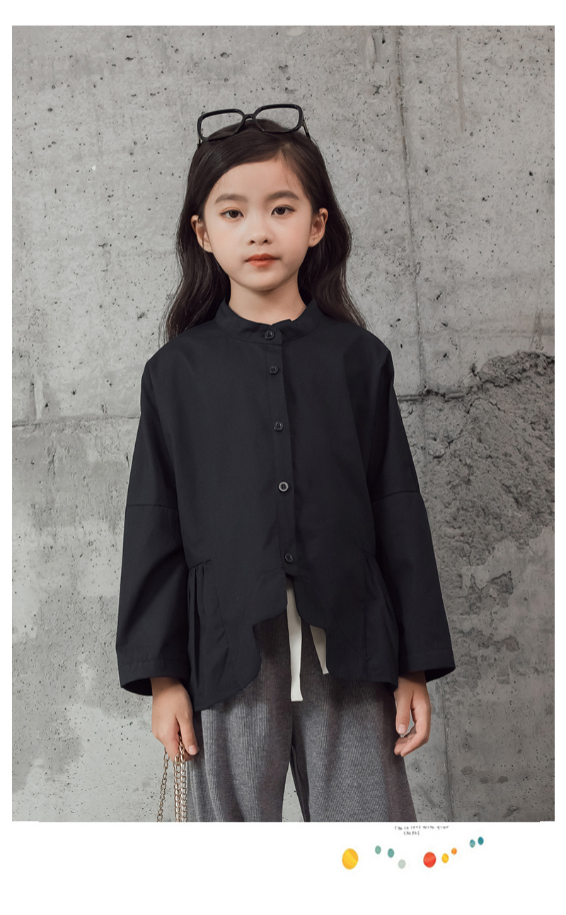 2024 소녀 다목적 가을 인형 셔츠 아동 의류 코튼 스탠드 칼라 느슨한 카디건 탑 부모-자식 의류 드롭 배송스토어 가기
