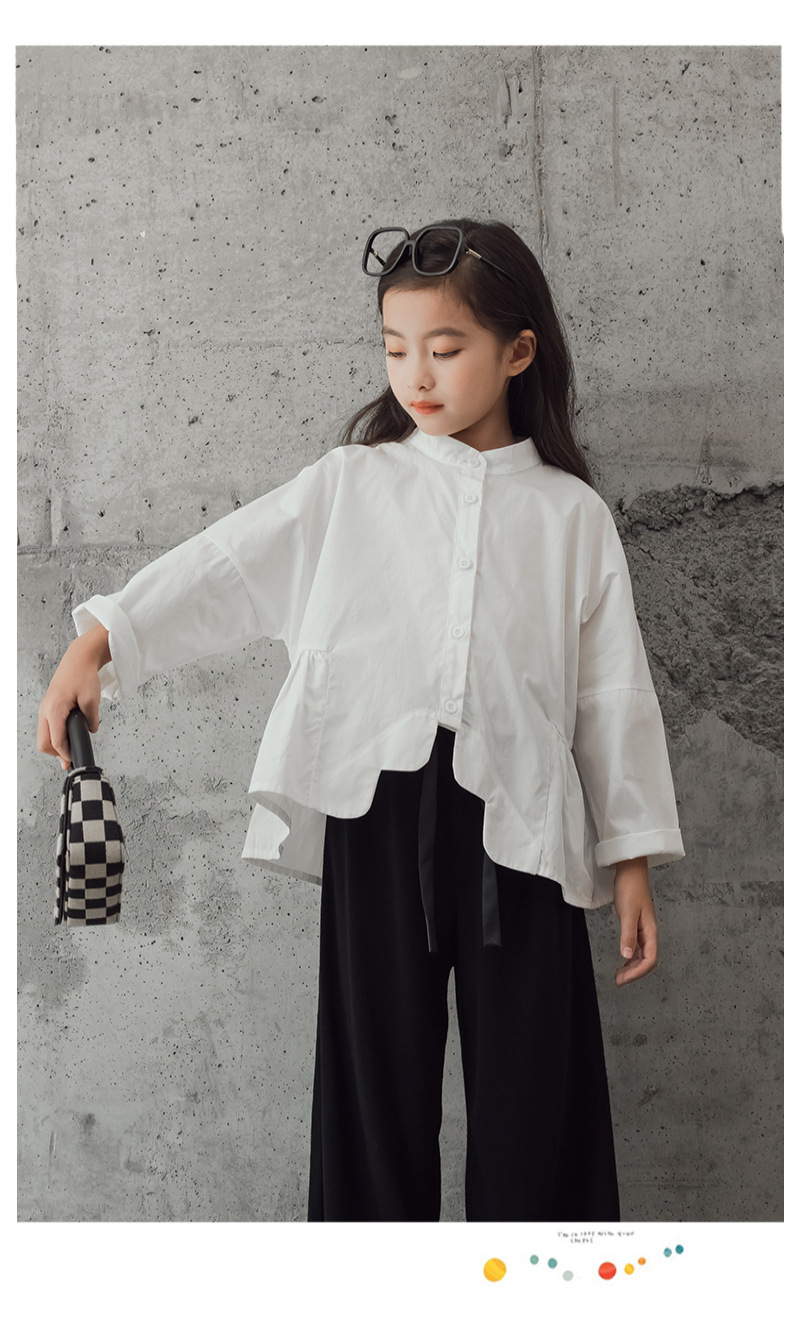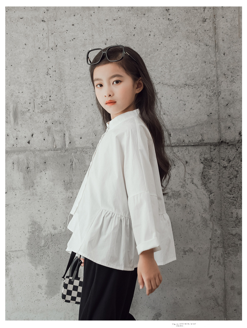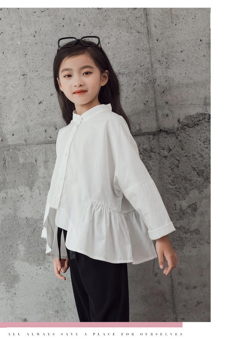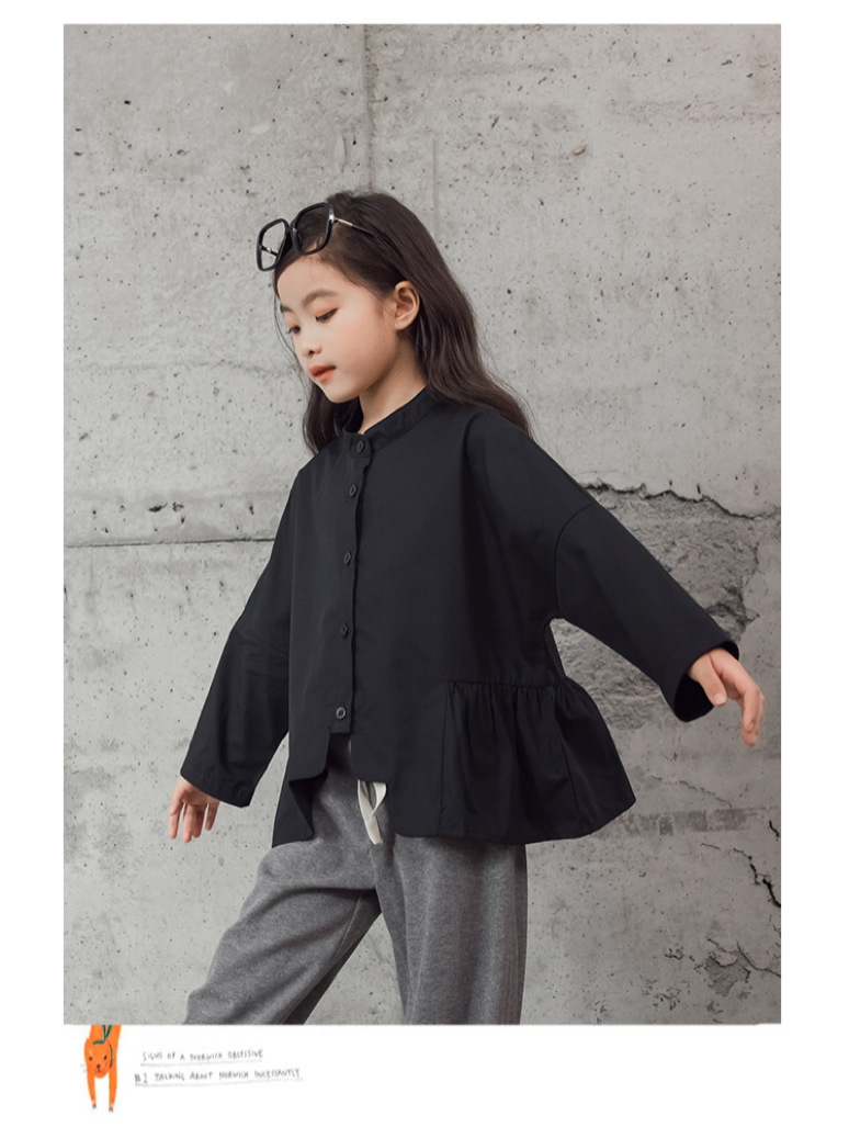 2024 소녀 다목적 가을 인형 셔츠 아동 의류 코튼 스탠드 칼라 느슨한 카디건 탑 부모-자식 의류 드롭 배송스토어 가기