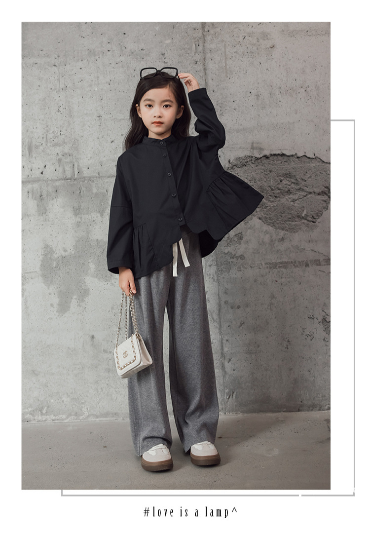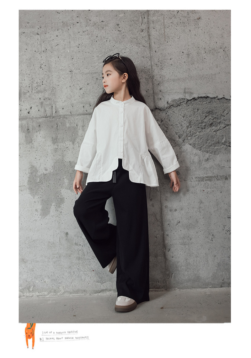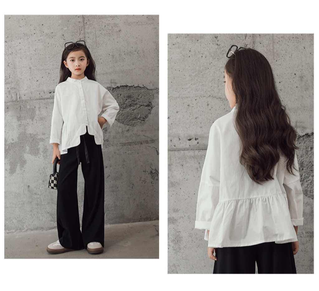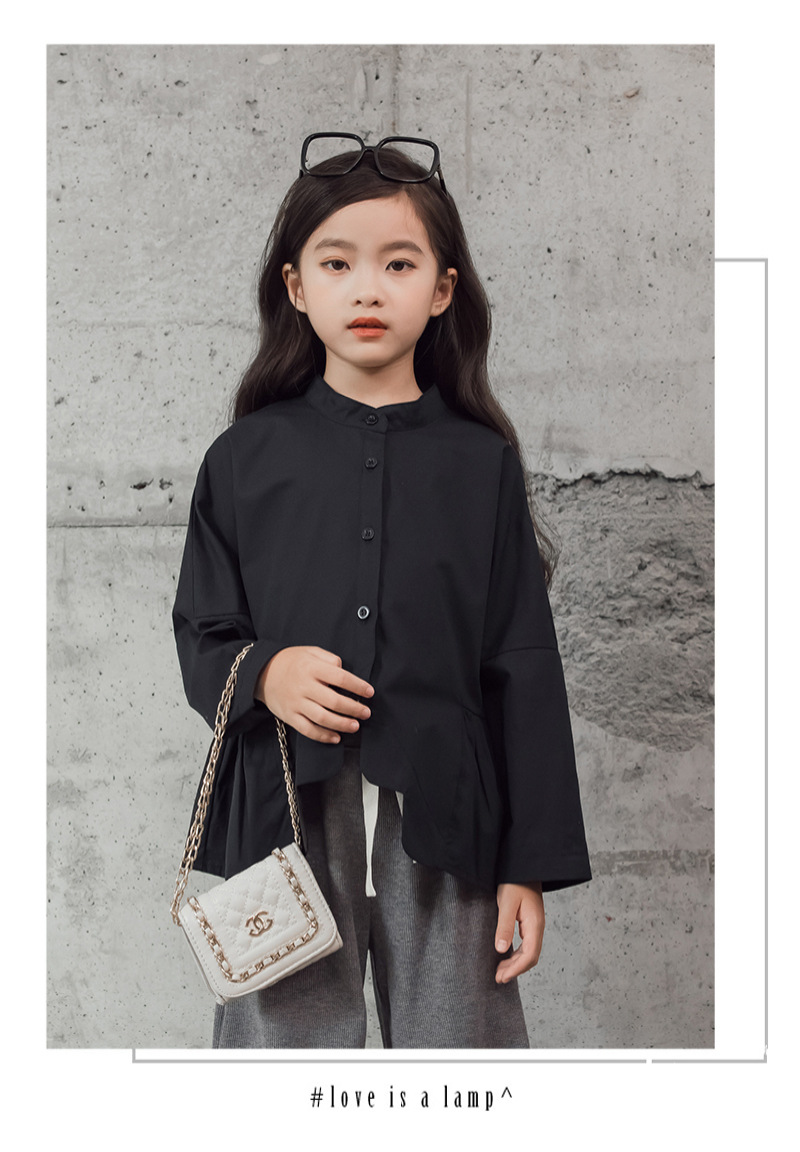 2024 소녀 다목적 가을 인형 셔츠 아동 의류 코튼 스탠드 칼라 느슨한 카디건 탑 부모-자식 의류 드롭 배송