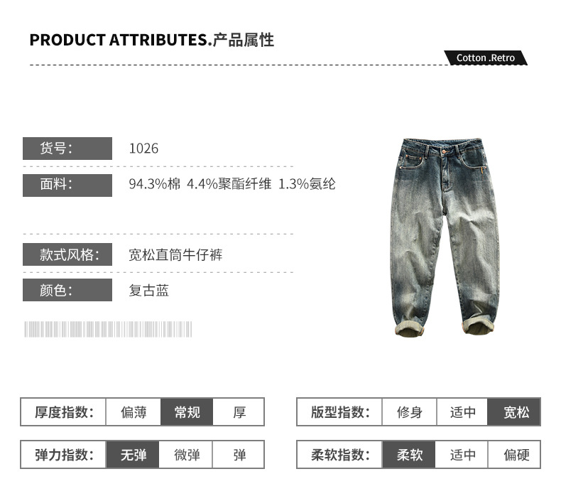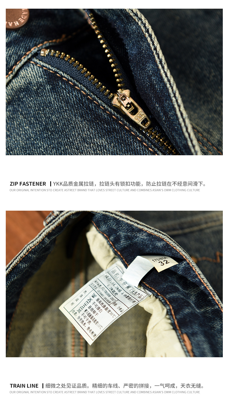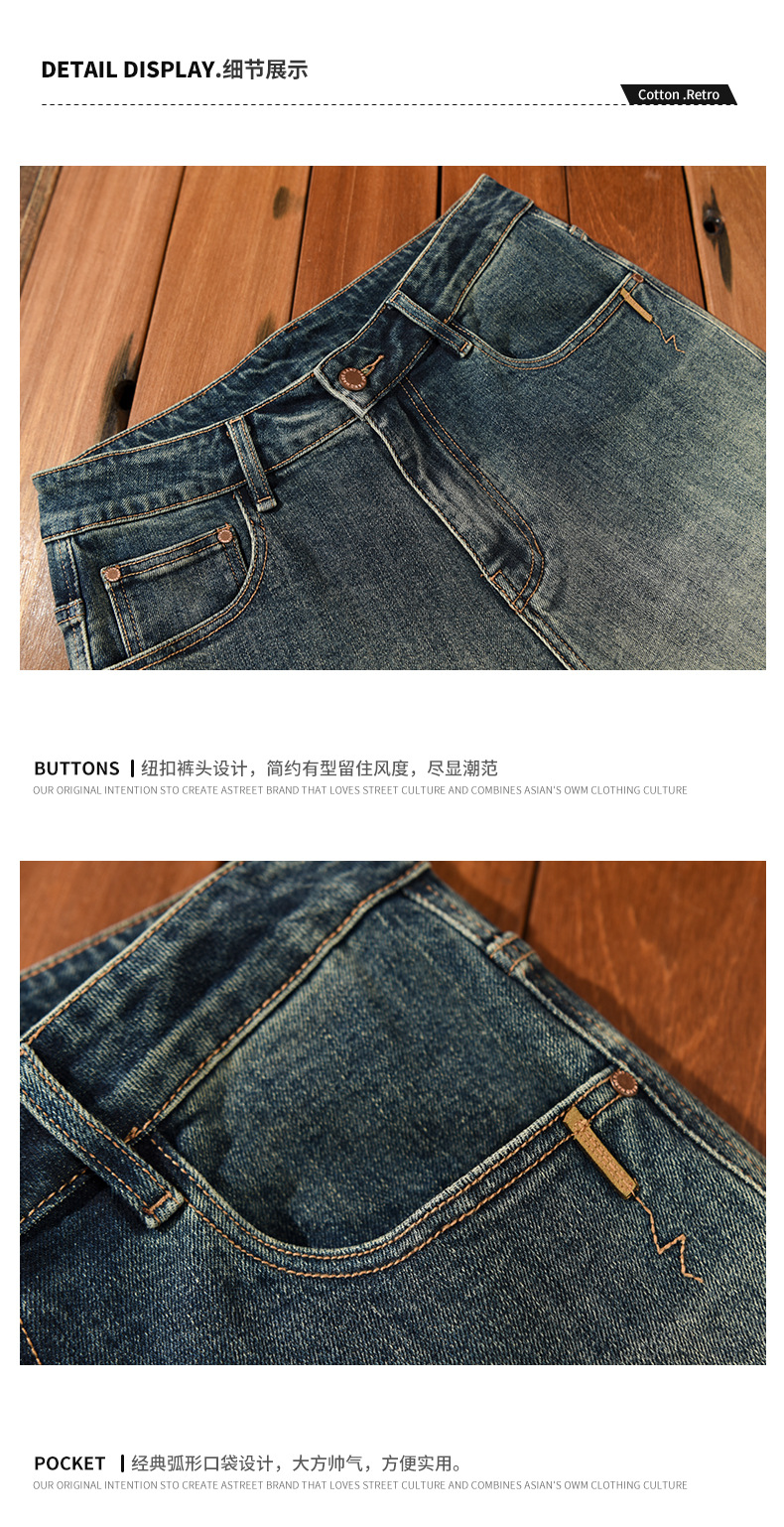 1026 새로운 패션 트렌드 남성용 레트로 워시 캐주얼 청바지 남성 바지 머리카락 세대스토어 가기