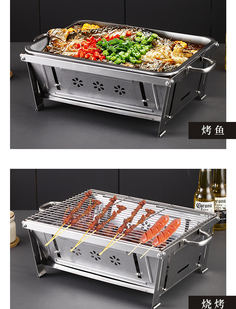 스테인레스 스틸 접이식 바베큐 오븐 생선 접시 야외 휴대용 생선 오븐 바베큐 랙 상업 공장 도매 숯 오븐스토어 가기