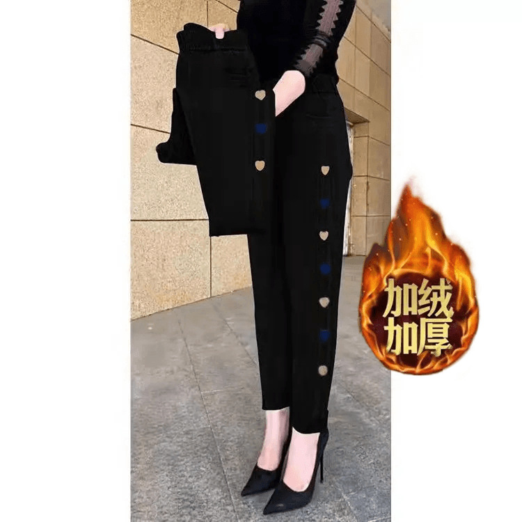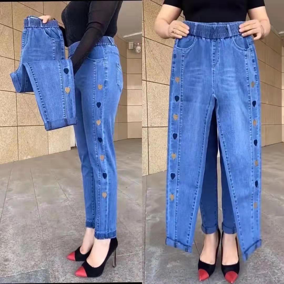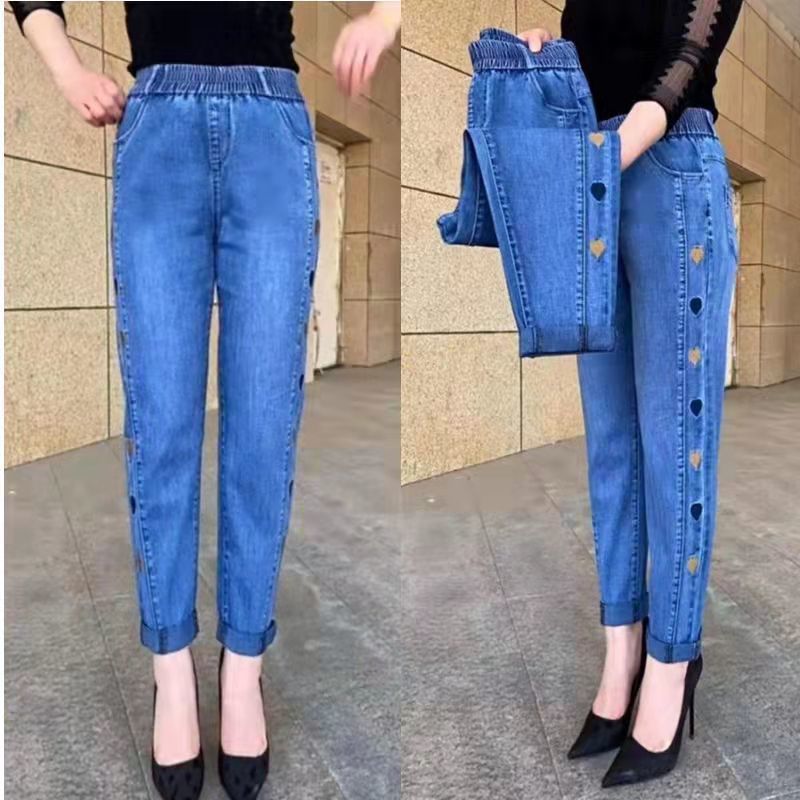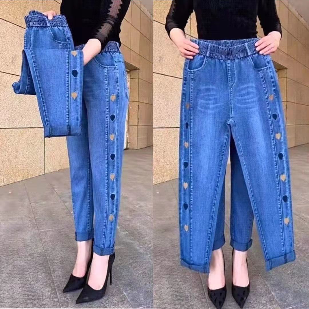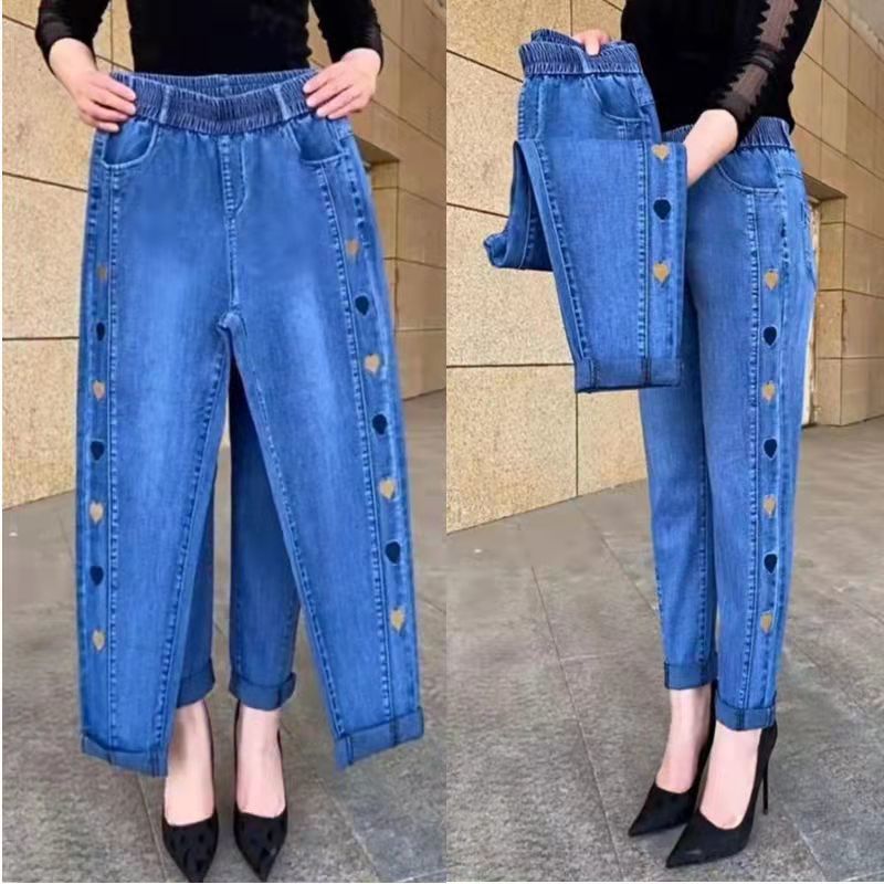 2023 가을과 겨울 새로운 Harlan 기모 청바지 여성용 플러스 사이즈 스트레치 하이 웨이스트 중년 느슨한 모든 경기 슬리밍 바지