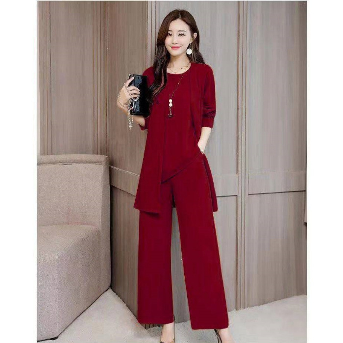 AliExpress 봄과 가을 세트 여성의 새로운 패션 캐주얼 웨스턴 스타일 슬리밍 연령 감소 패션 플러스 사이즈 여성 3 종 세트