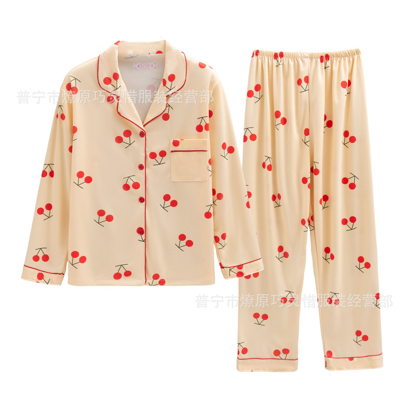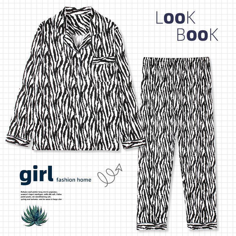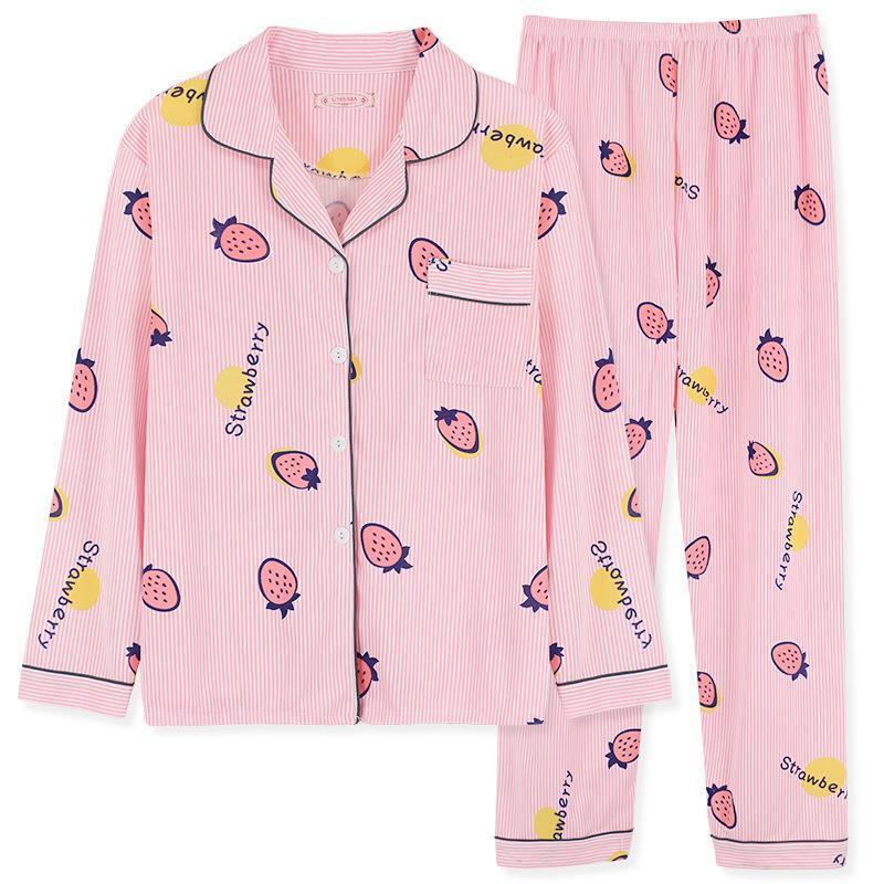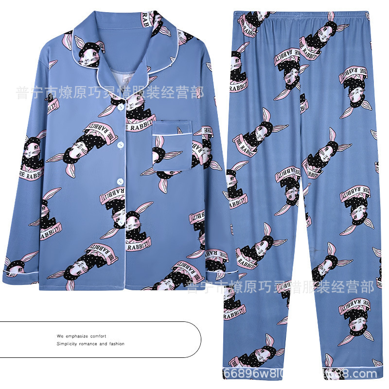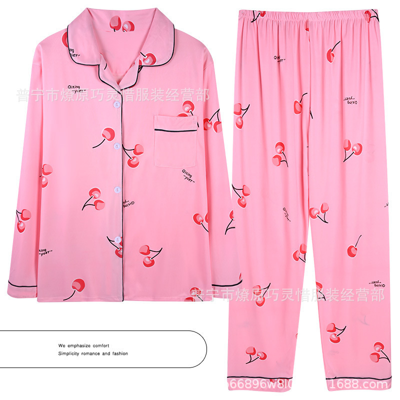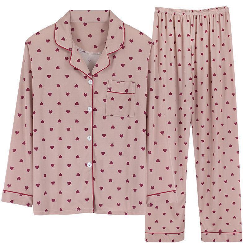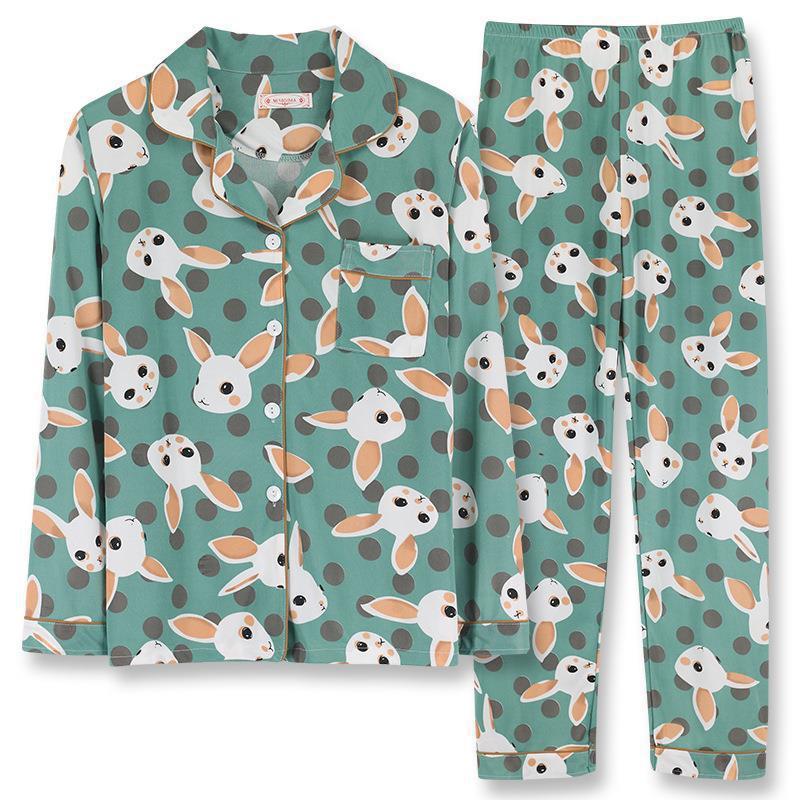 긴 소매 물방울 무늬 잠옷 여성 2022 새로운 만화 귀여운 플러스 사이즈 가정 의류 가을 라이브 두 조각 크로스 보더 한국어 버전