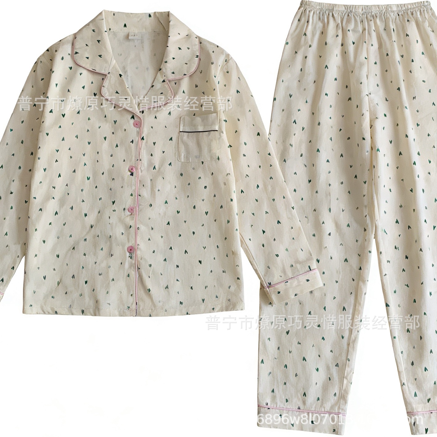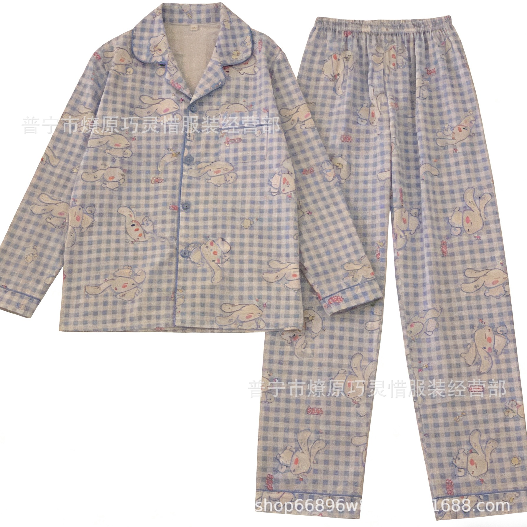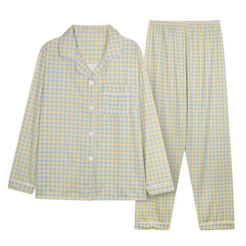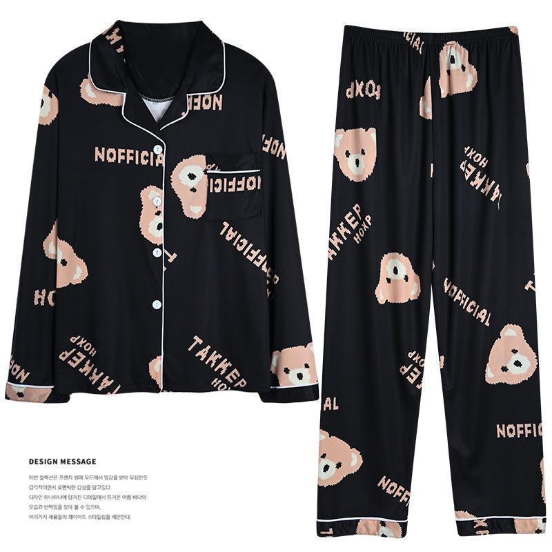 긴 소매 물방울 무늬 잠옷 여성 2022 새로운 만화 귀여운 플러스 사이즈 가정 의류 가을 라이브 두 조각 크로스 보더 한국어 버전