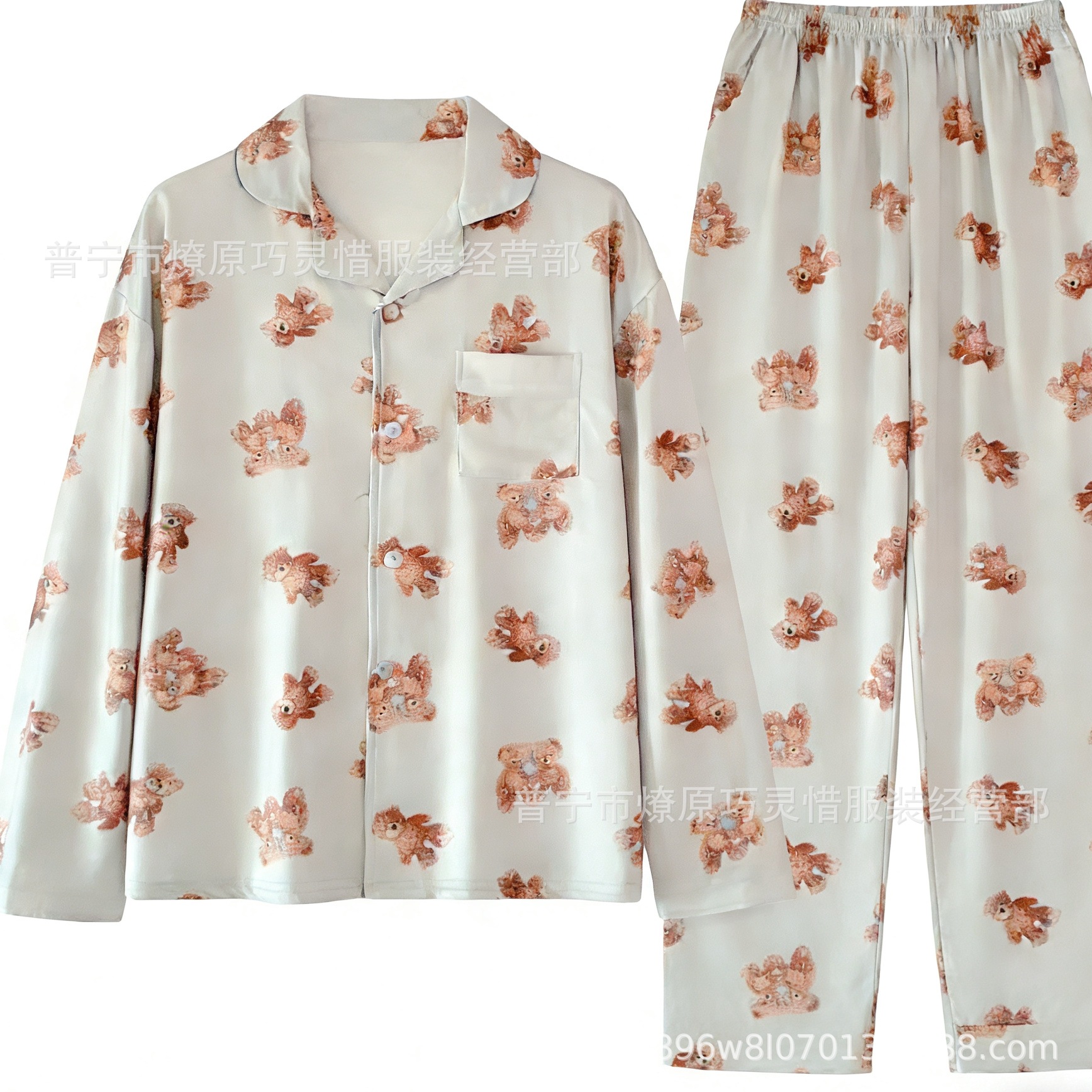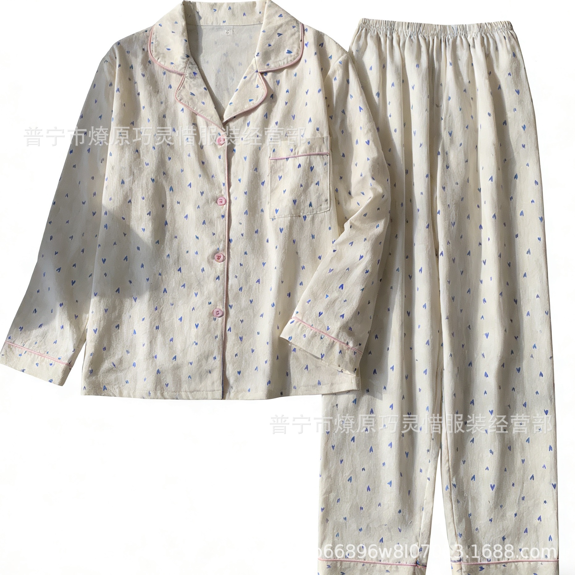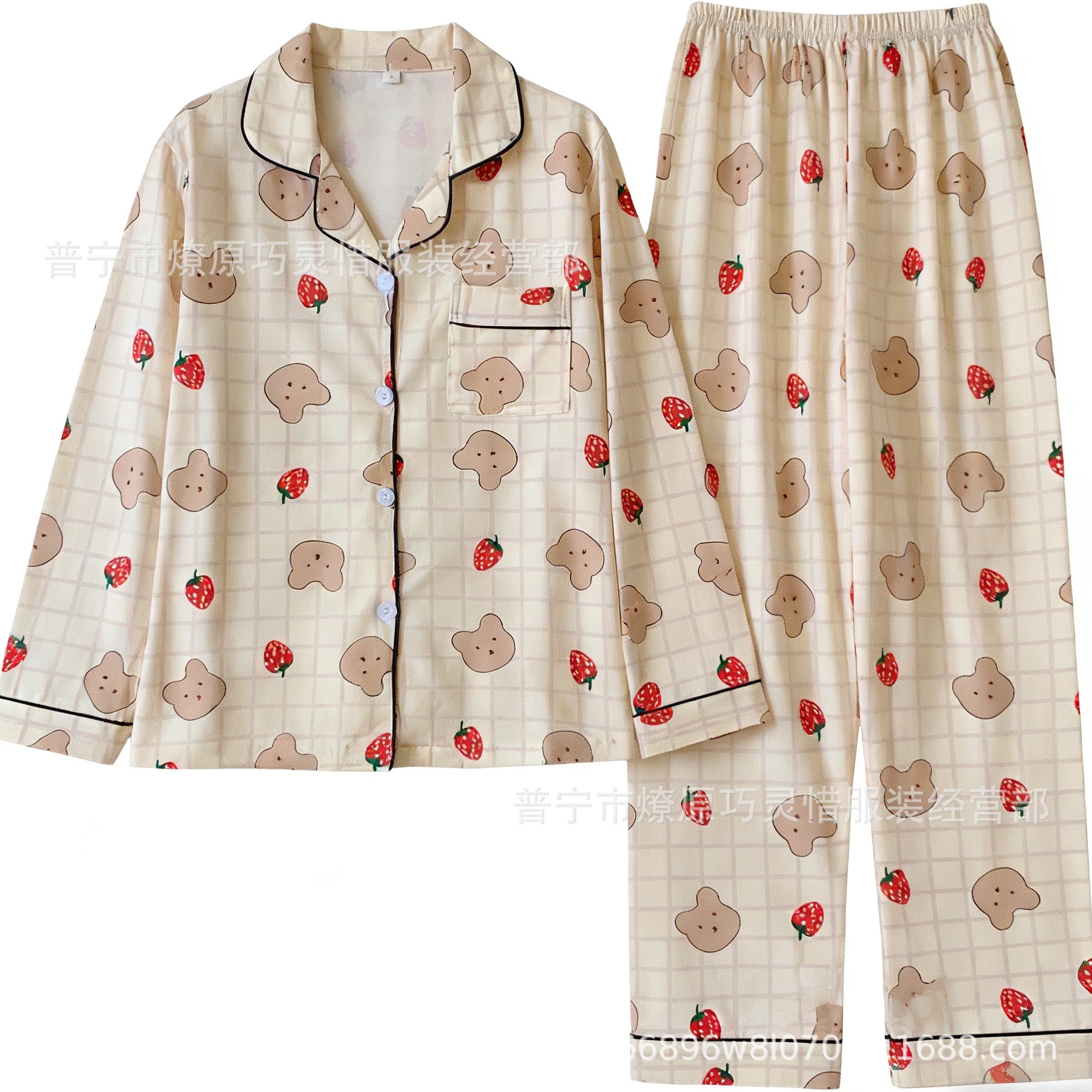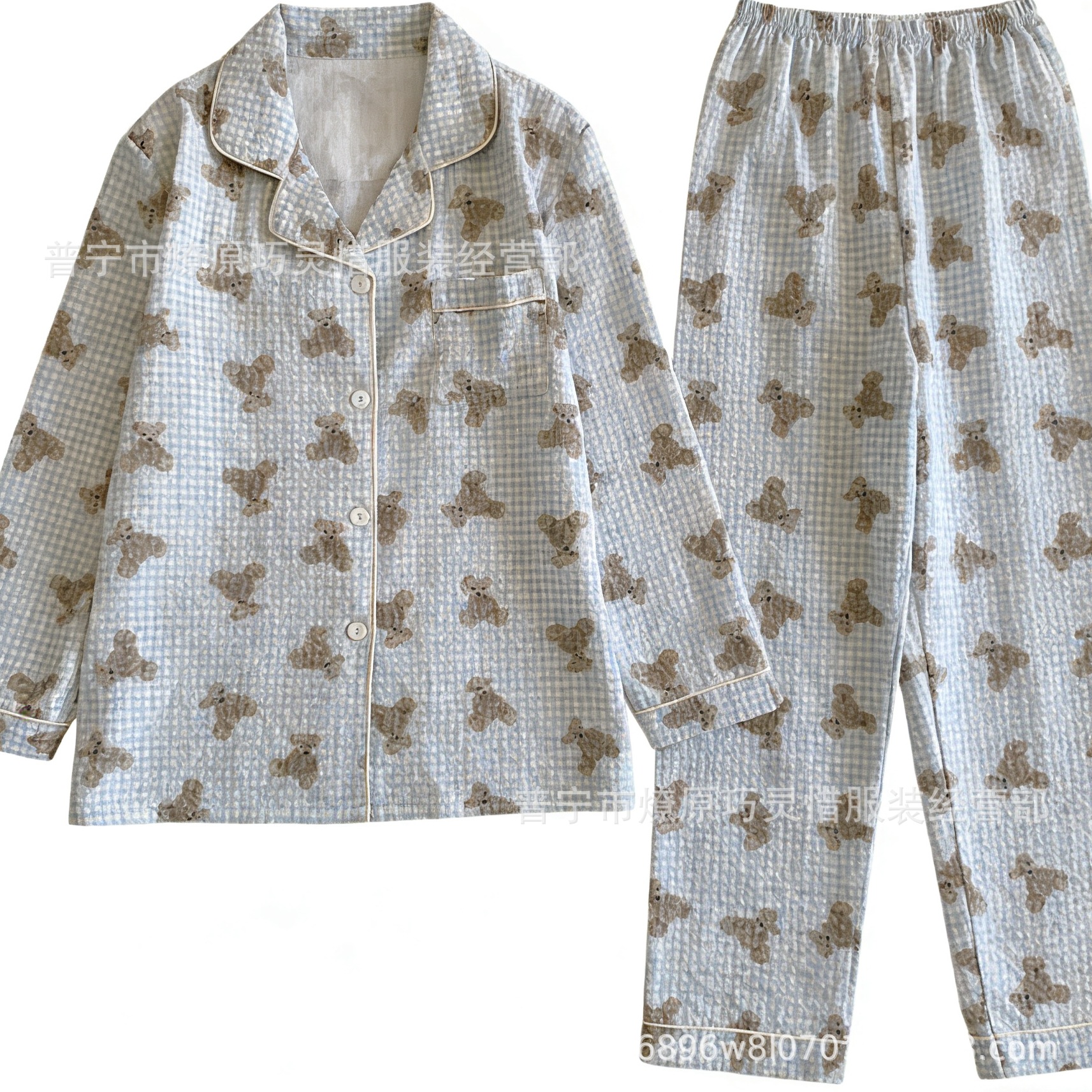 긴 소매 물방울 무늬 잠옷 여성 2022 새로운 만화 귀여운 플러스 사이즈 가정 의류 가을 라이브 두 조각 크로스 보더 한국어 버전