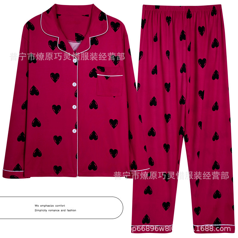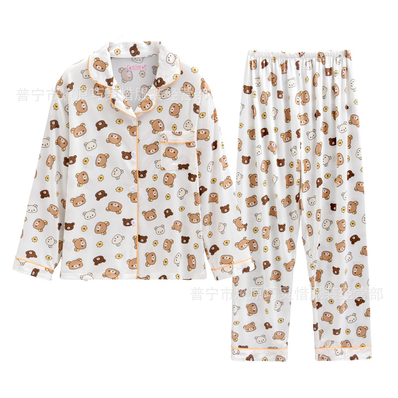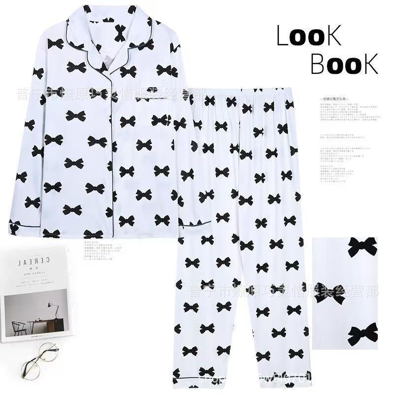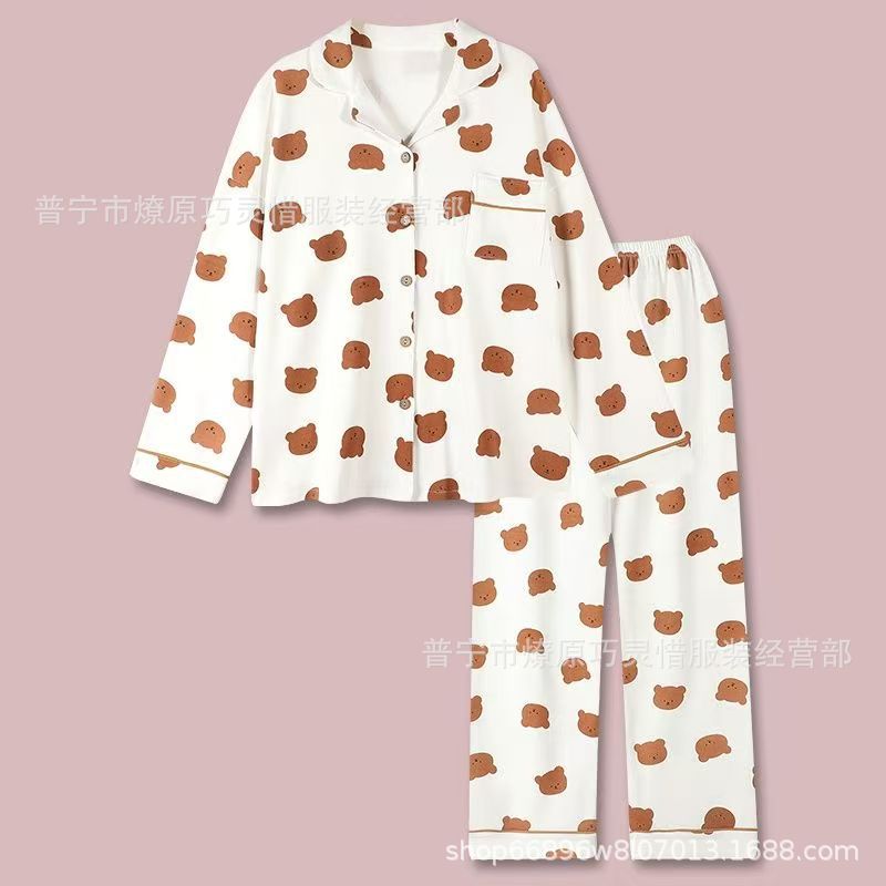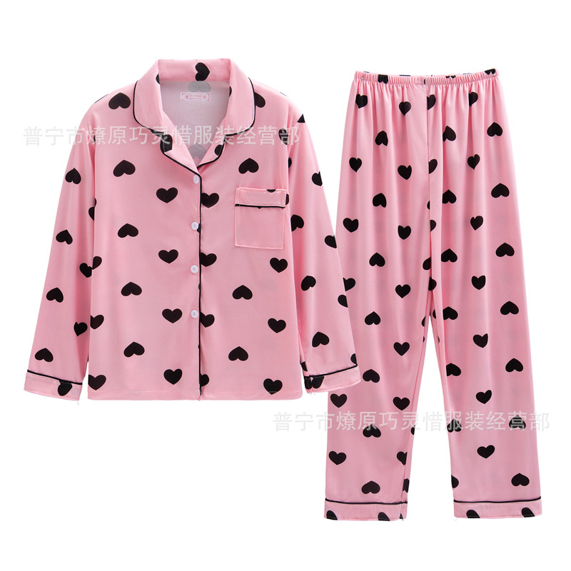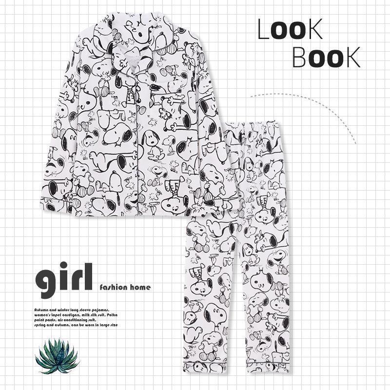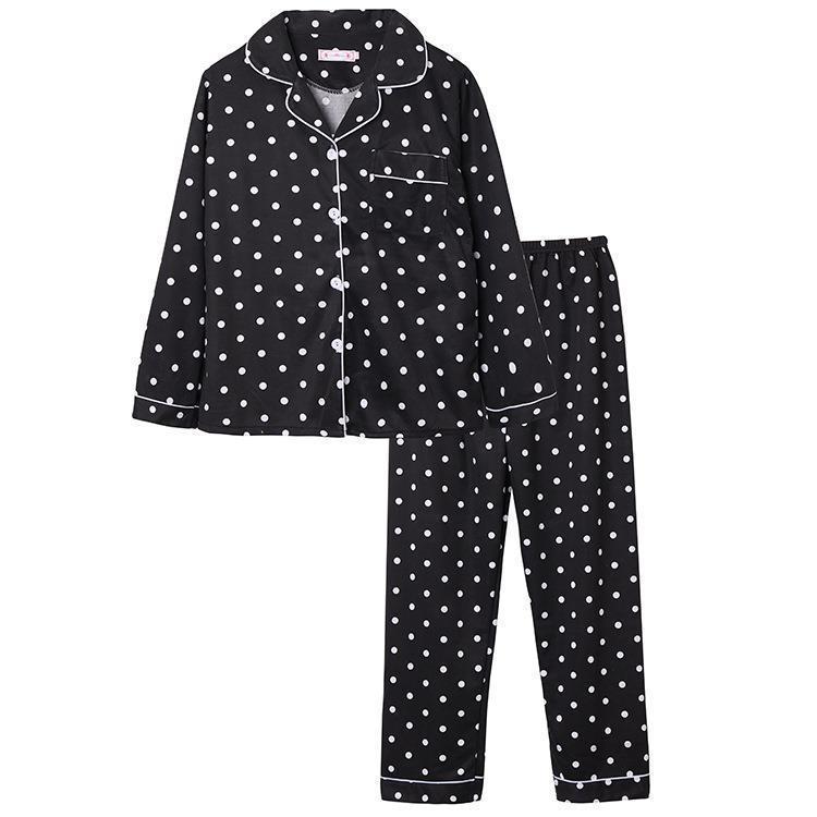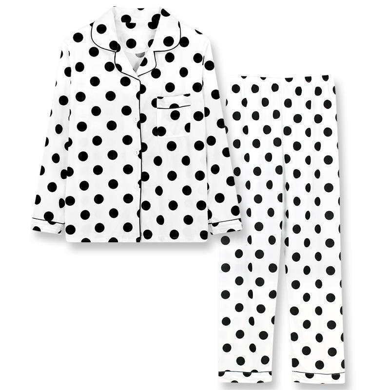 긴 소매 물방울 무늬 잠옷 여성 2022 새로운 만화 귀여운 플러스 사이즈 가정 의류 가을 라이브 두 조각 크로스 보더 한국어 버전스토어 가기