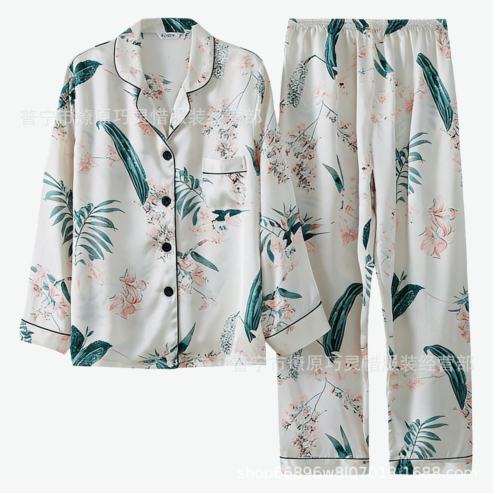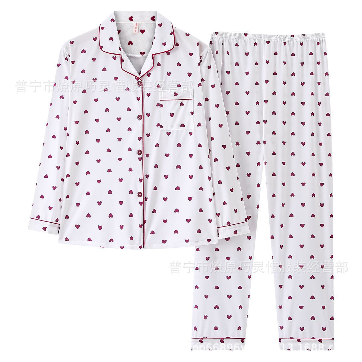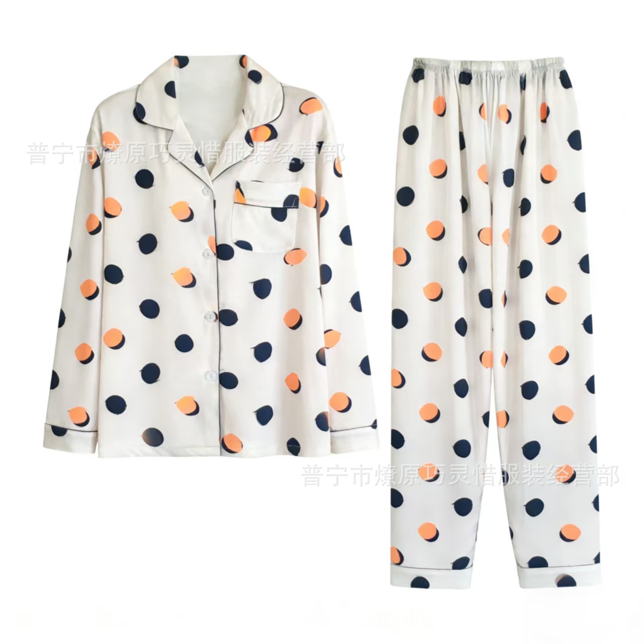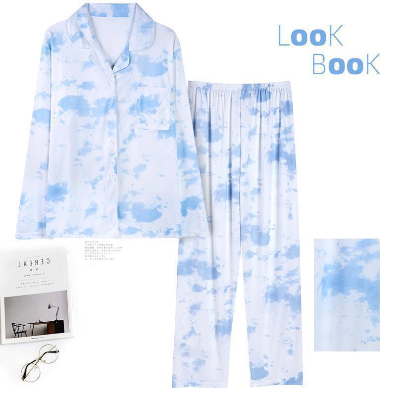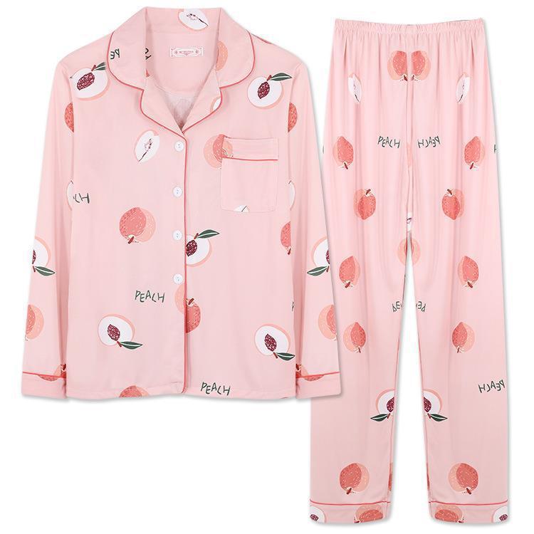 긴 소매 물방울 무늬 잠옷 여성 2022 새로운 만화 귀여운 플러스 사이즈 가정 의류 가을 라이브 두 조각 크로스 보더 한국어 버전스토어 가기