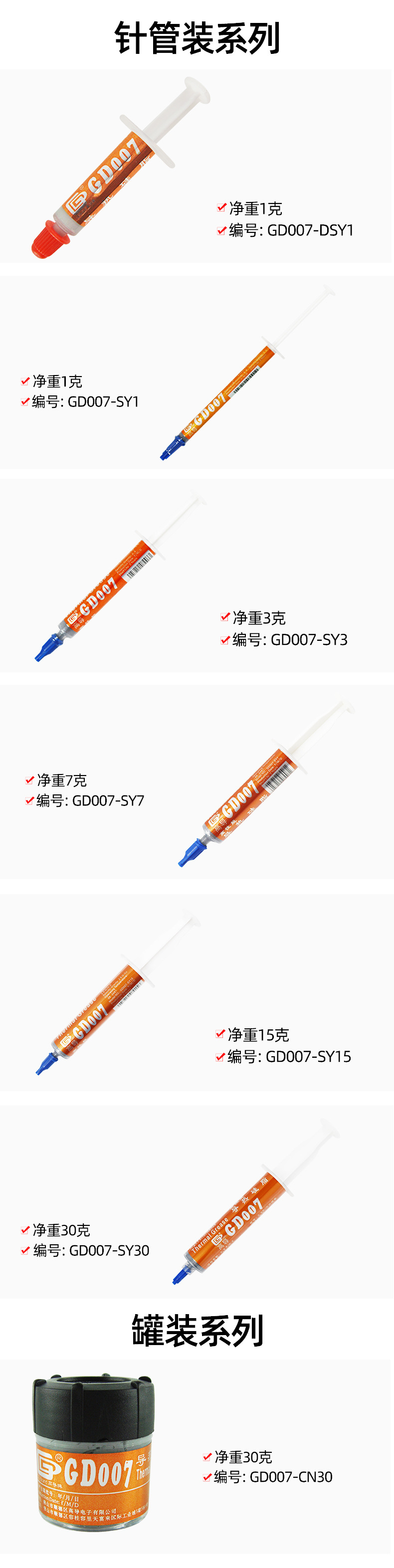 높은 순 중량 1/3/7/15/30g GD007 컴퓨터 CPU/GPU 열 그리스 열 방출 실리콘 페이스트 SY/CN