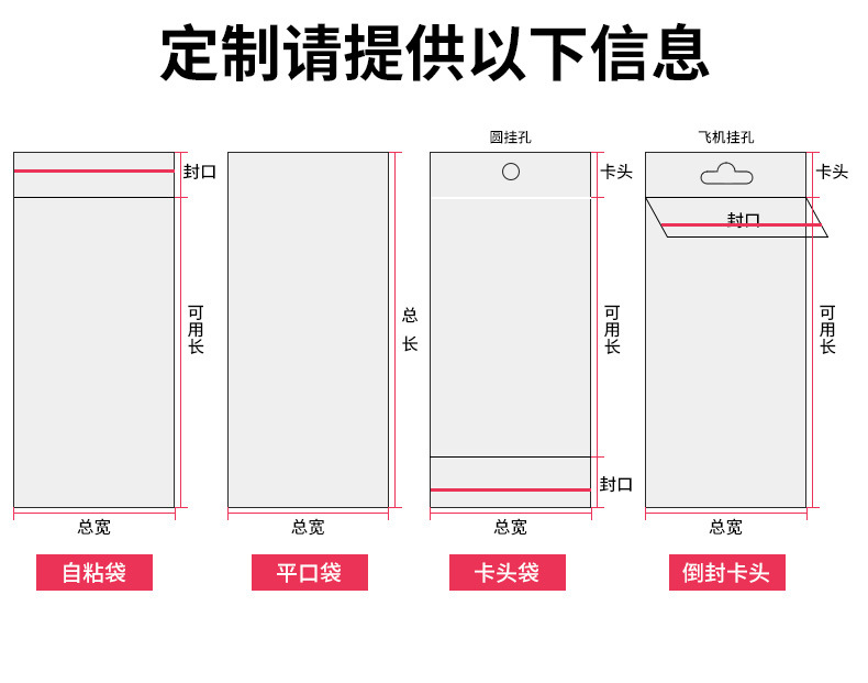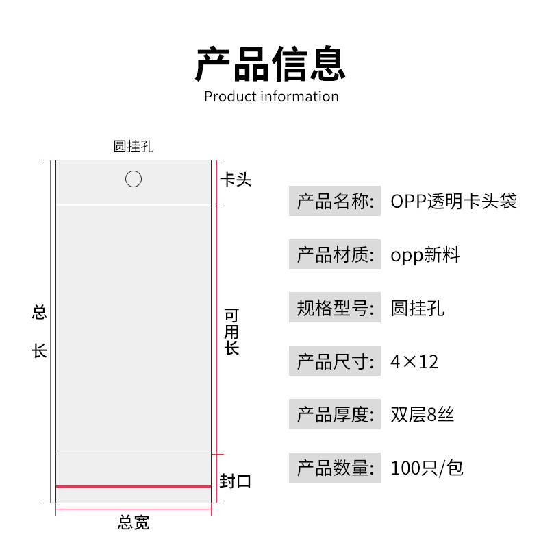 흰색 카드 헤드 가방 투명 교수형 구멍 목걸이 포장 가방 데이터 케이블 리필 opp 가방 인쇄 보석 가방 작은 배치스토어 가기