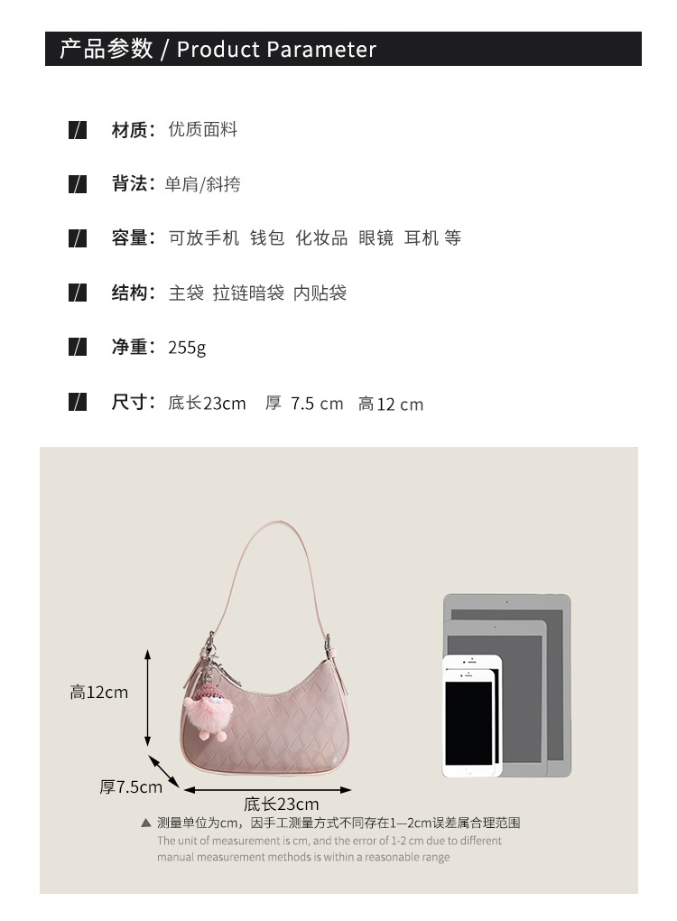 2024 새로운 트렌디 한 틈새 디자인 고급 어깨 메신저 백 틈새 올 매치 핸드백 겨드랑이 백 크레센트 백