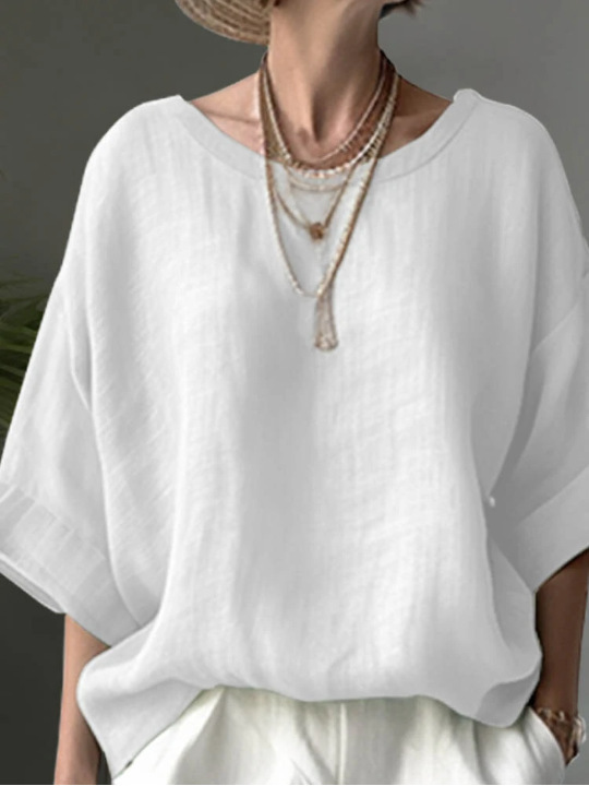 대량 재고 국경 새로운 단색 편안한 캐주얼 라운드 넥 드롭 어깨 느슨한 슬리밍 여성 대형 셔츠스토어 가기