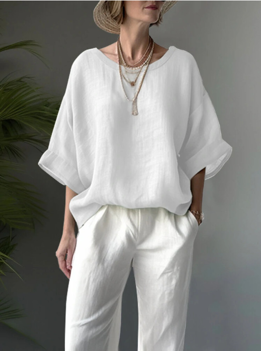 대량 재고 국경 새로운 단색 편안한 캐주얼 라운드 넥 드롭 어깨 느슨한 슬리밍 여성 대형 셔츠