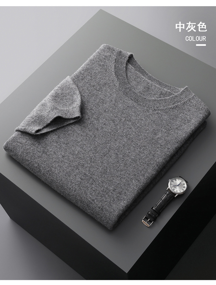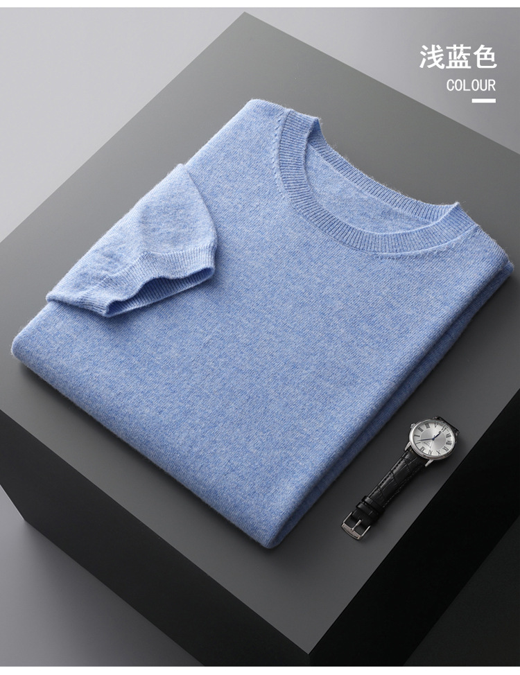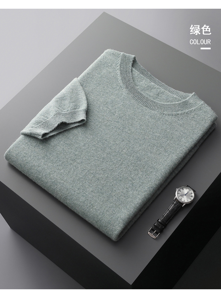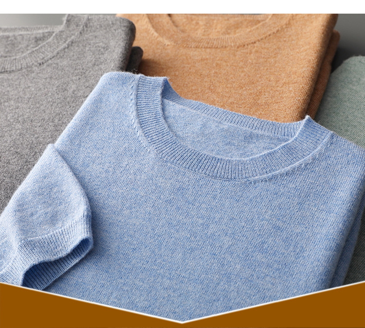 100% 순모 남성용 단색 얇은 라운드넥 스웨터 반팔 캐주얼 따뜻한 루즈핏 베이스 스웨터 반소매스토어 가기