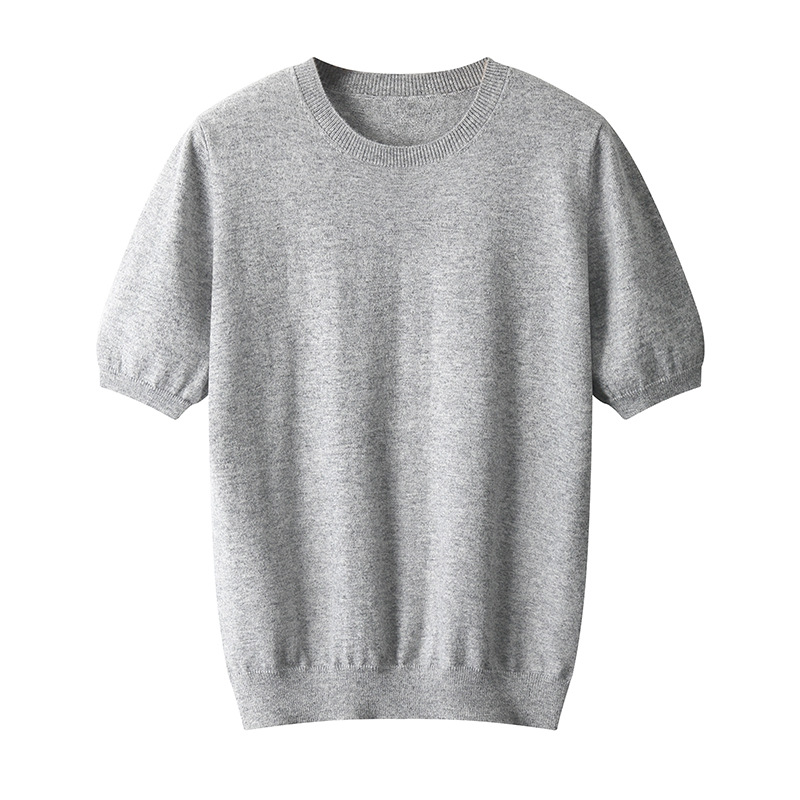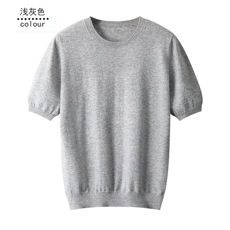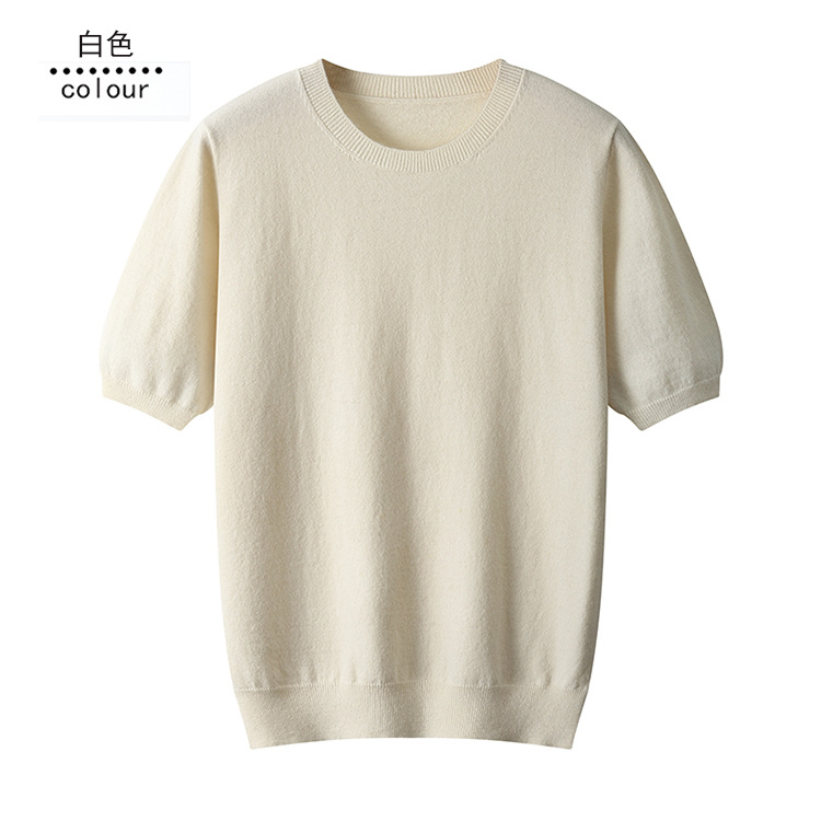 100% 순모 남성용 단색 얇은 라운드넥 스웨터 반팔 캐주얼 따뜻한 루즈핏 베이스 스웨터 반소매