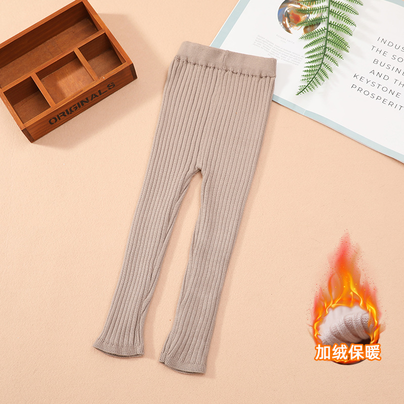 한국 스타일 가을 여아 니트 바지 2025 여아용 단색 레깅스 아동용 9부 타이트 팬츠 트렌디스토어 가기