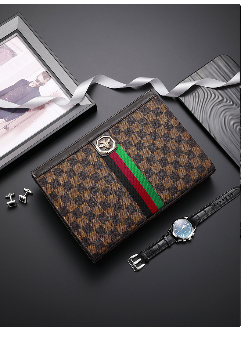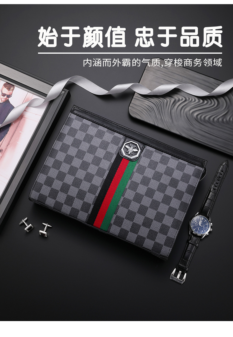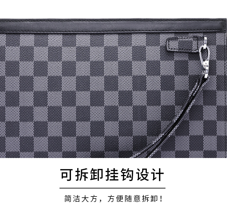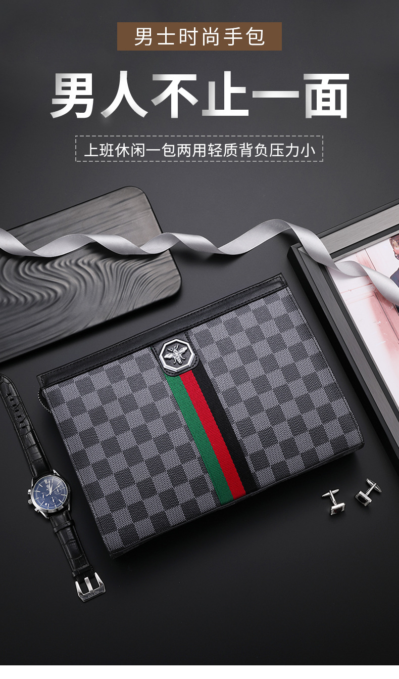남성용 언더암 가방 사업 통근 발수 PVC 클램프 가방 트렌디 한 체크 긴 남성용 가방 가벼운 럭셔리 핸드백스토어 가기