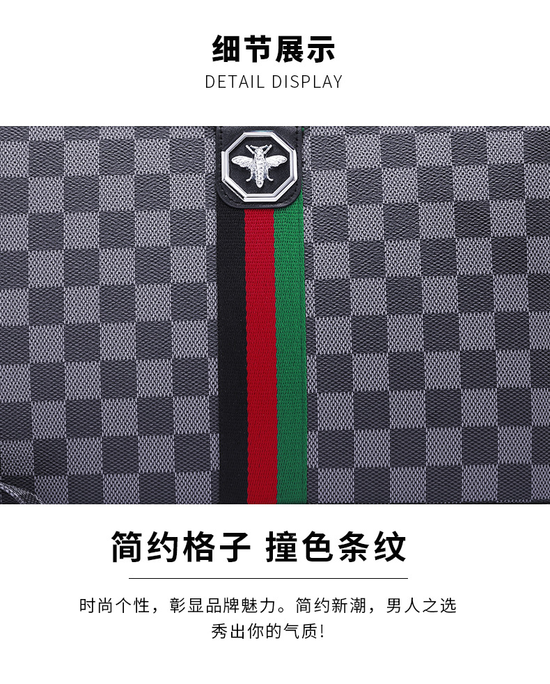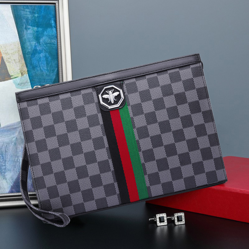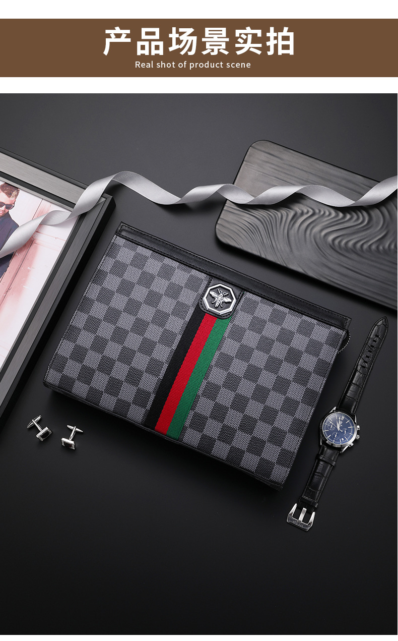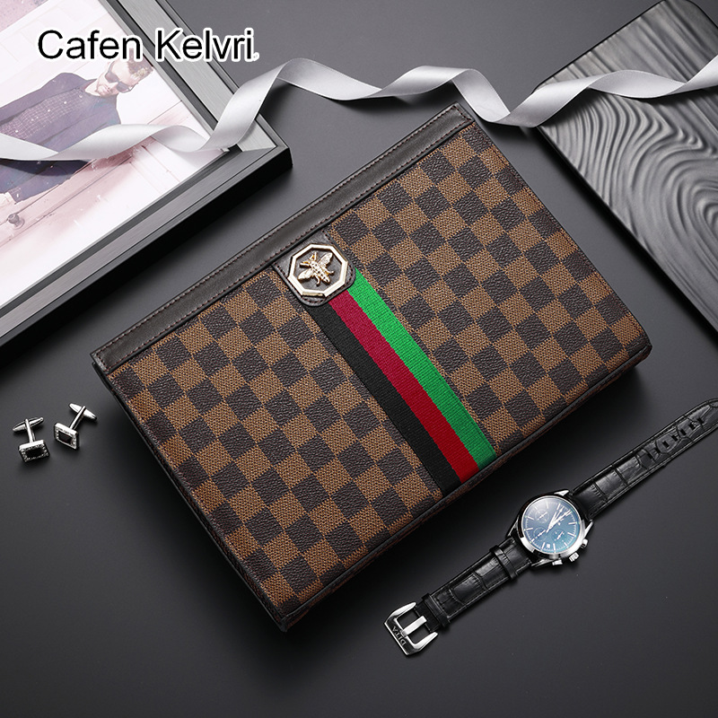 남성용 언더암 가방 사업 통근 발수 PVC 클램프 가방 트렌디 한 체크 긴 남성용 가방 가벼운 럭셔리 핸드백스토어 가기