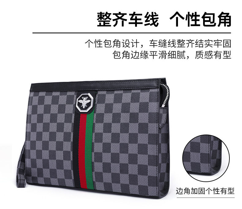 남성용 언더암 가방 사업 통근 발수 PVC 클램프 가방 트렌디 한 체크 긴 남성용 가방 가벼운 럭셔리 핸드백