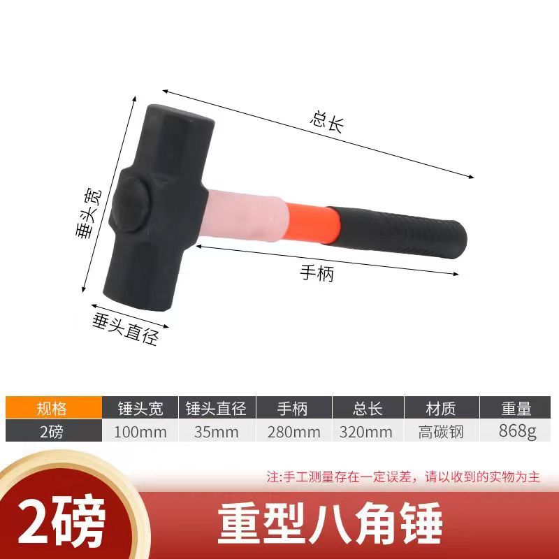 팔각형 해머 스퀘어 탑 해머 45 탄소강 라운드 스틸 팔각형 해머 플라스틱 핸들 결합 충격 방지 무거운 해머스토어 가기