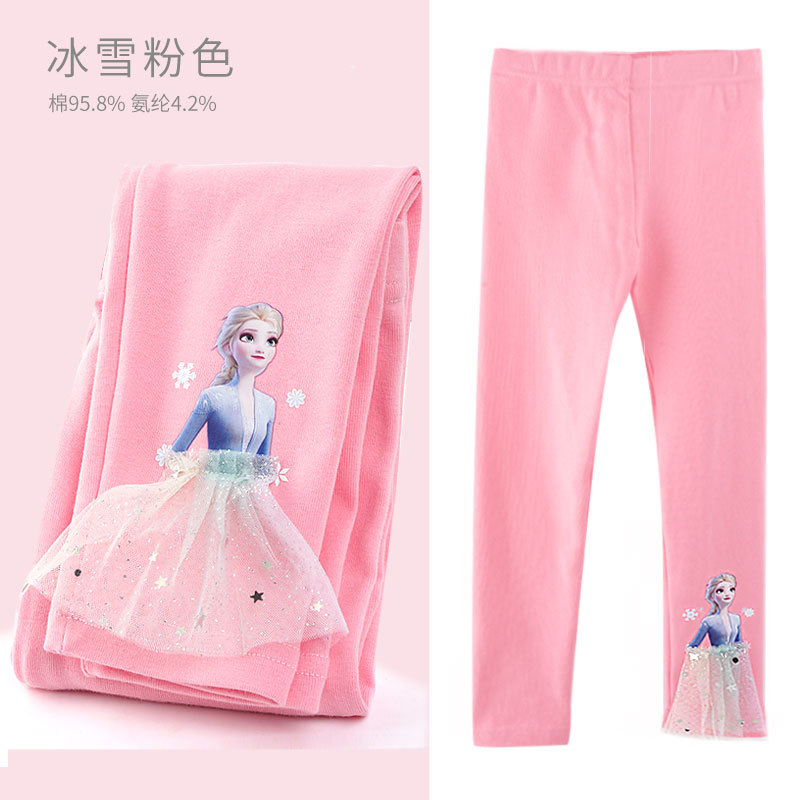 디즈니 소녀 레깅스 가을과 겨울 어린이 바지 코튼 걸스 아이스 프린세스 캐주얼 바지 바지 겉옷