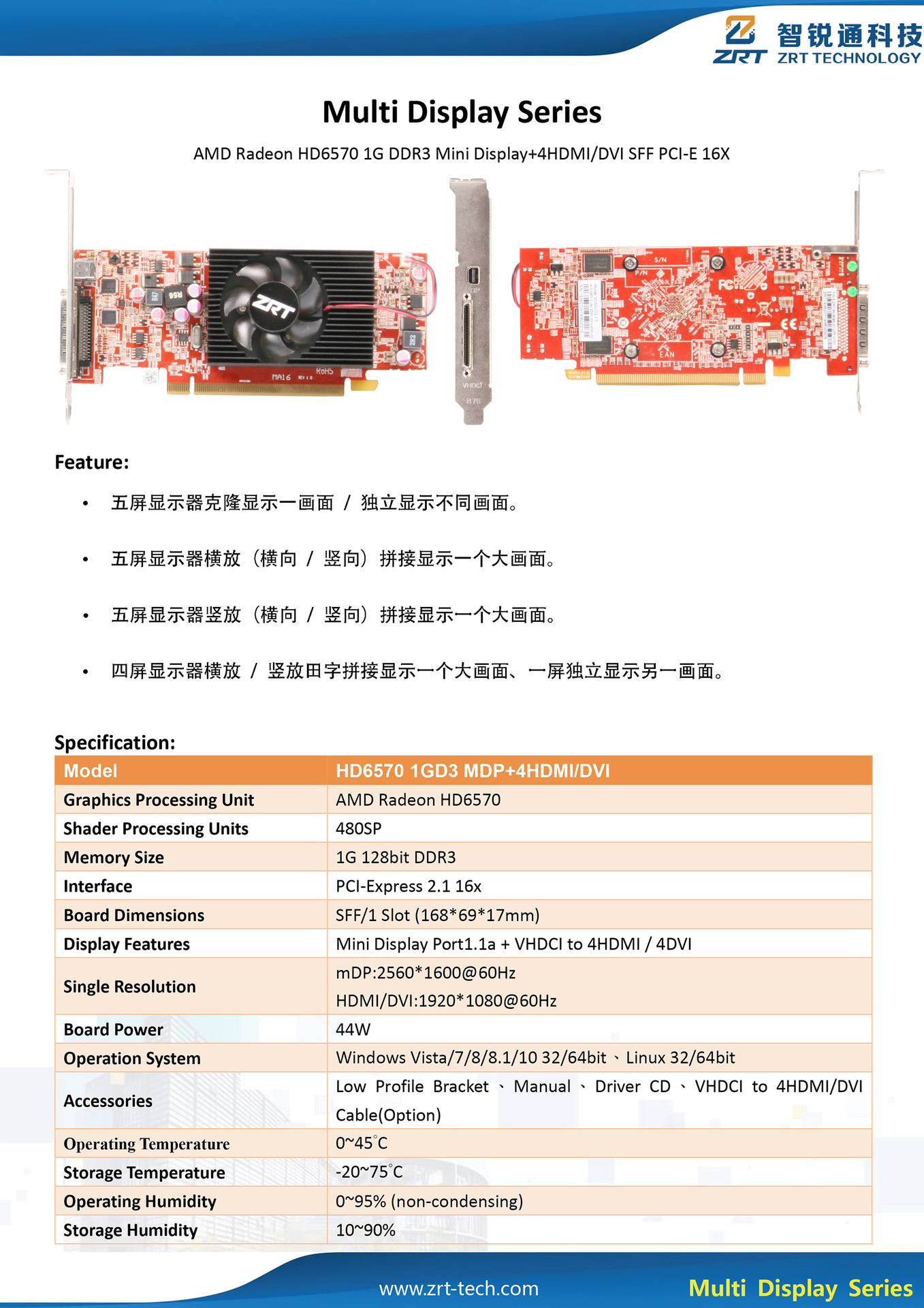 AMD 멀티 스크린 그래픽 카드 HD6570 1G 128bit SDDR3 VHDCI ~ 4HDMI + mDP SFF