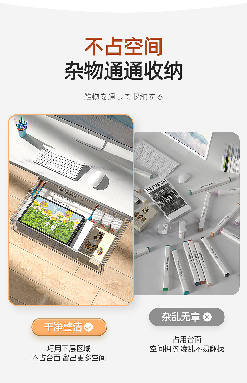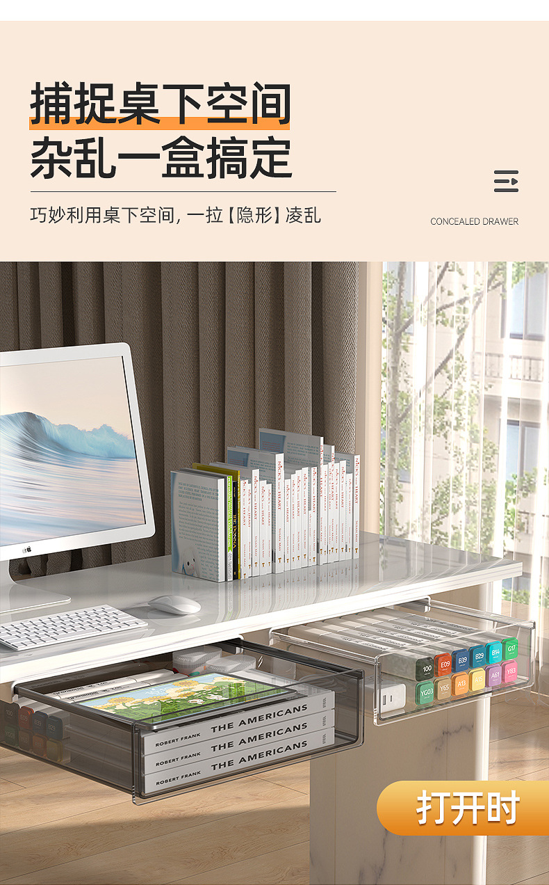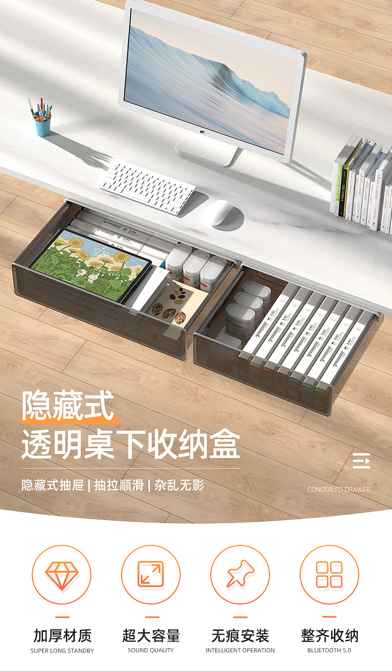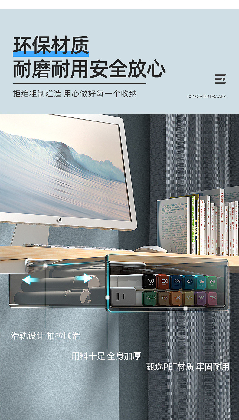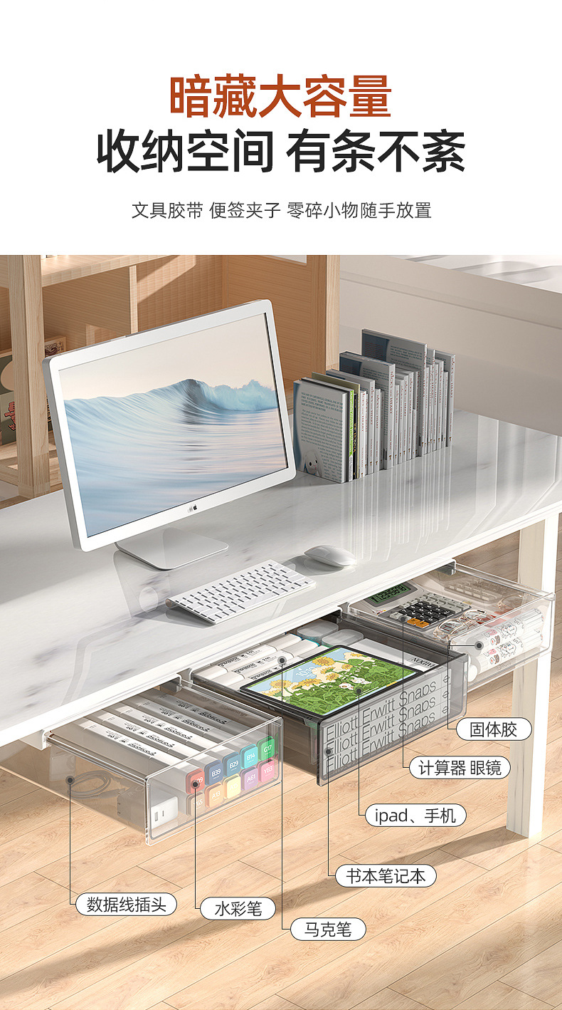 테이블 아래 서랍형 보관함 데스크탑 사무실 워크스테이션 책상 보이지 않는 숨겨진 책상 문구 보관 랙 유물스토어 가기