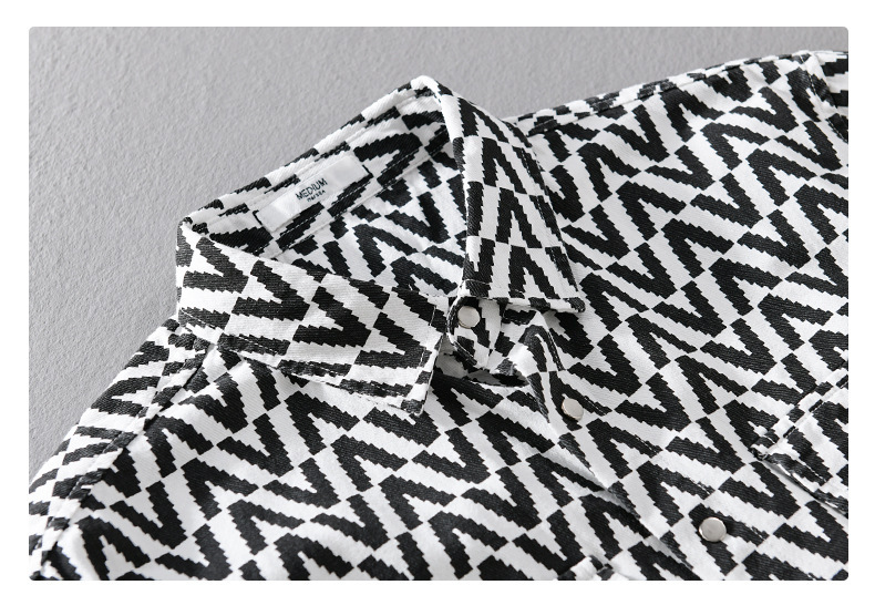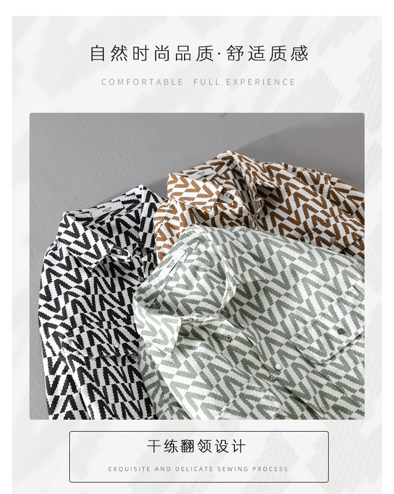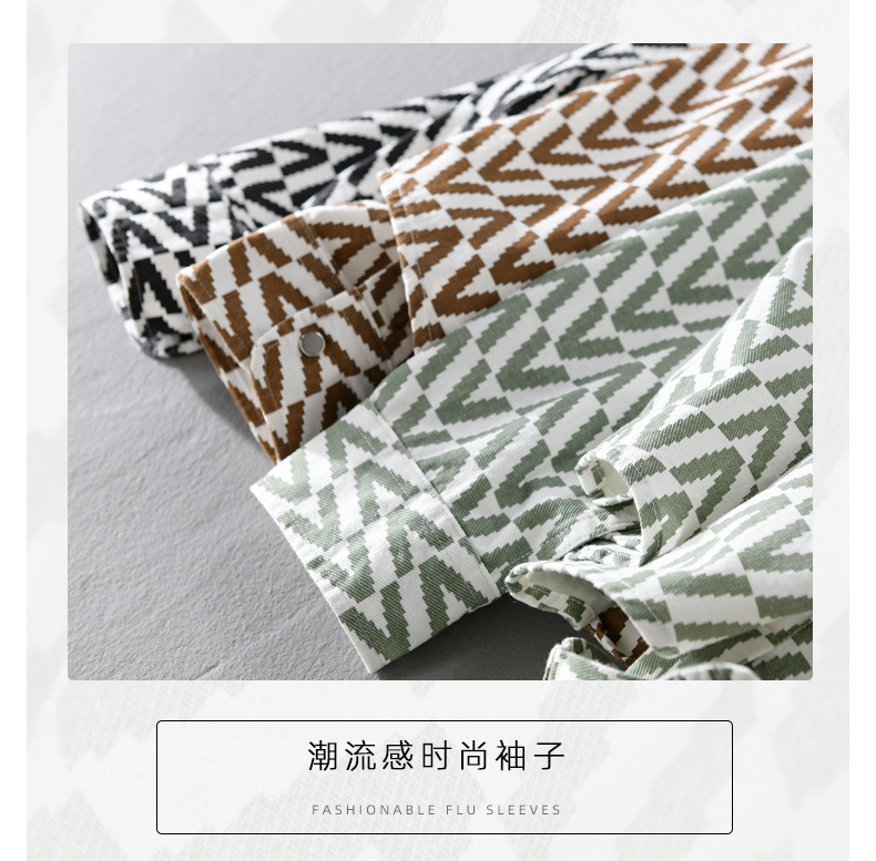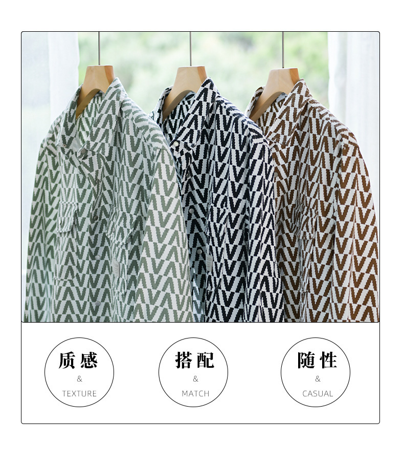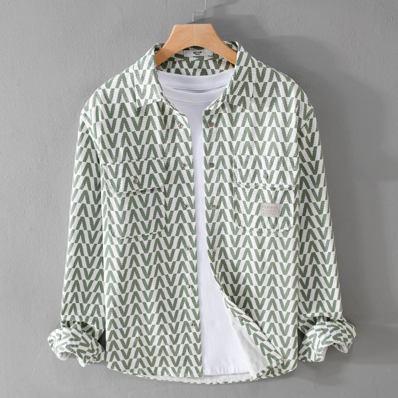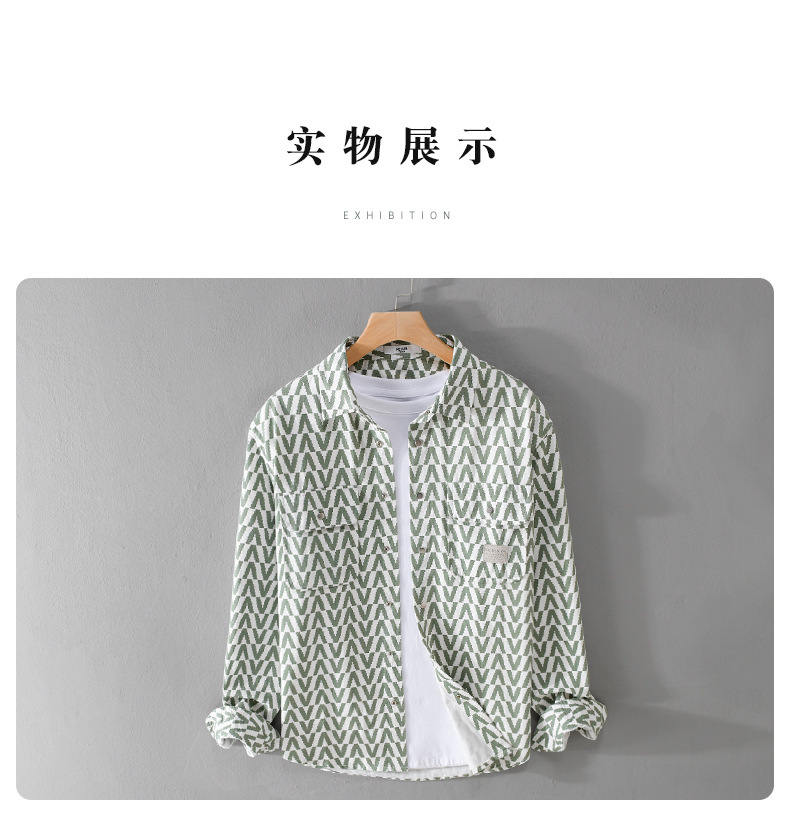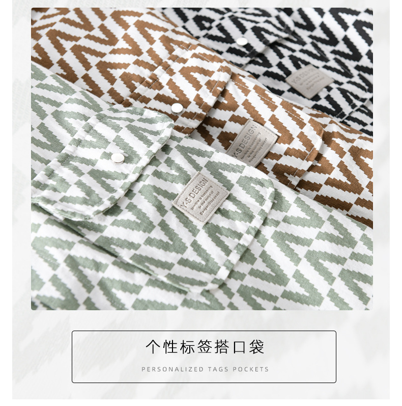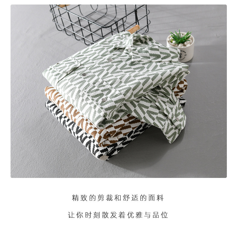 봄과 가을 남성 Houndstooth 긴팔 셔츠 유행 캐주얼 루즈한 라이트 럭셔리 청소년 남성 자켓 9789