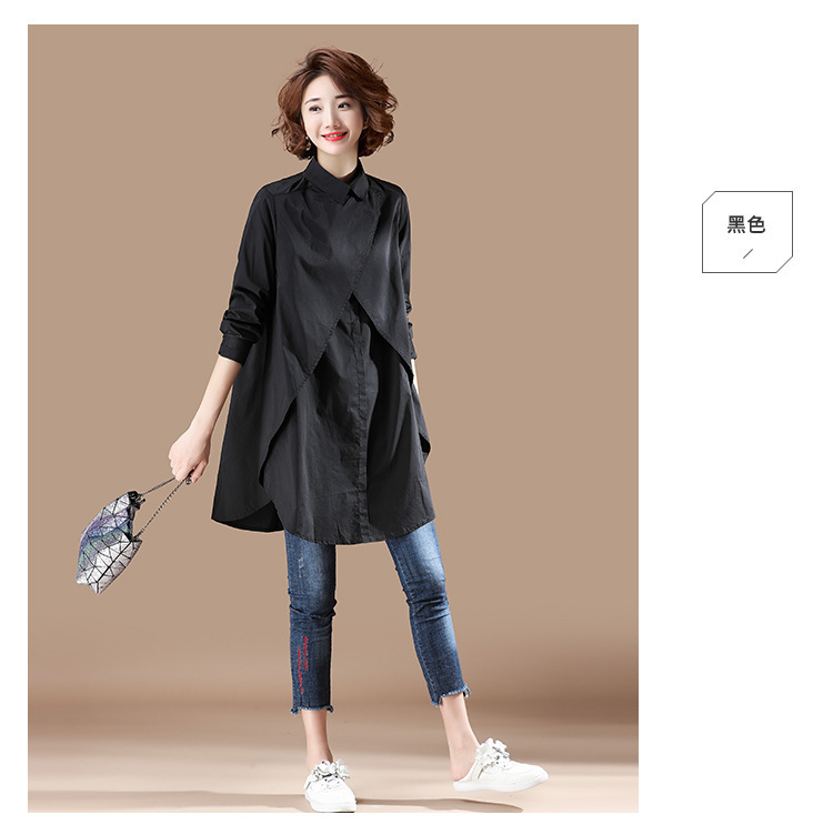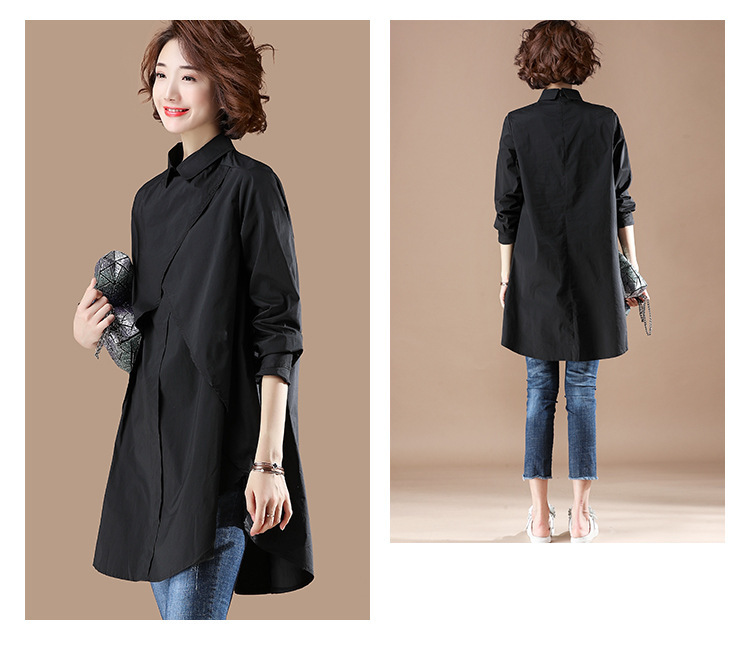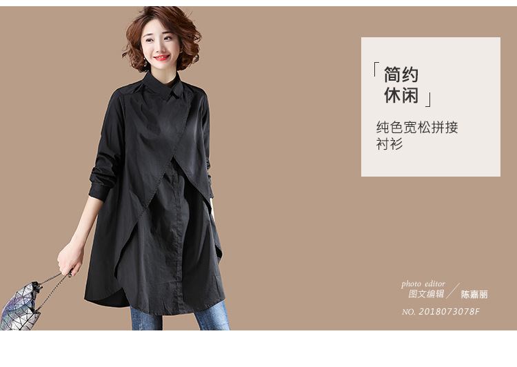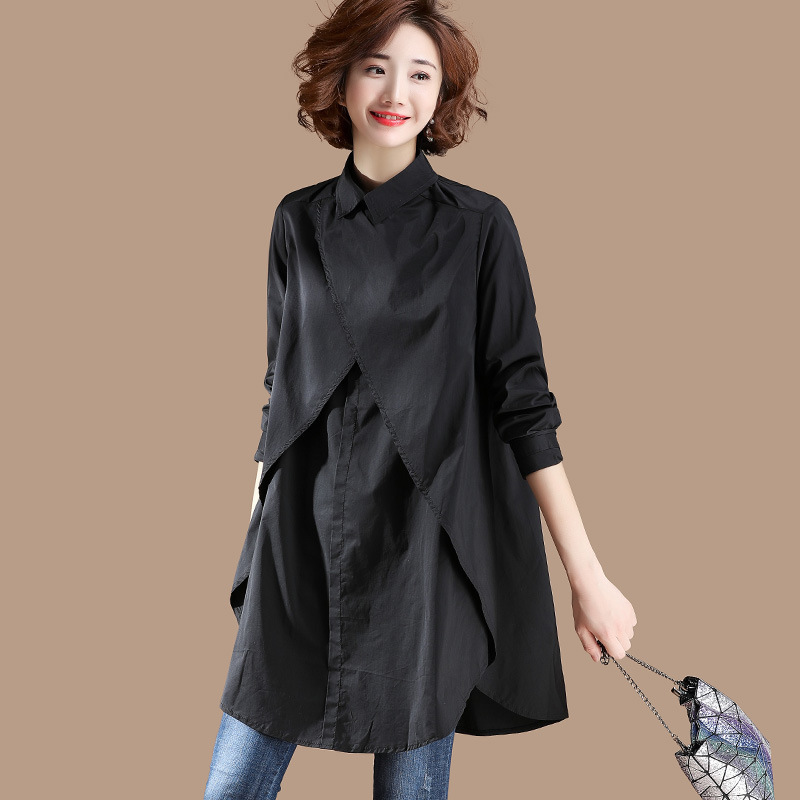 빅사이즈 블랙 초봄 셔츠 여성복 2025 신상 긴팔 중간 길이 홍콩 스타일 빅사이즈 루즈핏 상의