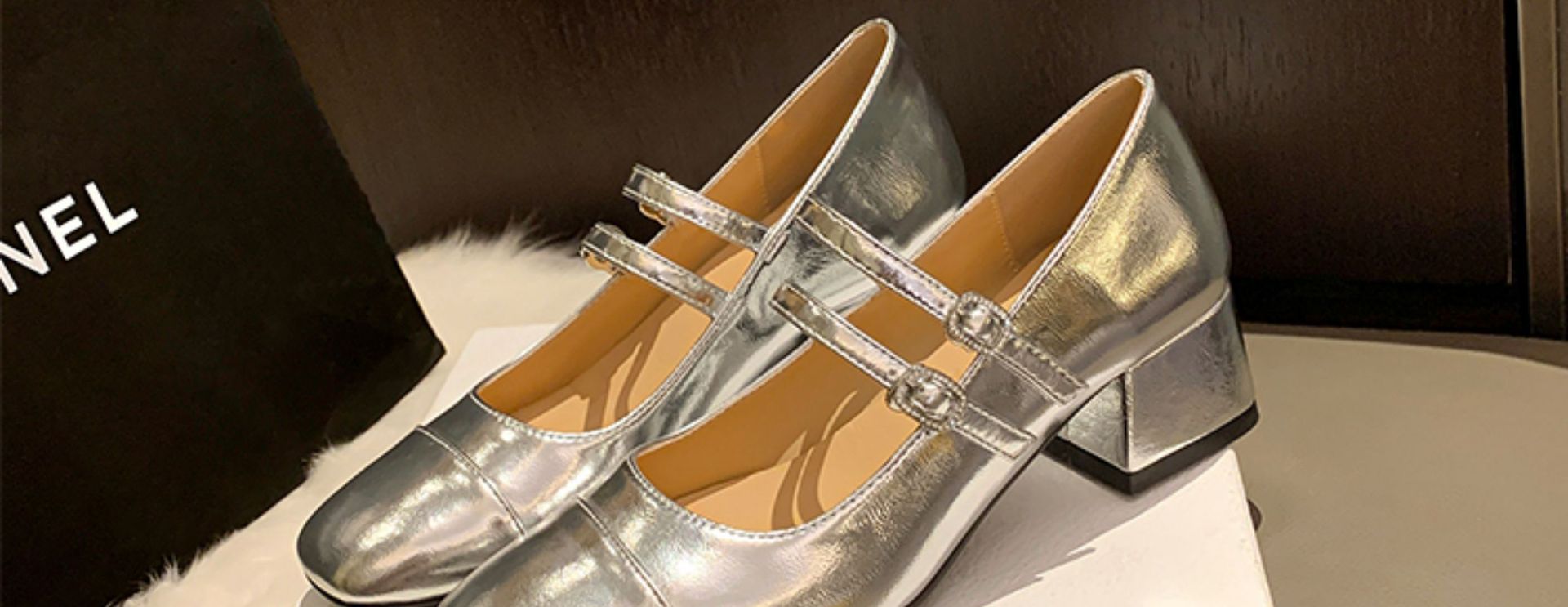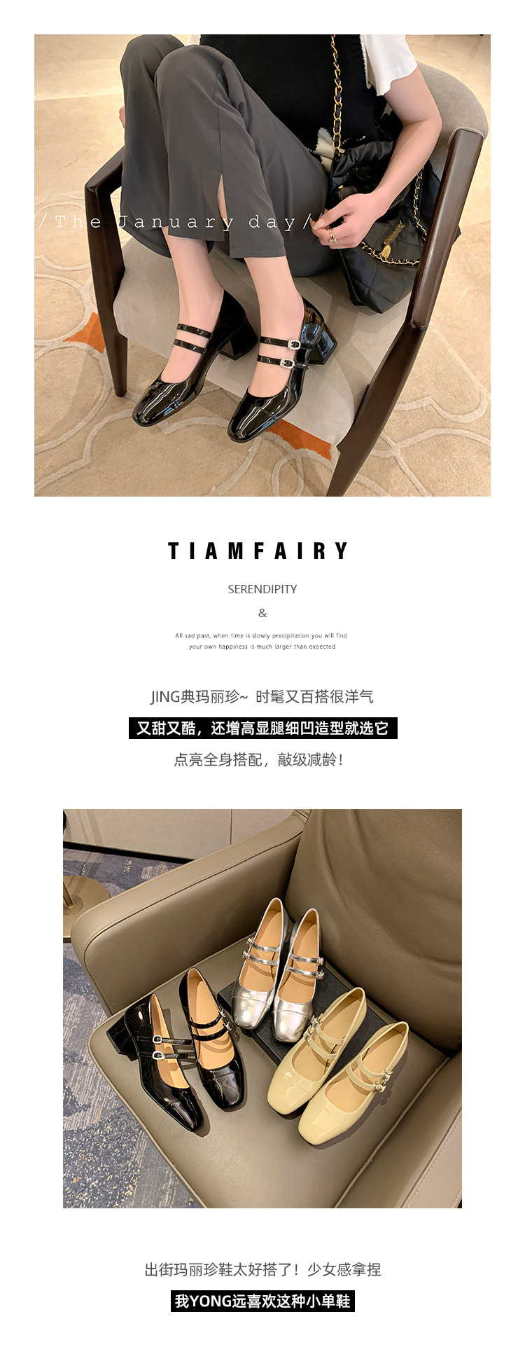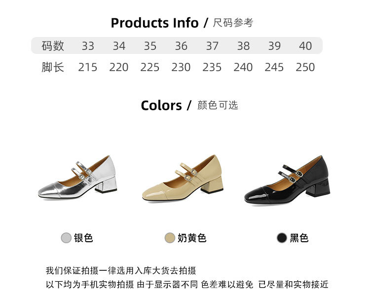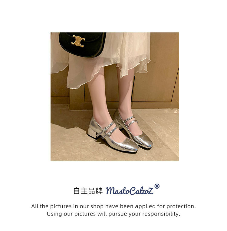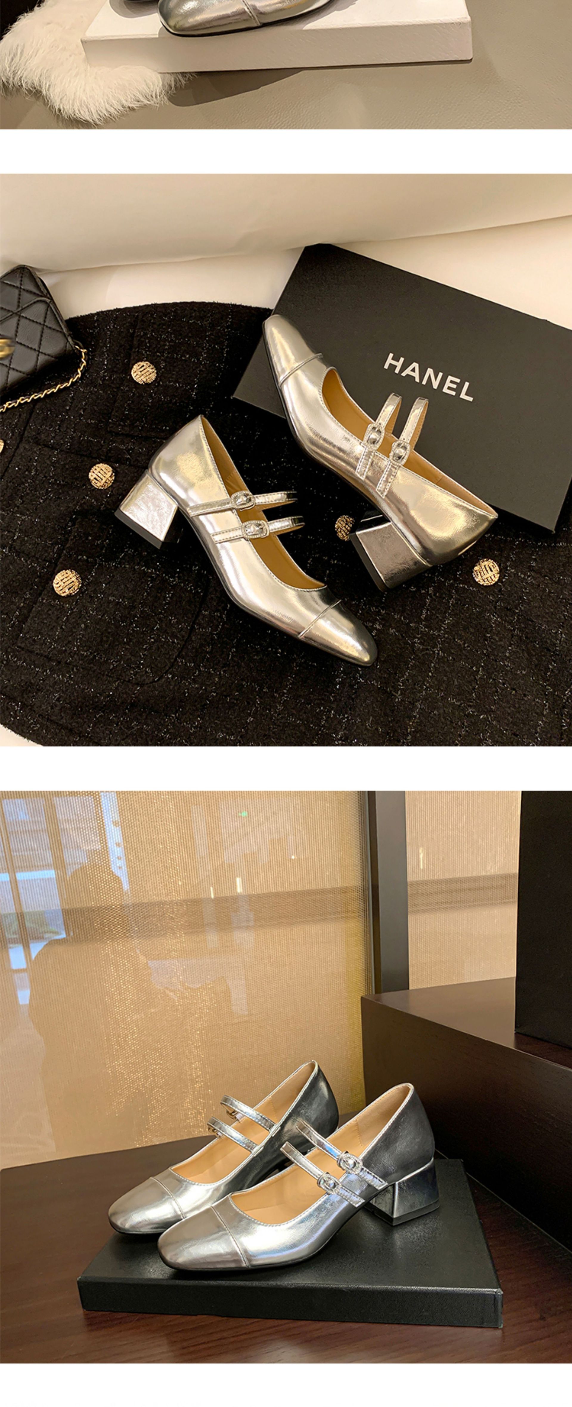 여성을위한 실버 두꺼운 굽 메리 제인 신발 2025 새로운 프랑스 복고풍 얕은 중간 굽 정품 가죽 작은 신발 작은 향기 스타일스토어 가기