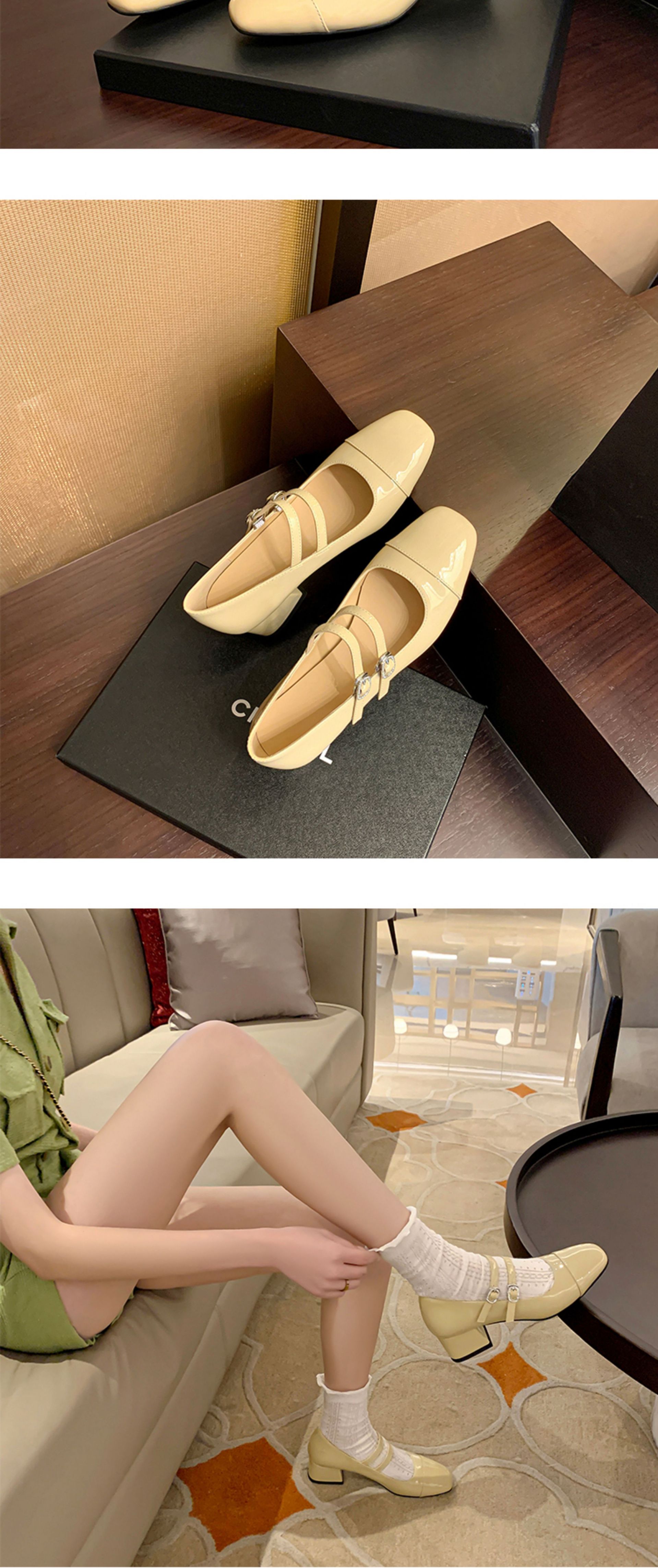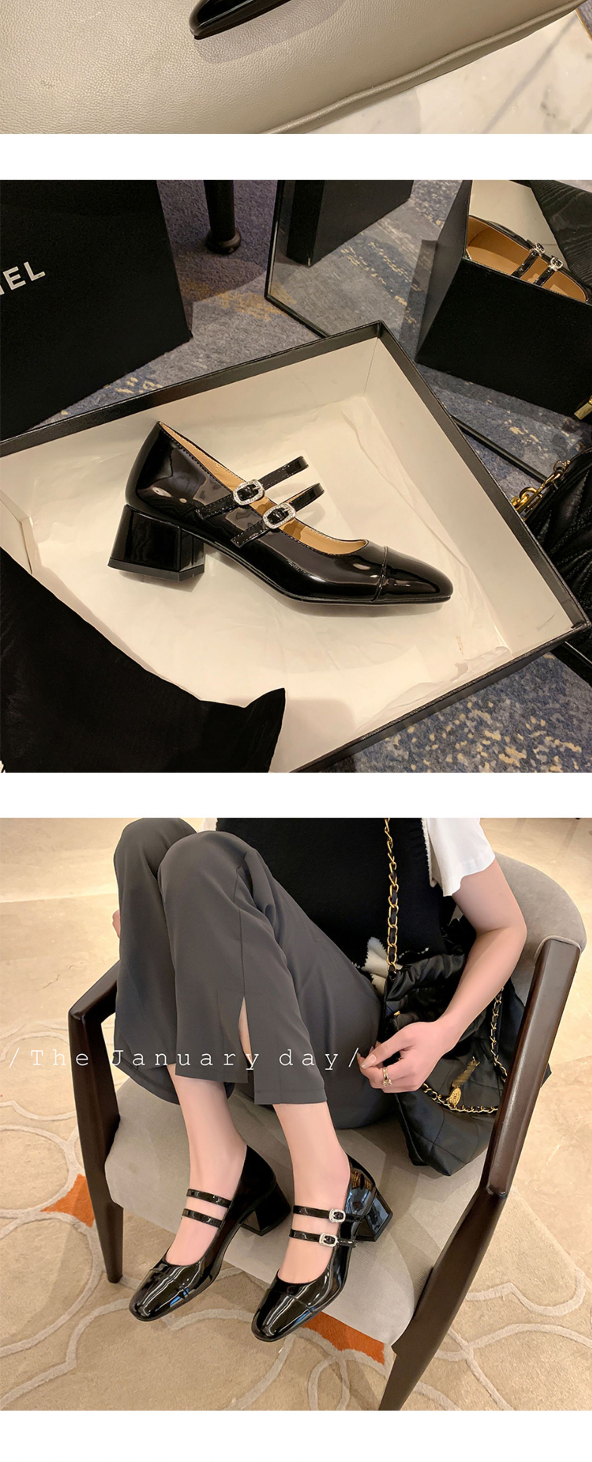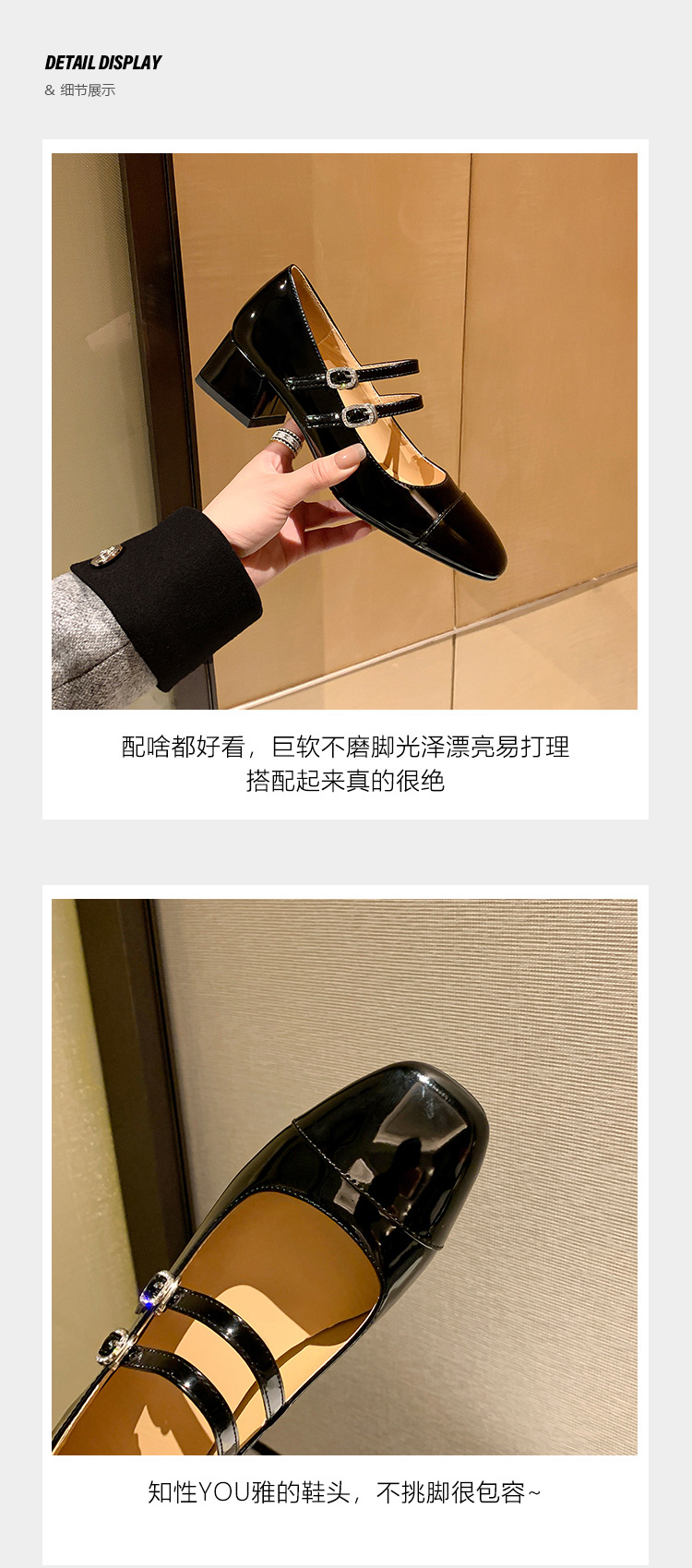 여성을위한 실버 두꺼운 굽 메리 제인 신발 2025 새로운 프랑스 복고풍 얕은 중간 굽 정품 가죽 작은 신발 작은 향기 스타일스토어 가기