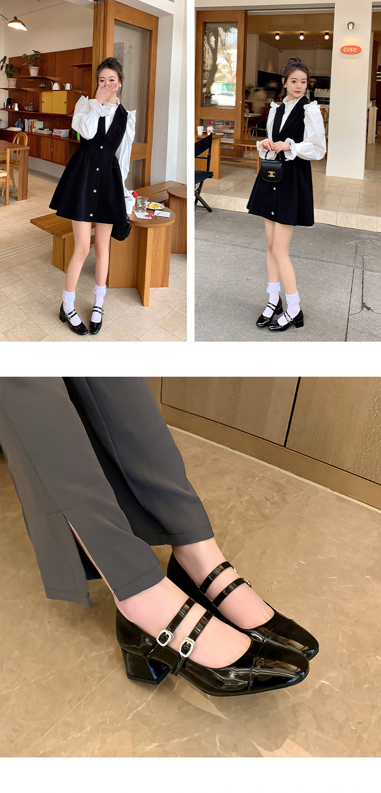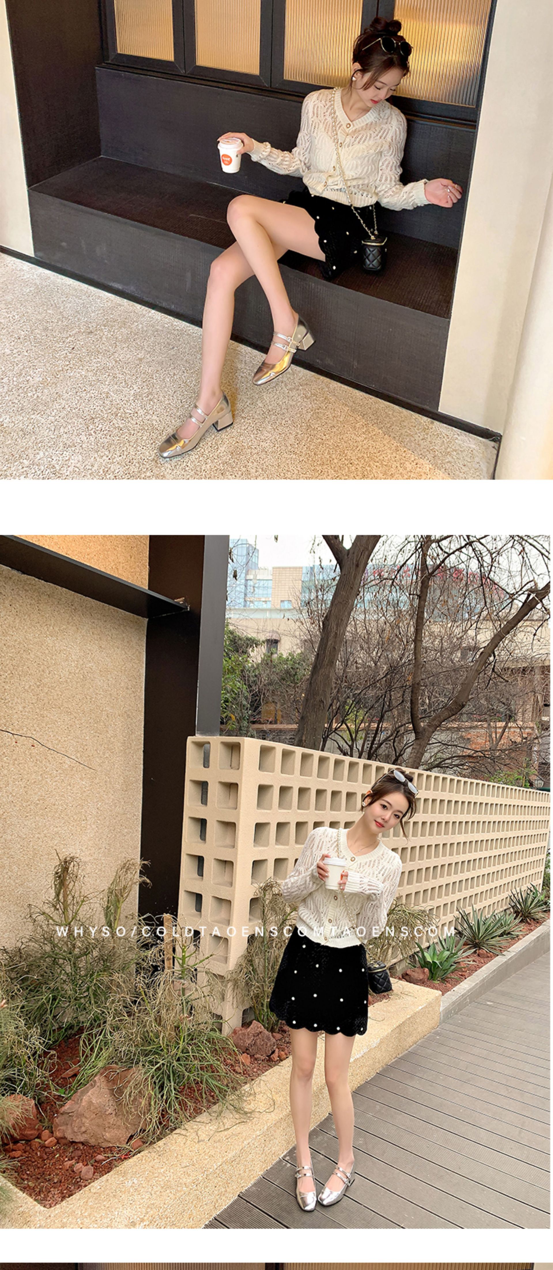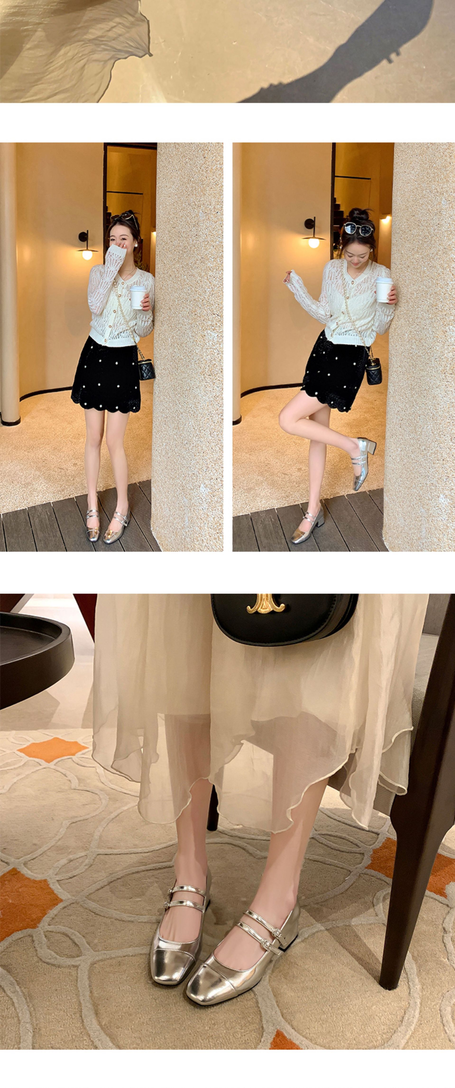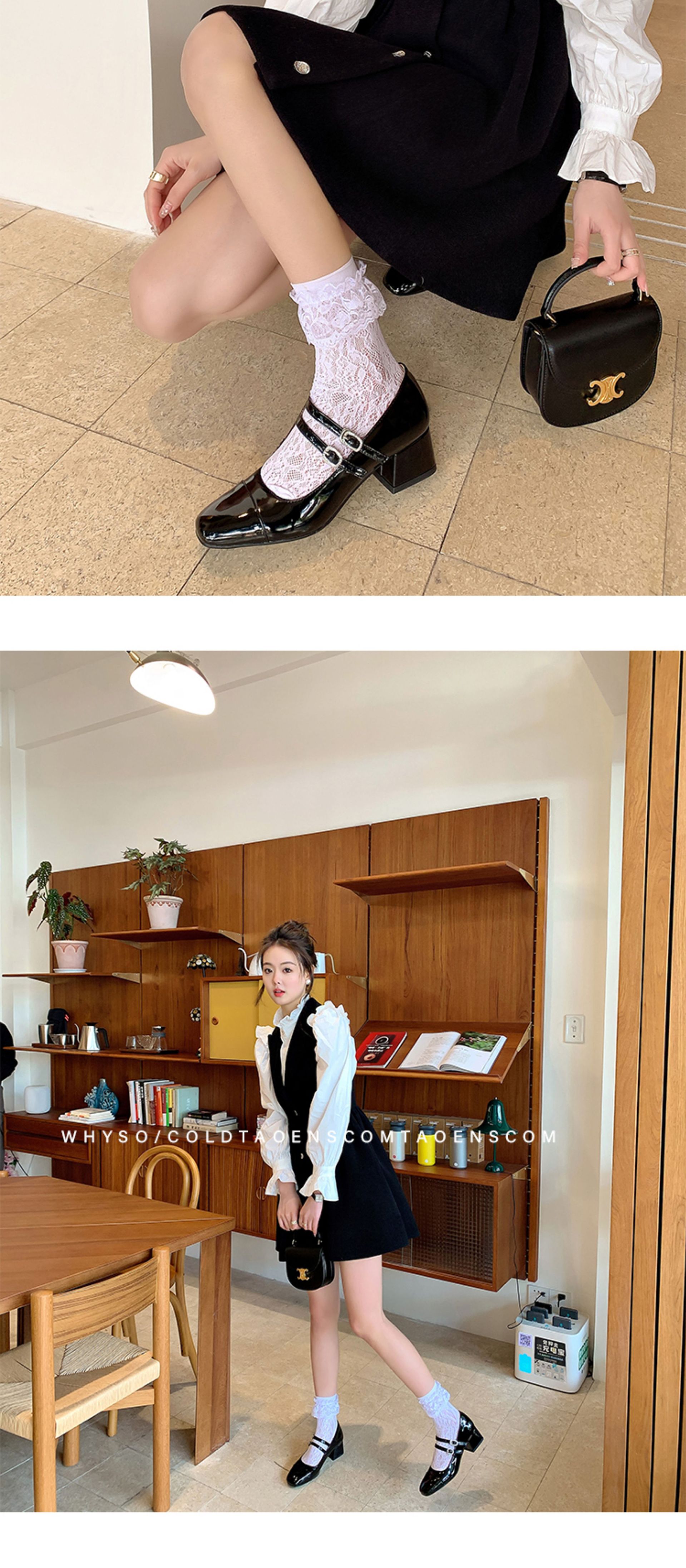 여성을위한 실버 두꺼운 굽 메리 제인 신발 2025 새로운 프랑스 복고풍 얕은 중간 굽 정품 가죽 작은 신발 작은 향기 스타일스토어 가기