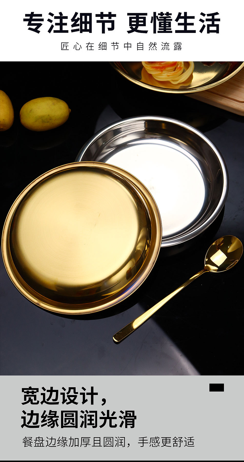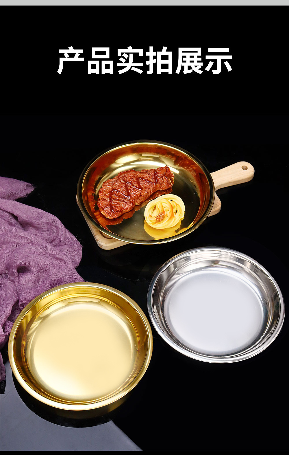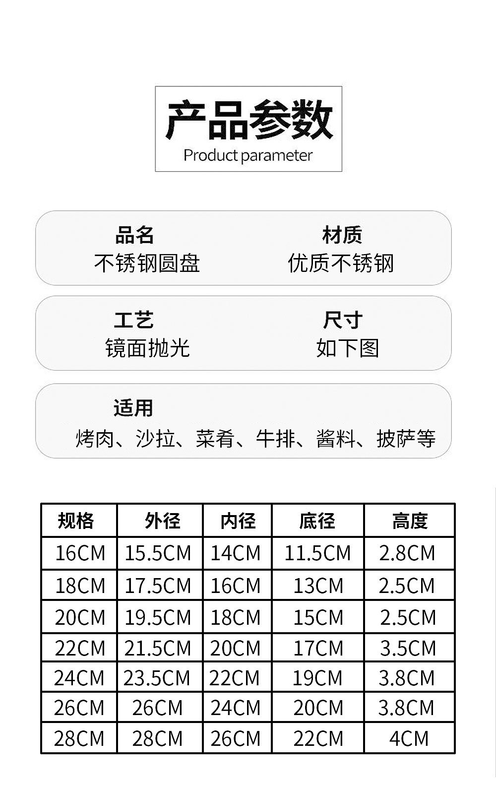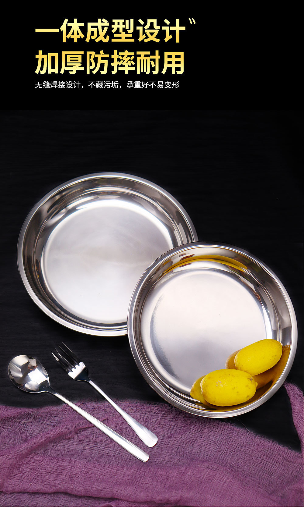 스테인레스 스틸 평평한 바닥 디스크 상업용 얕은 접시 접시 밥 접시 접시 찜 케이크 접시 차가운 피부 공 과일 접시