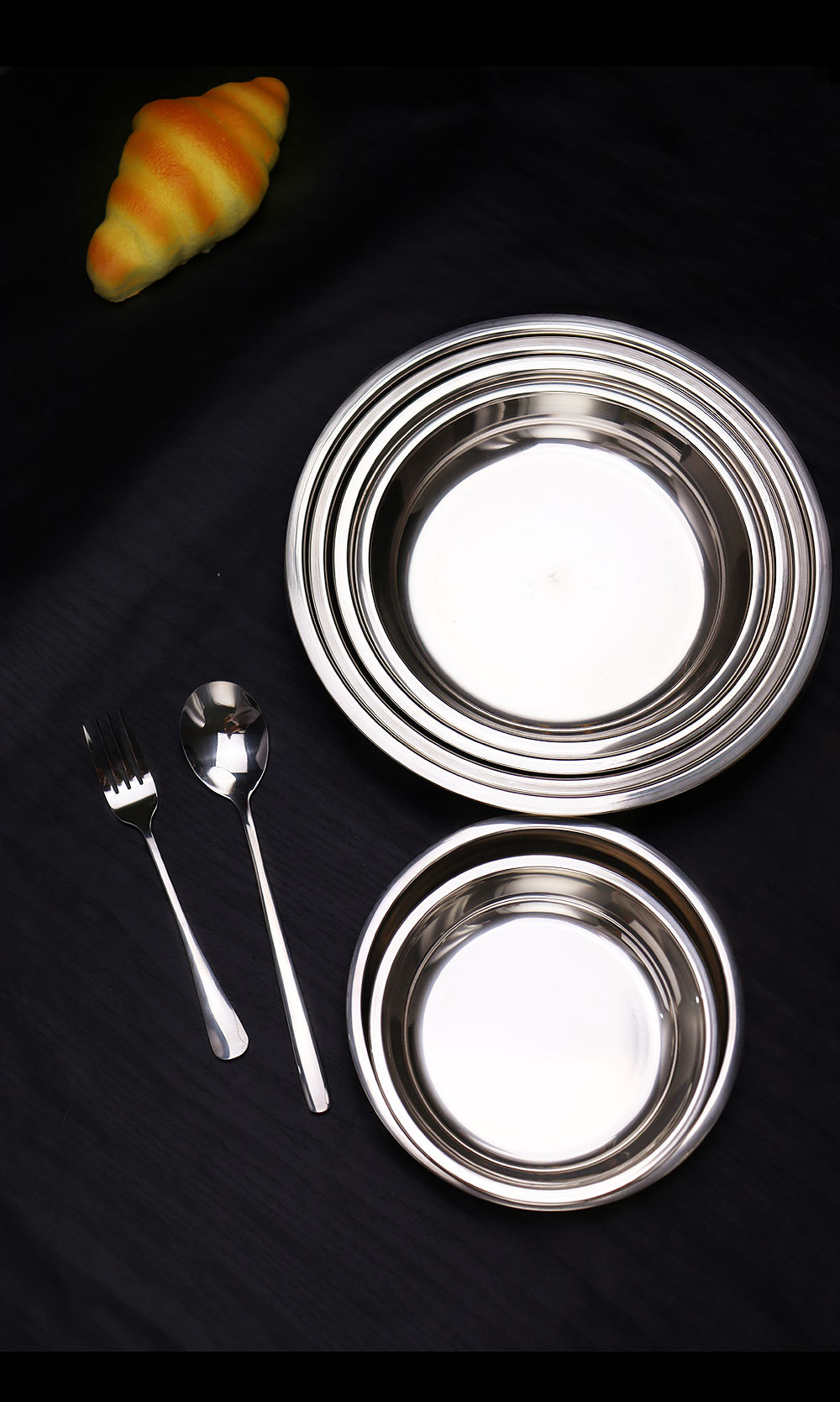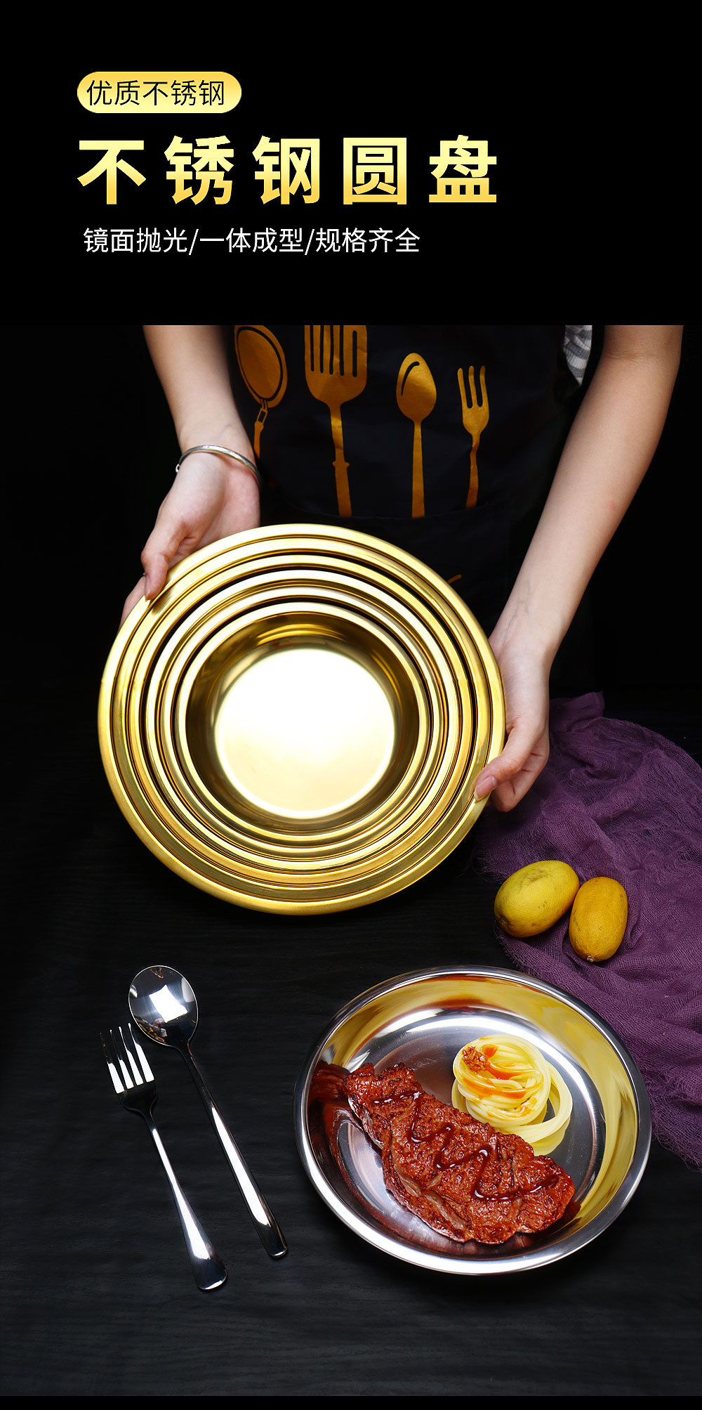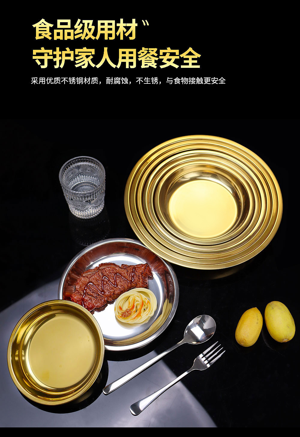 스테인레스 스틸 평평한 바닥 디스크 상업용 얕은 접시 접시 밥 접시 접시 찜 케이크 접시 차가운 피부 공 과일 접시