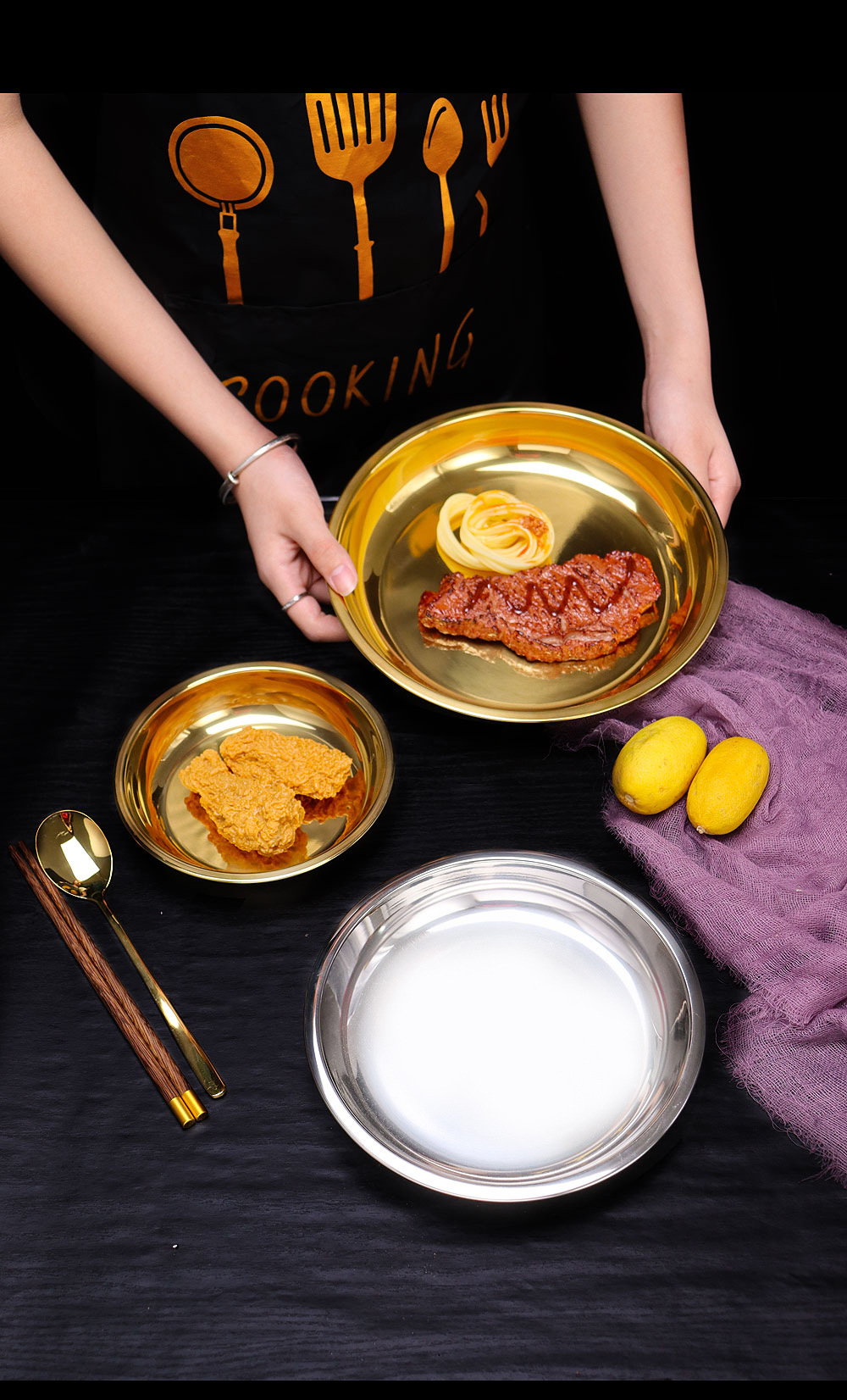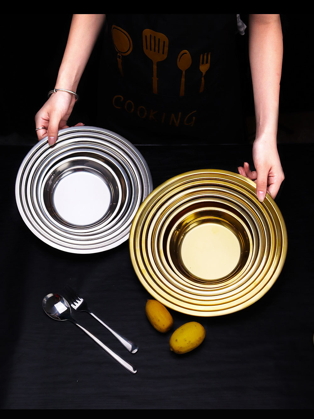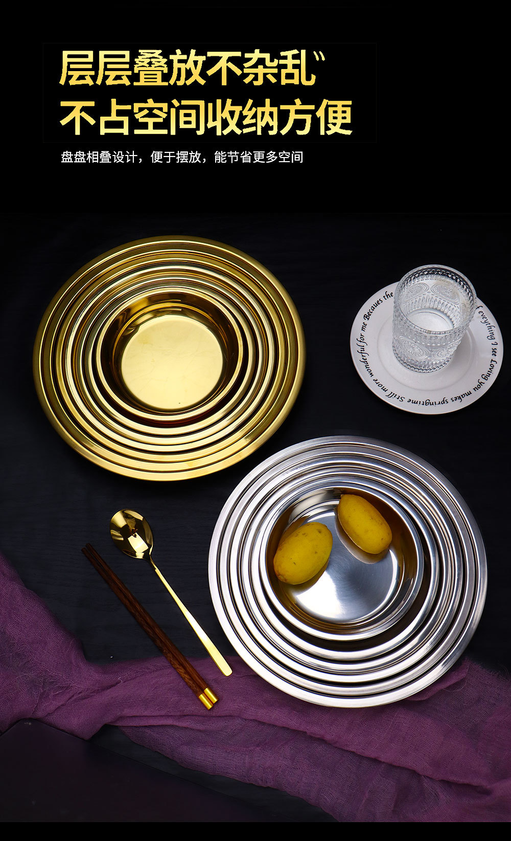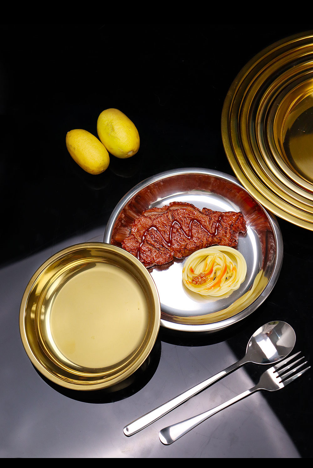 스테인레스 스틸 평평한 바닥 디스크 상업용 얕은 접시 접시 밥 접시 접시 찜 케이크 접시 차가운 피부 공 과일 접시