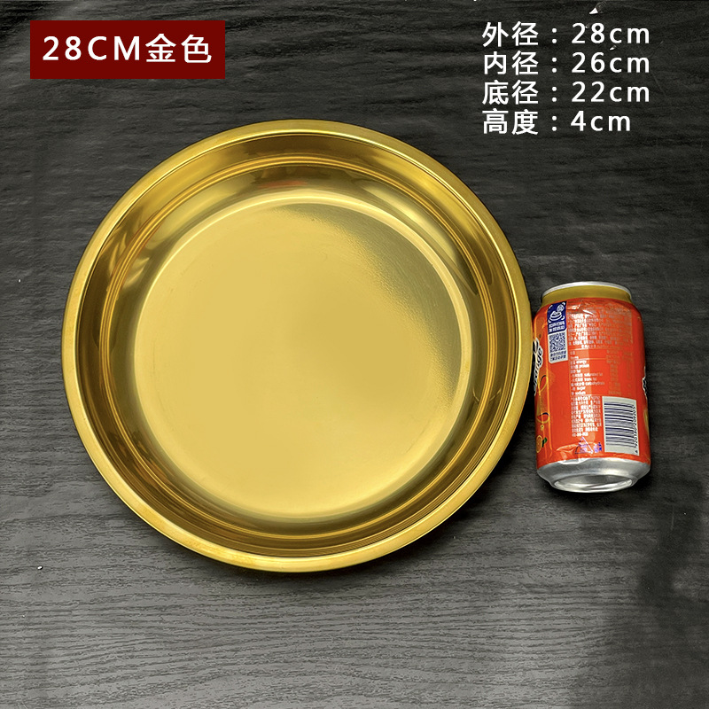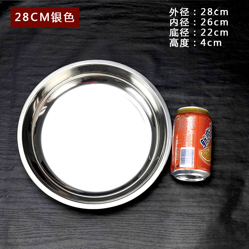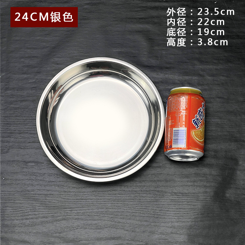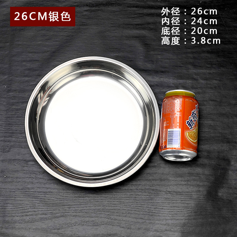 스테인레스 스틸 평평한 바닥 디스크 상업용 얕은 접시 접시 밥 접시 접시 찜 케이크 접시 차가운 피부 공 과일 접시스토어 가기