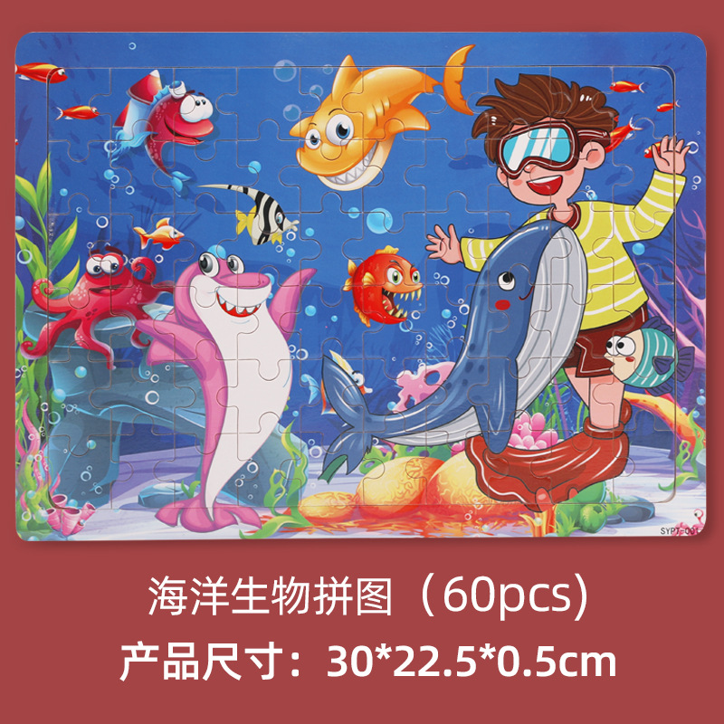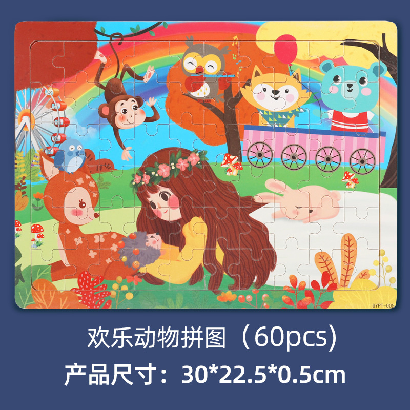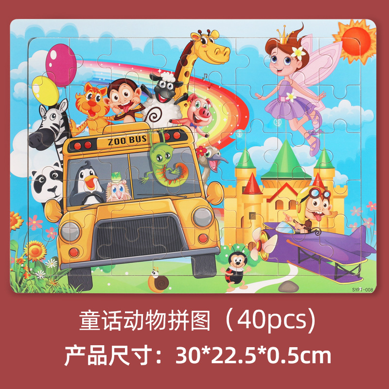 크로스 보더 어린이 나무 40 장 60 장 나무 퍼즐 동물 공룡 크리스마스 소방차 노점 뜨거운 판매 장난감스토어 가기
