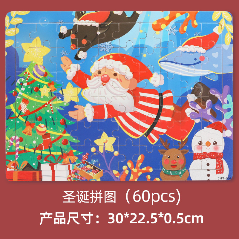 크로스 보더 어린이 나무 40 장 60 장 나무 퍼즐 동물 공룡 크리스마스 소방차 노점 뜨거운 판매 장난감