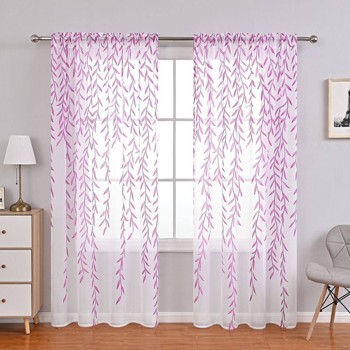 크로스 보더 독점 폭발 현대 간단한 오프셋 인쇄 고리 버들 잎 광 투과 커튼스토어 가기