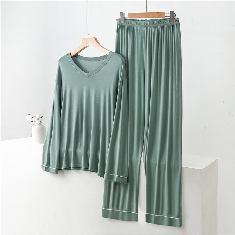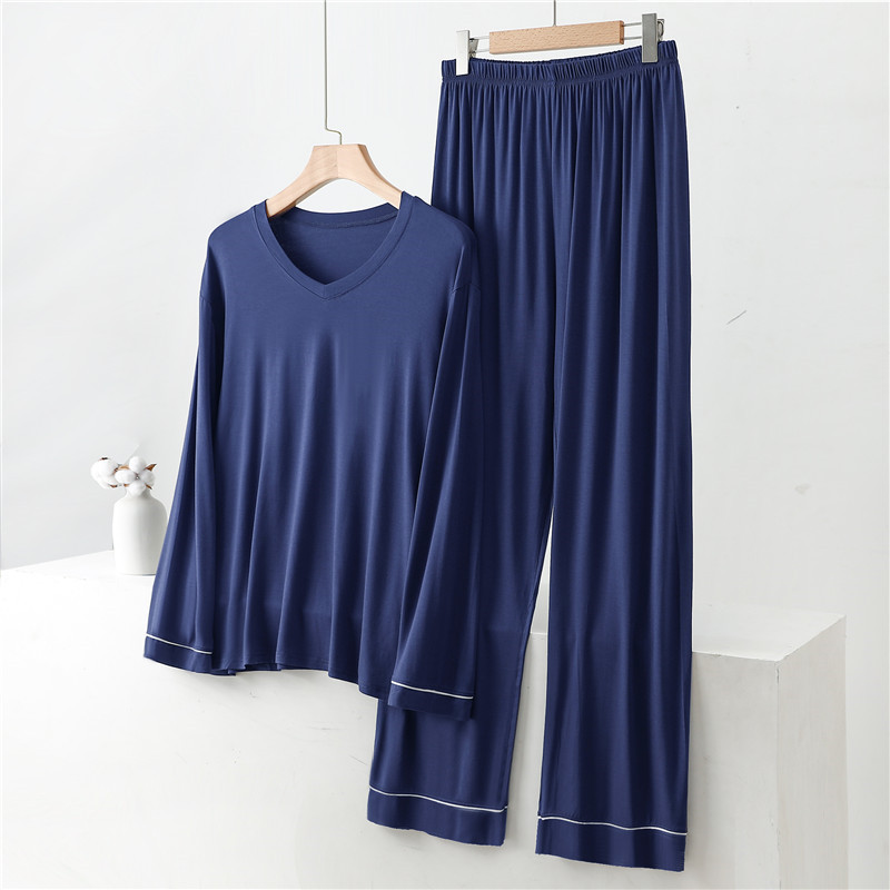 가을/겨울 모달 남성 홈웨어 세트 느슨한 긴 소매 바지 잠옷 플러스 사이즈 200 진 투피스 세트